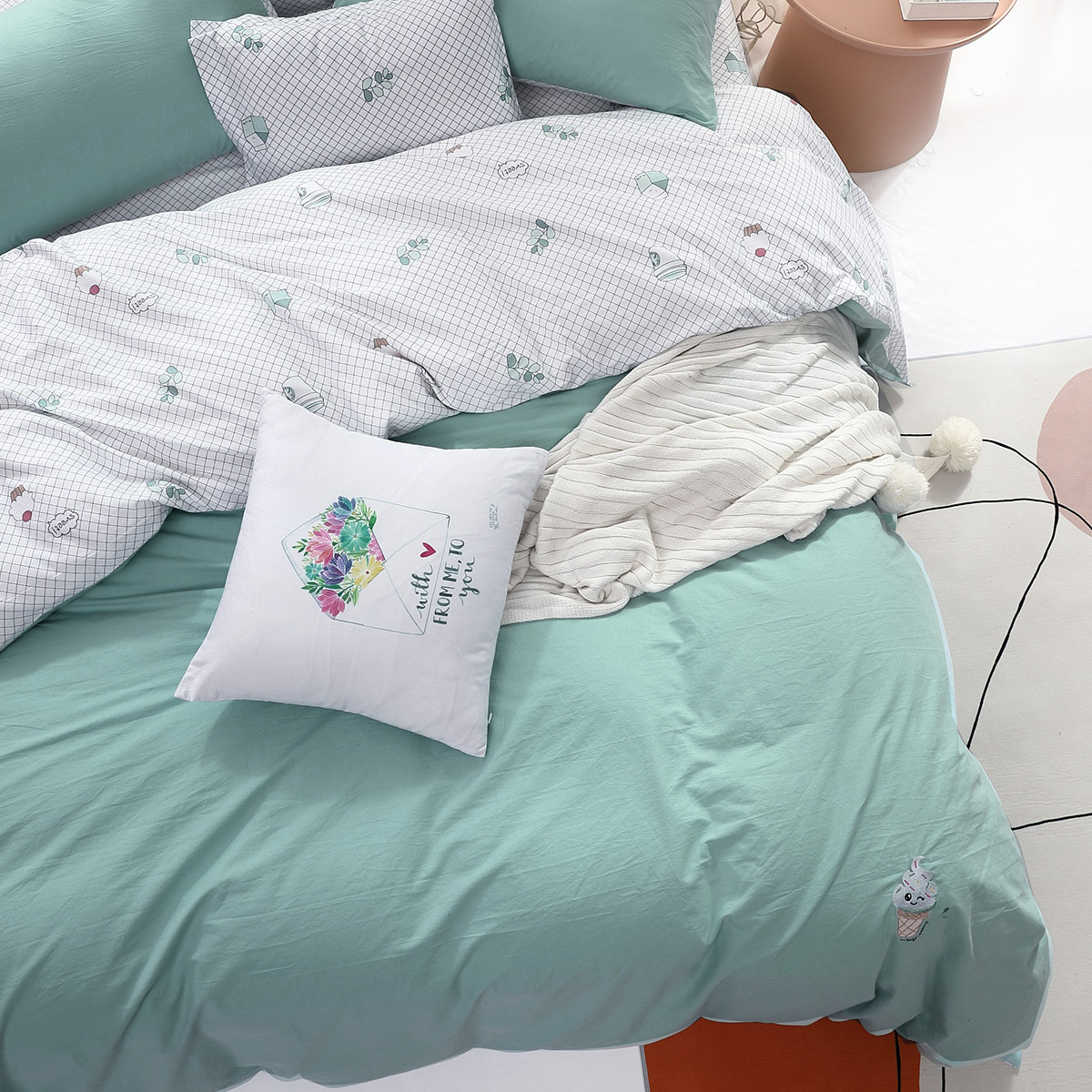 Три -набор: лист для кровати*1 стеганое одеяло*1 рукав с подушкой*1 Упаковка*1