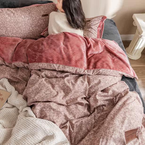 Зимний фланелевый комплект, удерживающий тепло коралловый пододеяльник, простыня, покрывало, 4 предмета, легкий роскошный стиль, увеличенная толщина