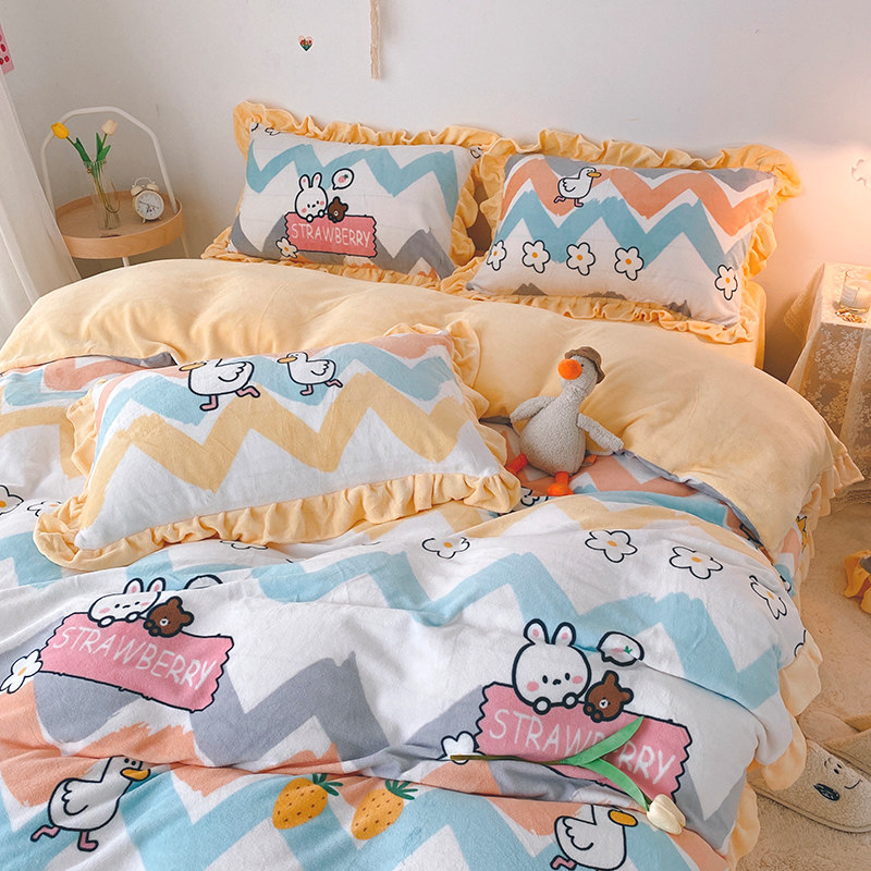 Свежий комплект, двусторонний зимний пододеяльник, коралловое покрывало, 4 предмета, увеличенная толщина