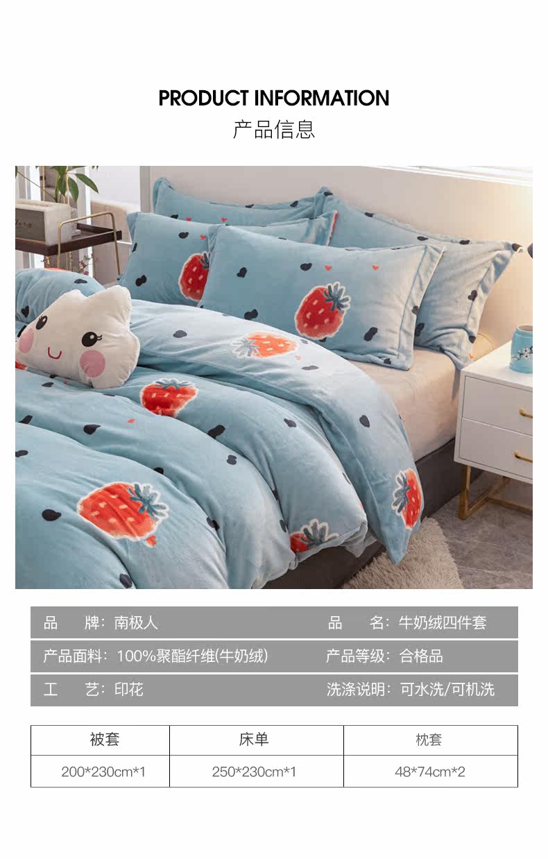 南极人 Двусторонний коралловый комплект, фланелевый пододеяльник, зимнее покрывало, 4 предмета, 3 предмета