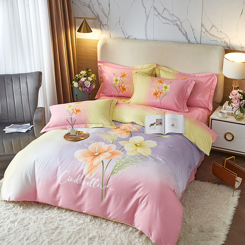 Хлопковый комплект, пододеяльник, простыня, демисезонное покрывало, увеличенная толщина, 4 предмета, простой и элегантный дизайн