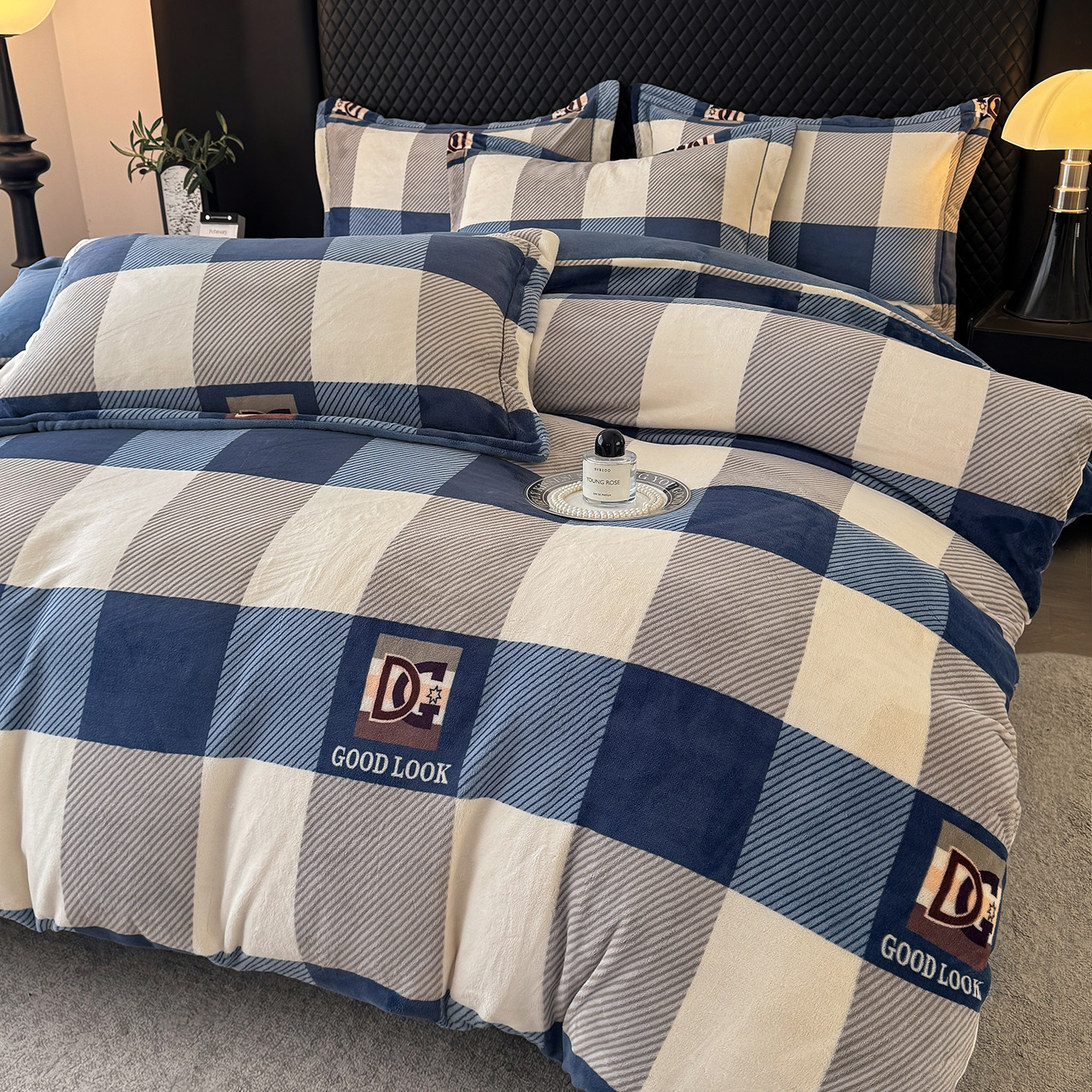 - Комплект из четырех предметов на 1,8-спальной кровати на простыне (пододеяльник 200*230)