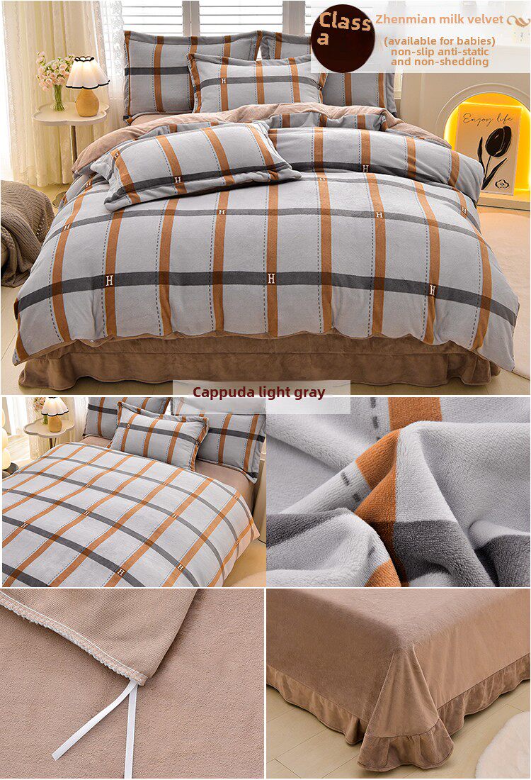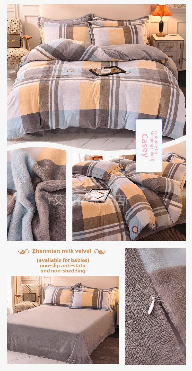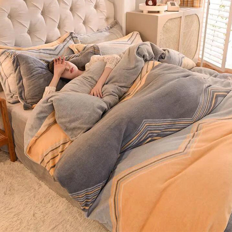 Двусторонний комплект, зимний фланелевый флисовый удерживающий тепло пододеяльник, коралловая простыня, 4 предмета