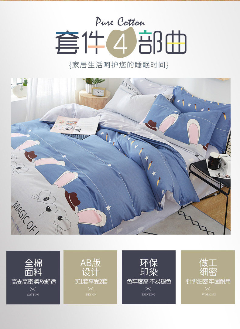 Хлопковый мультяшный летний комплект, хлопковая простыня для мальчиков, пододеяльник, 4 предмета, 4 шт