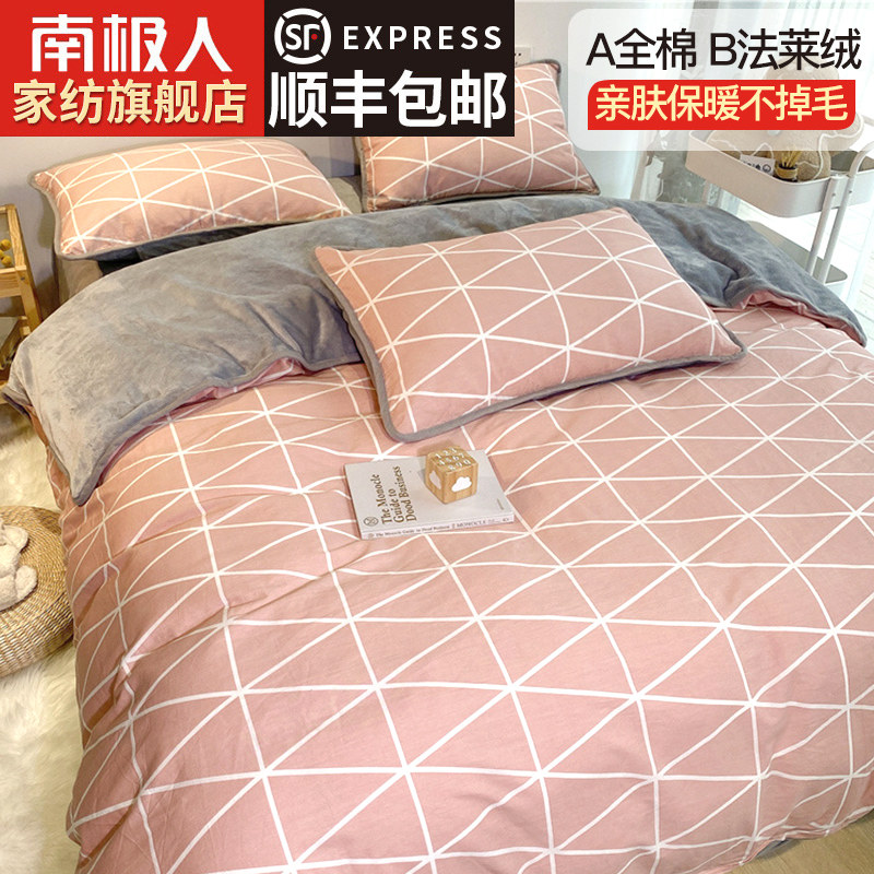 Хлопковый коралловый зимний комплект, фланелевая простыня, пододеяльник, покрывало, 4 предмета, 3 предмета