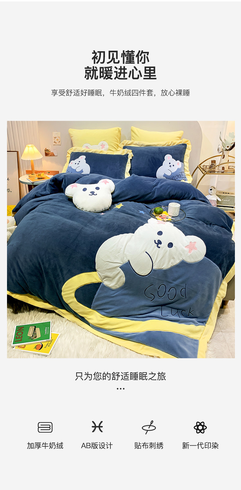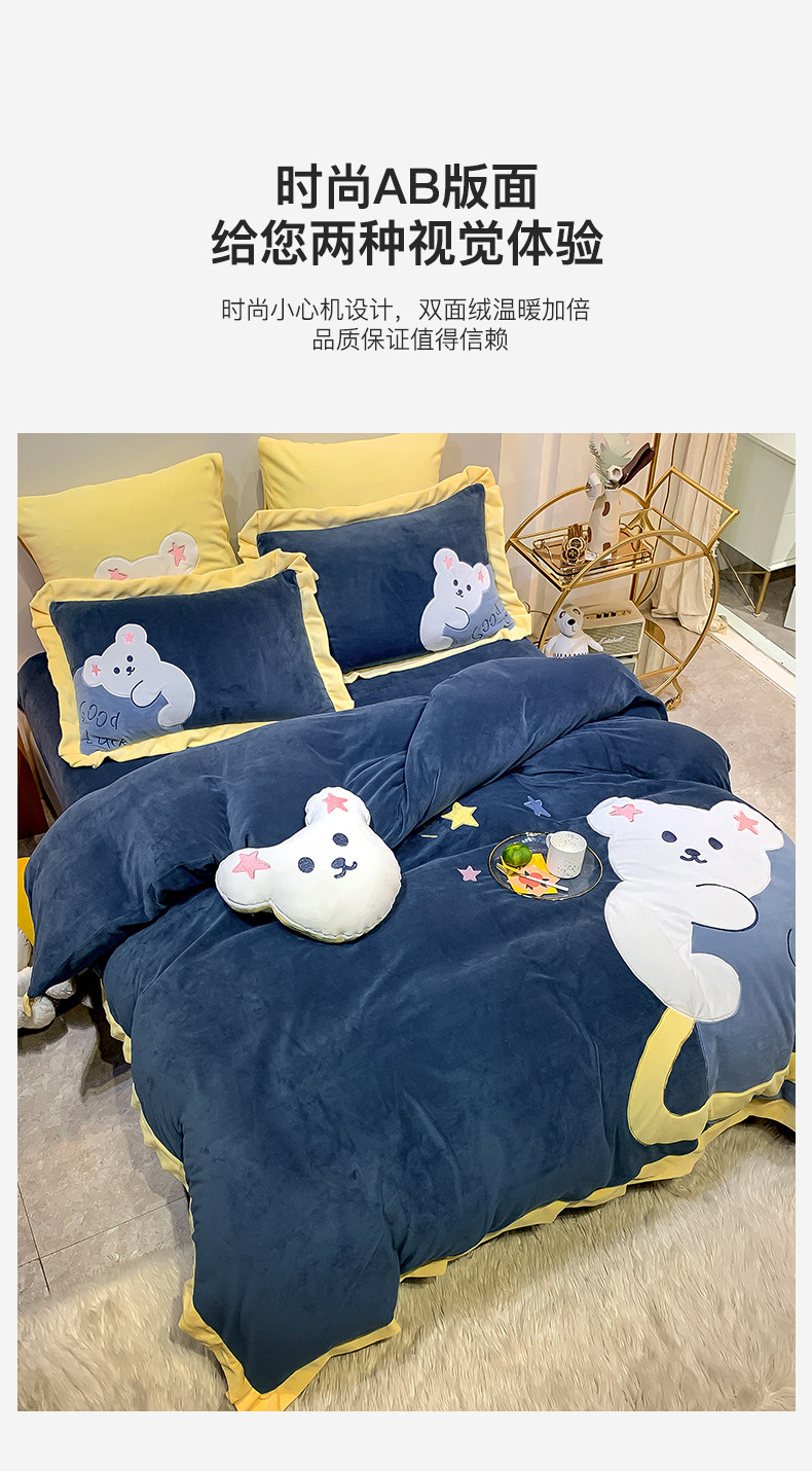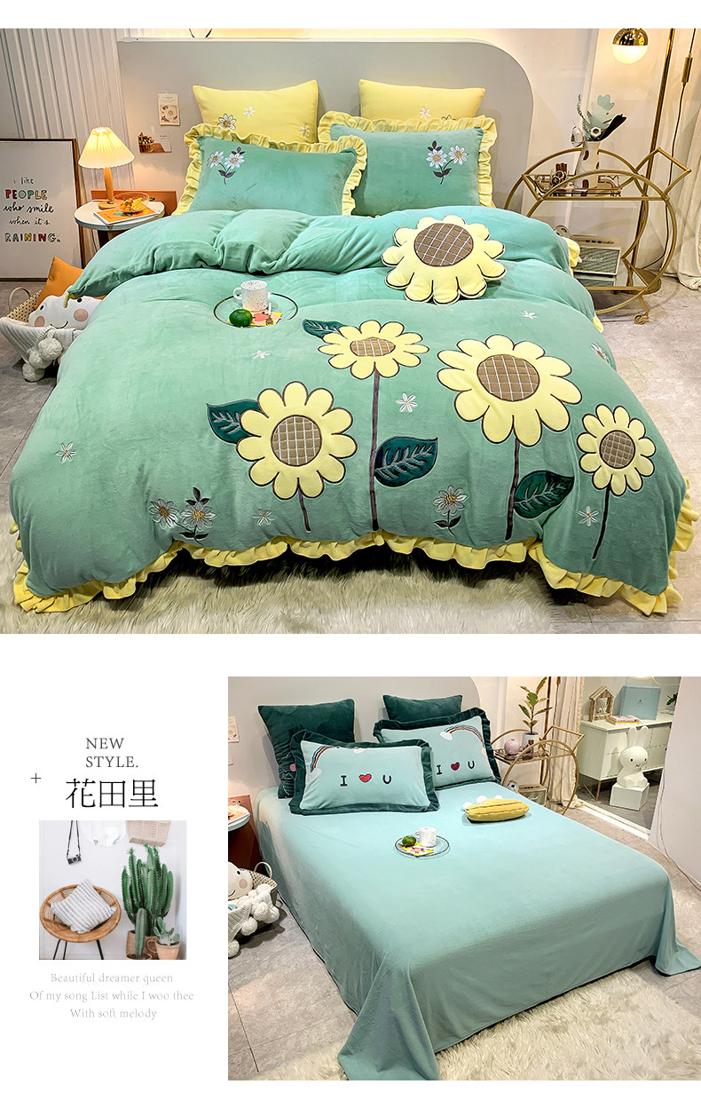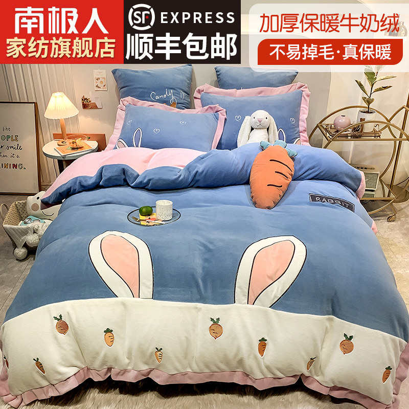 南极人 Коралловый комплект, пододеяльник, зимняя простыня, увеличенная толщина, 4 предмета, 3 предмета