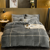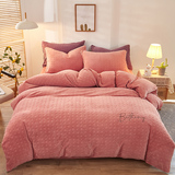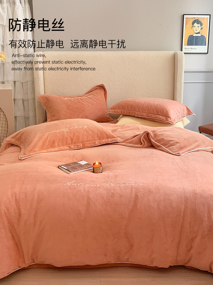 Фланелевый зимний двусторонний комплект, простыня, коралловый пододеяльник, с вышивкой, увеличенная толщина, 4 предмета