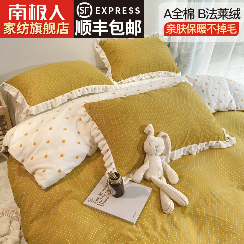 南极人 Хлопковый коралловый зимний комплект, фланелевая простыня, пододеяльник, покрывало, 4 предмета, 3 предмета
