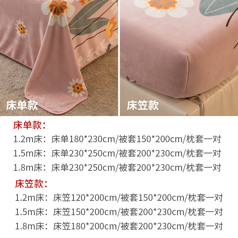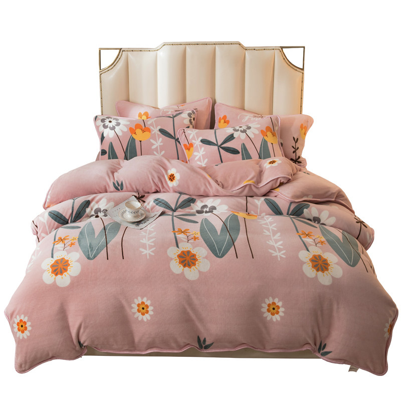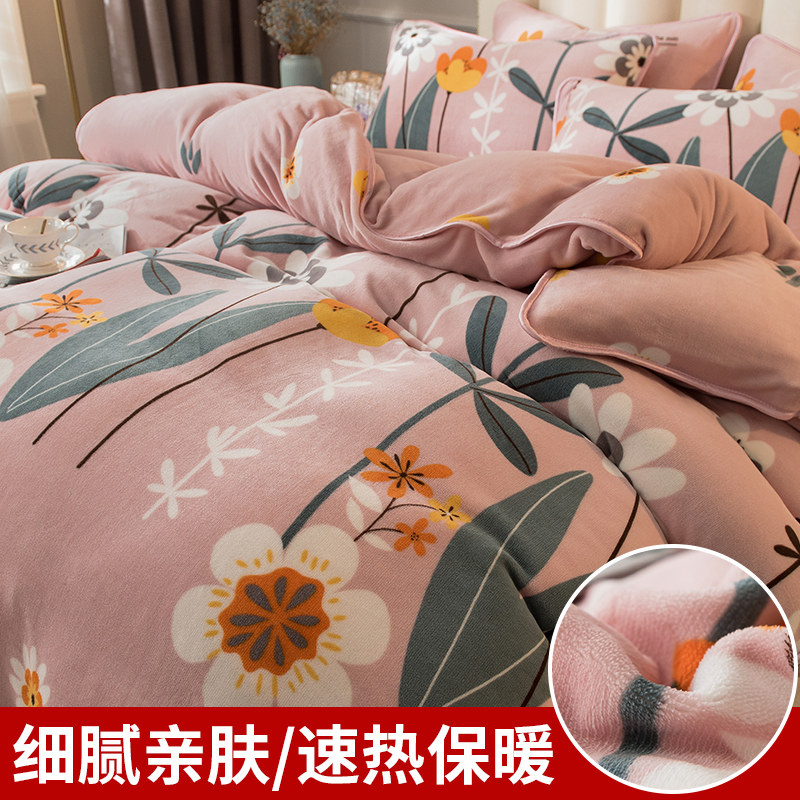 Зимний коралловый бархатный утепленный двусторонний комплект, флисовая простыня, пододеяльник, 4 предмета