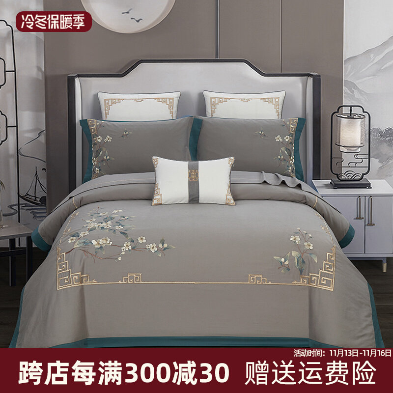 Хлопковый комплект, одеяло, пододеяльник, простыня, покрывало, китайский стиль, 4 предмета, 60 шт
