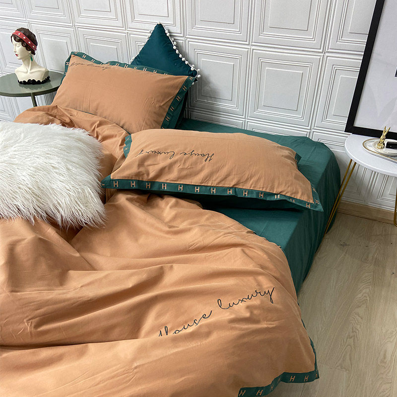 Хлопковый комплект, простыня, покрывало, простой и элегантный дизайн, 4 предмета, с вышивкой, 1.8м