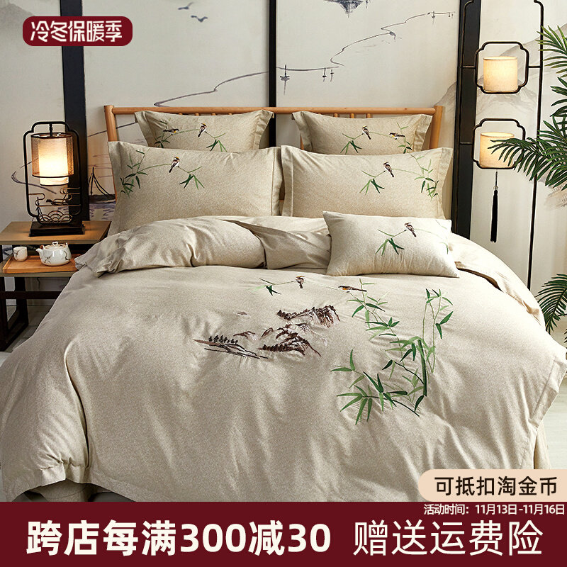 Зимнее хлопковое одеяло, пододеяльник, хлопковая простыня, покрывало, с вышивкой, увеличенная толщина