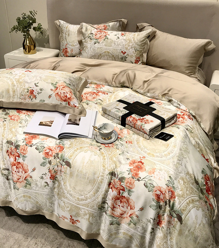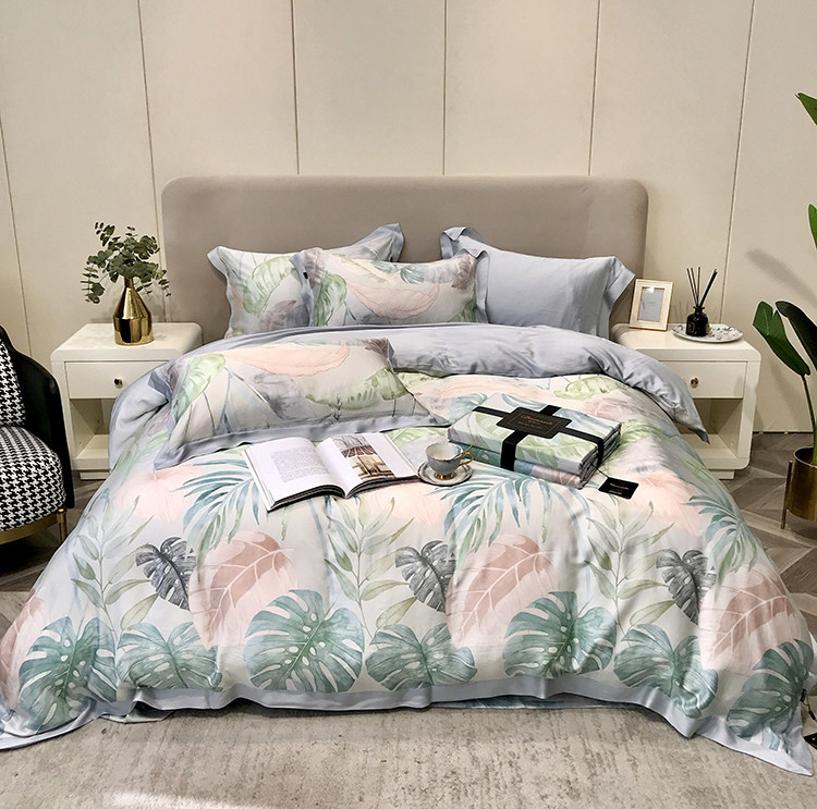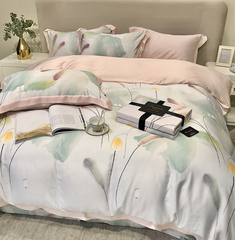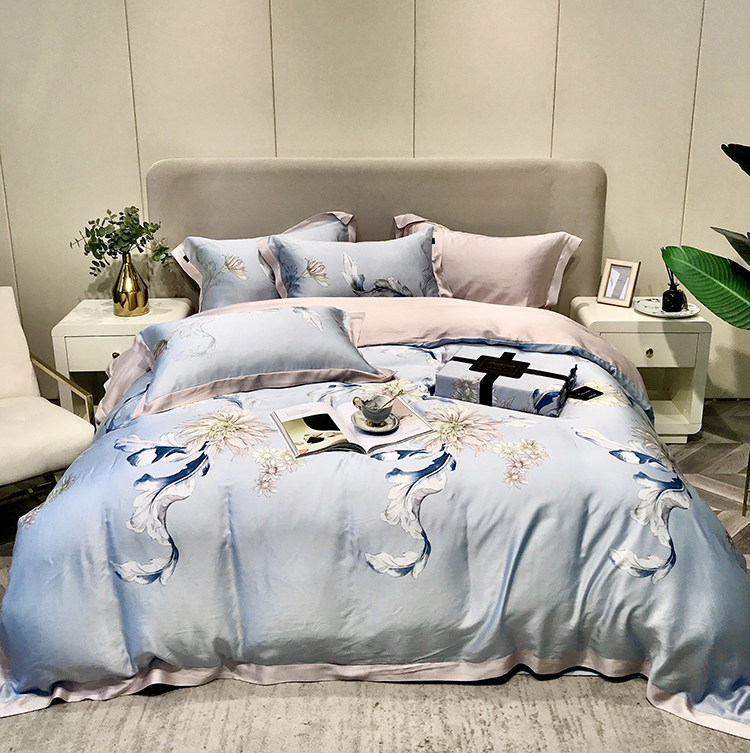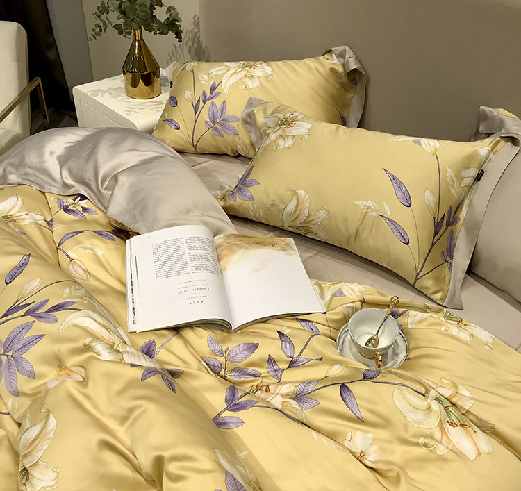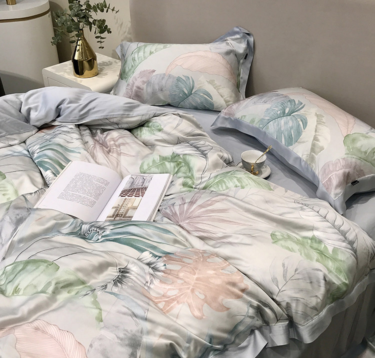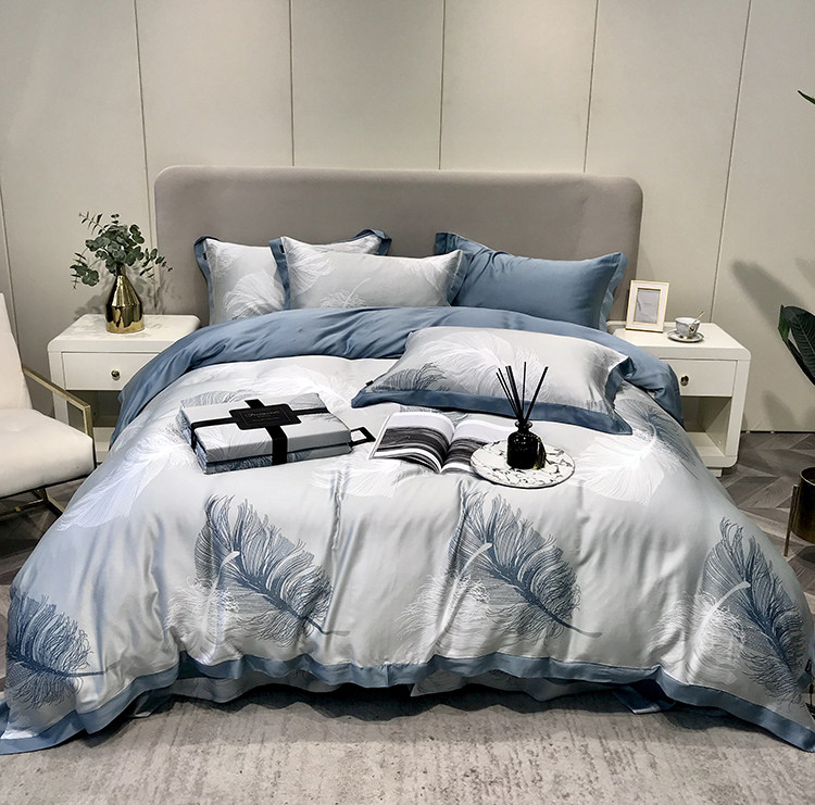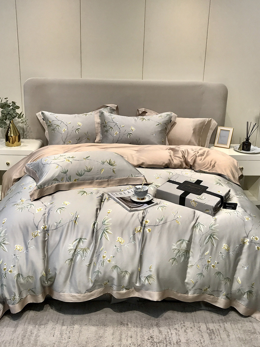 Элитный двусторонний летний комплект, шелковый пододеяльник, шелковистая простыня, покрывало, постельные принадлежности, 4 предмета