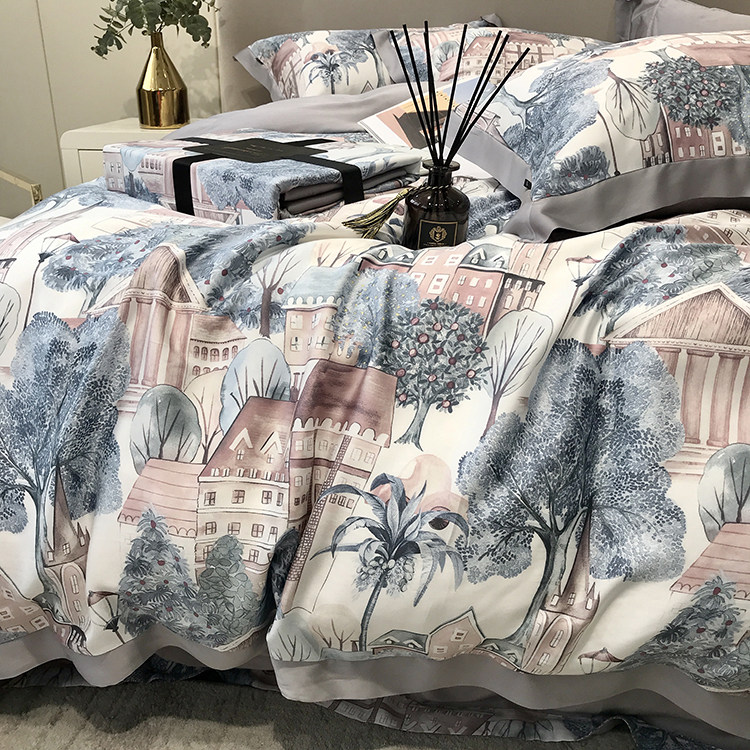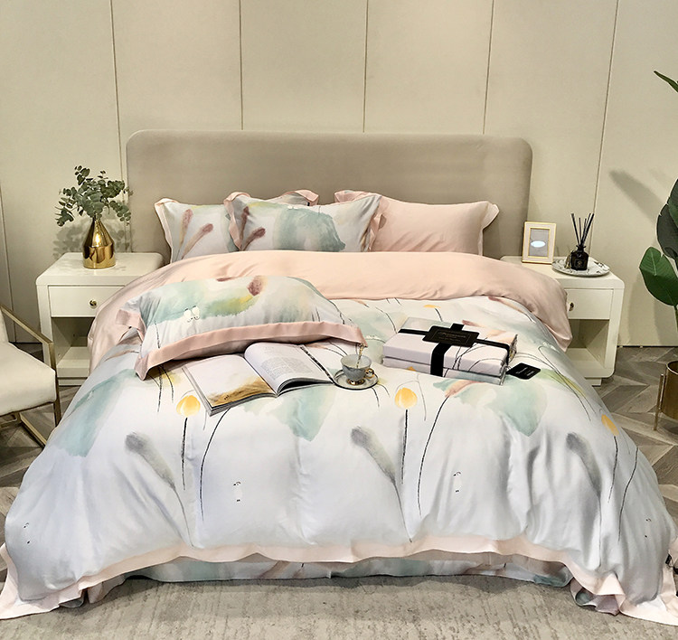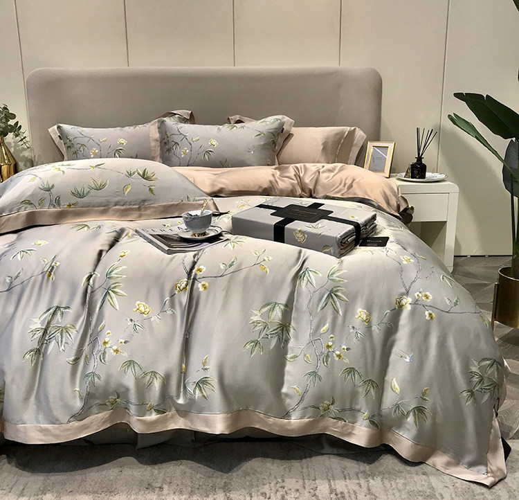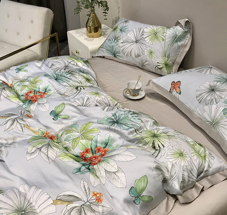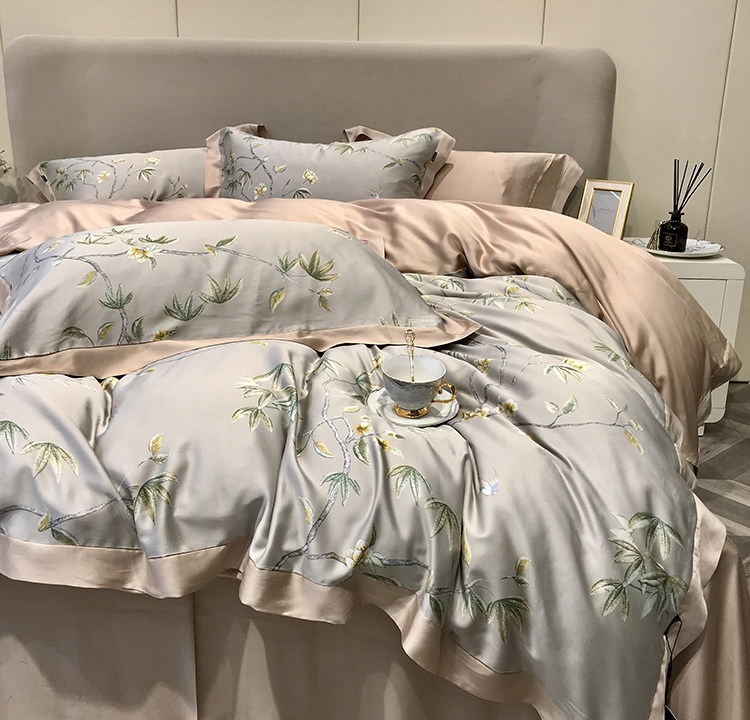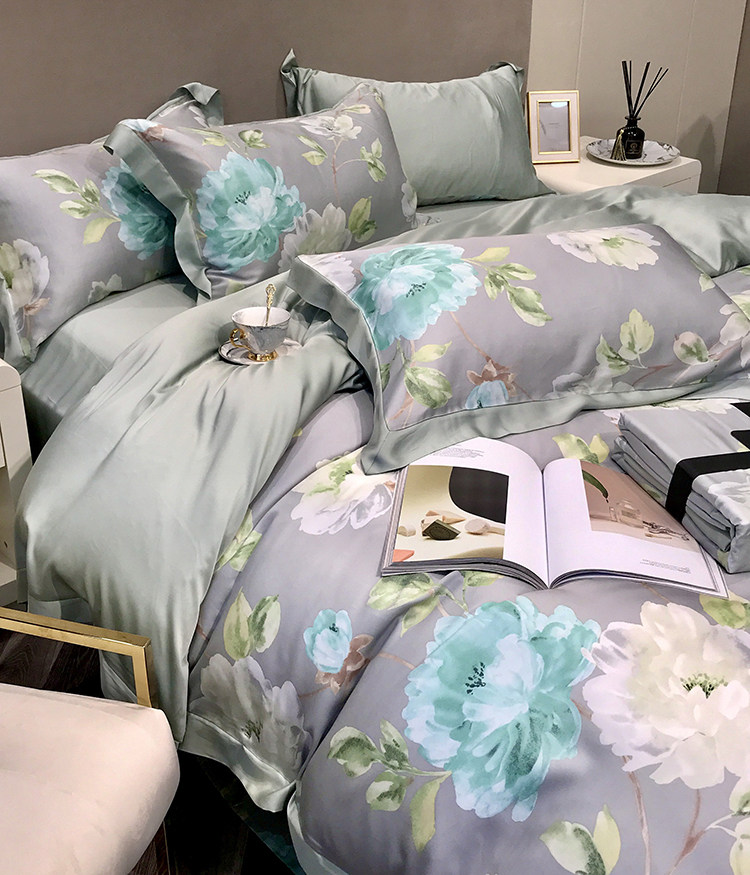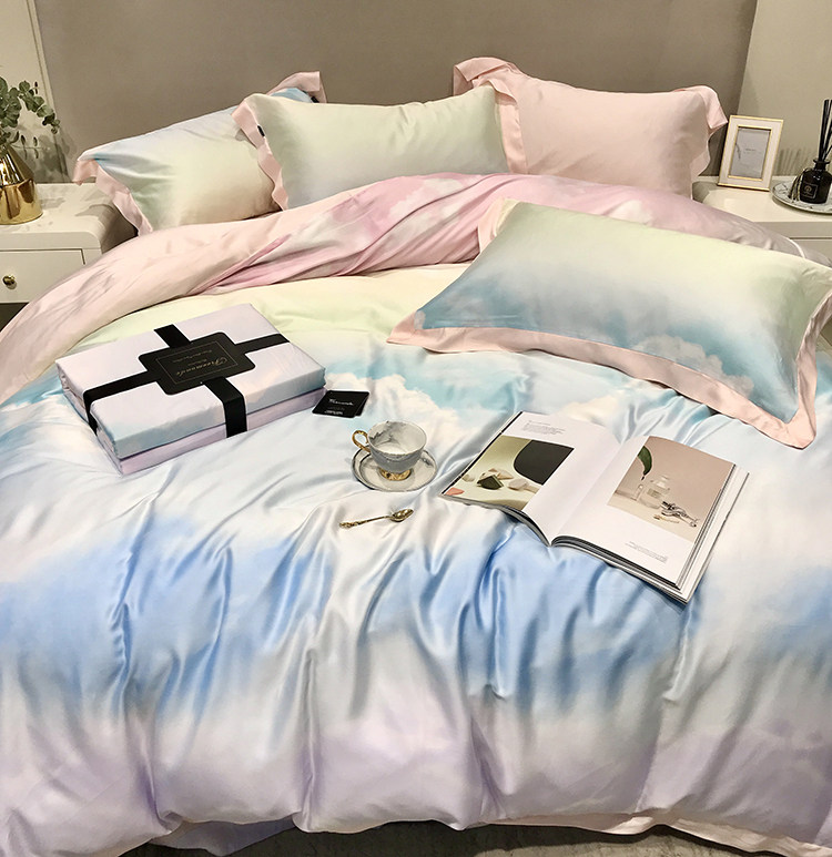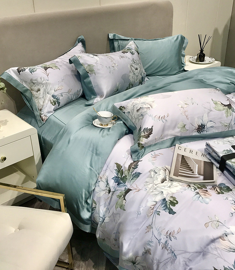 Элитный двусторонний летний комплект, шелковый пододеяльник, шелковистая простыня, покрывало, постельные принадлежности, 4 предмета