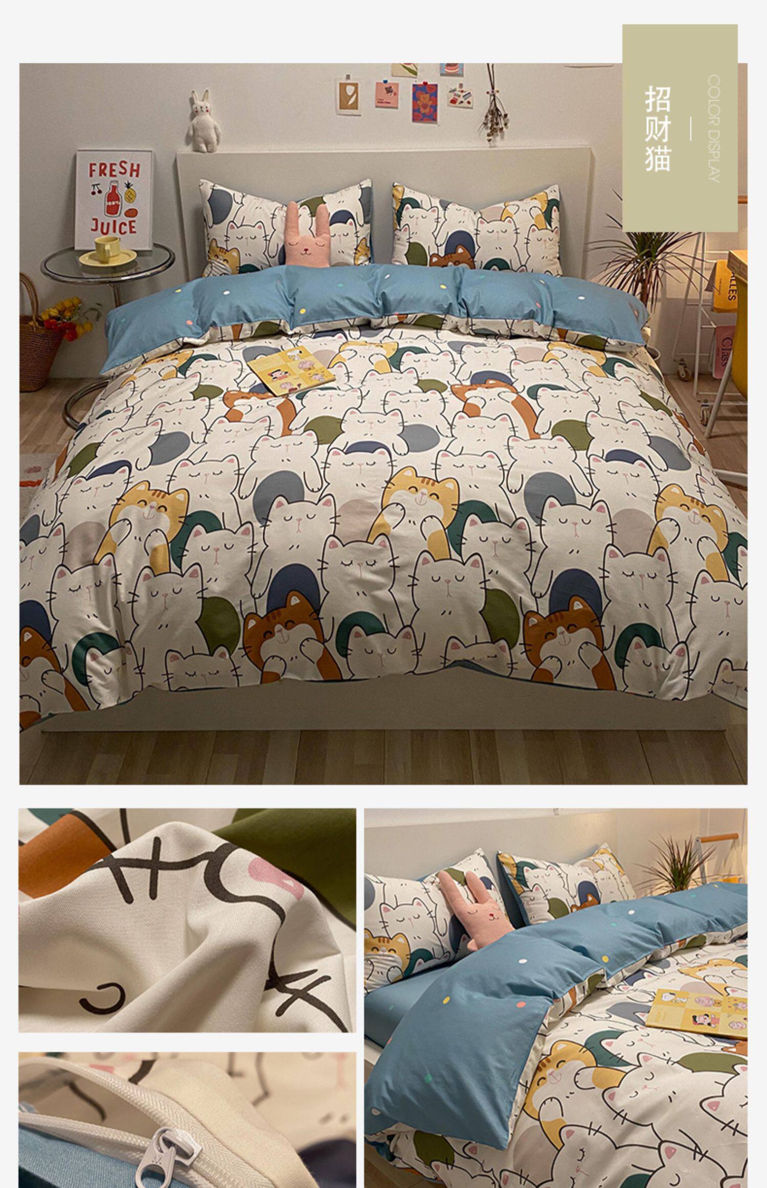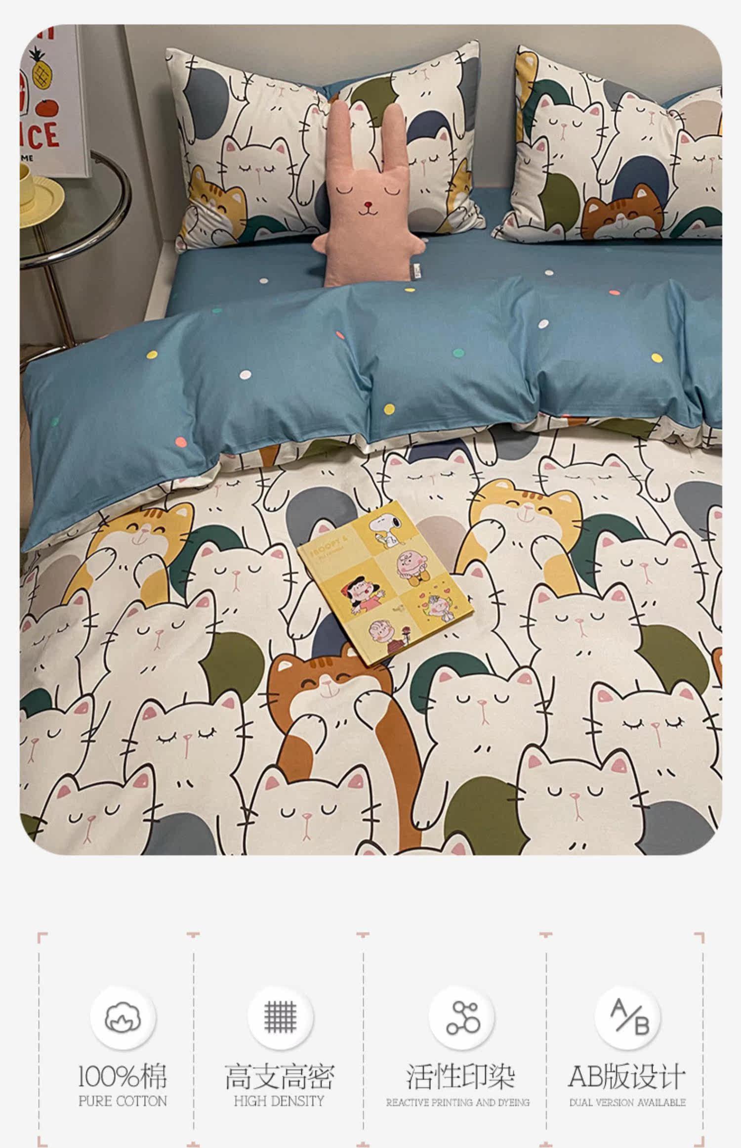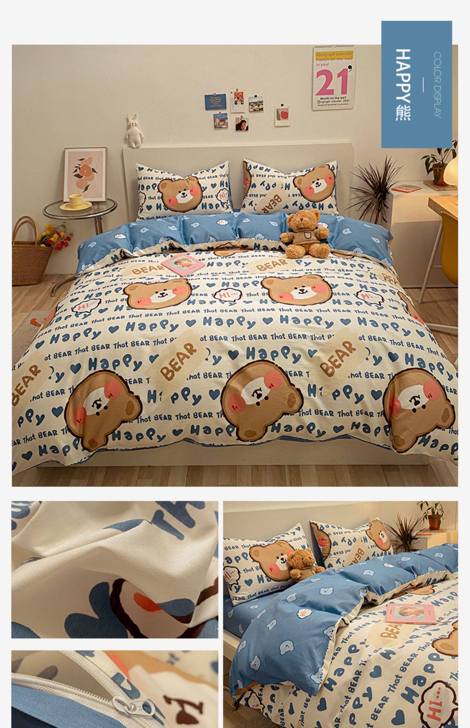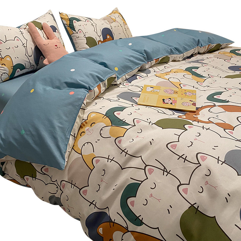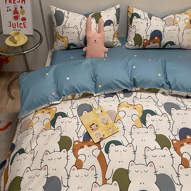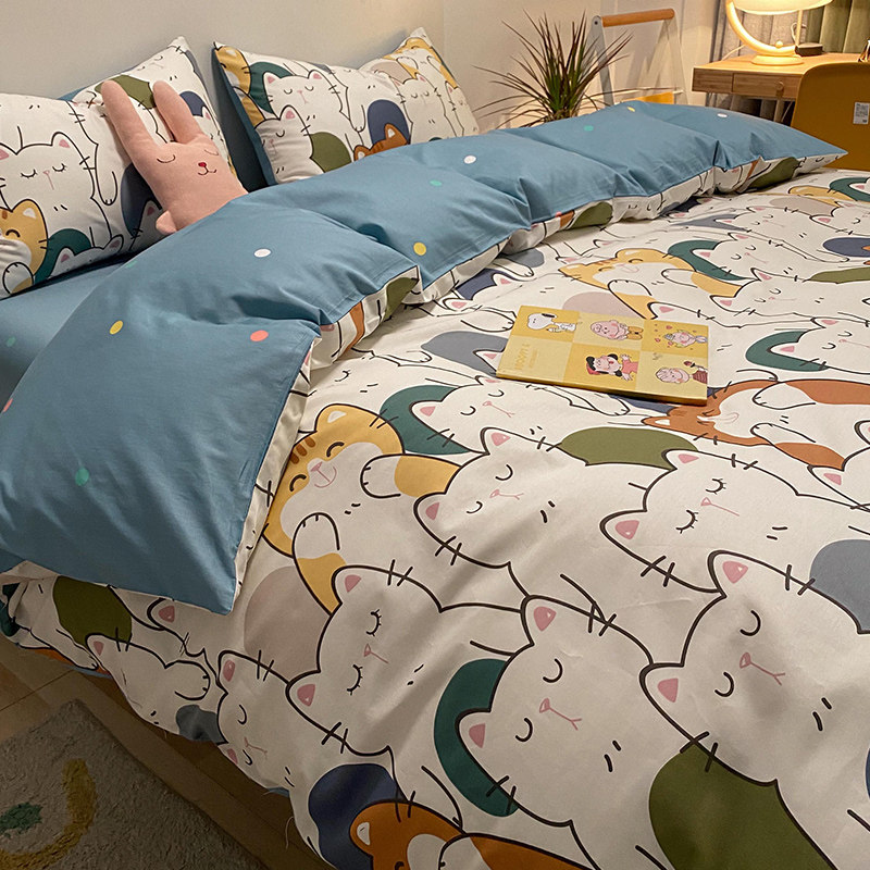 Брендовый хлопковый комплект, простыня, мультяшный пододеяльник, скандинавский стиль, 4 предмета, 3 предмета