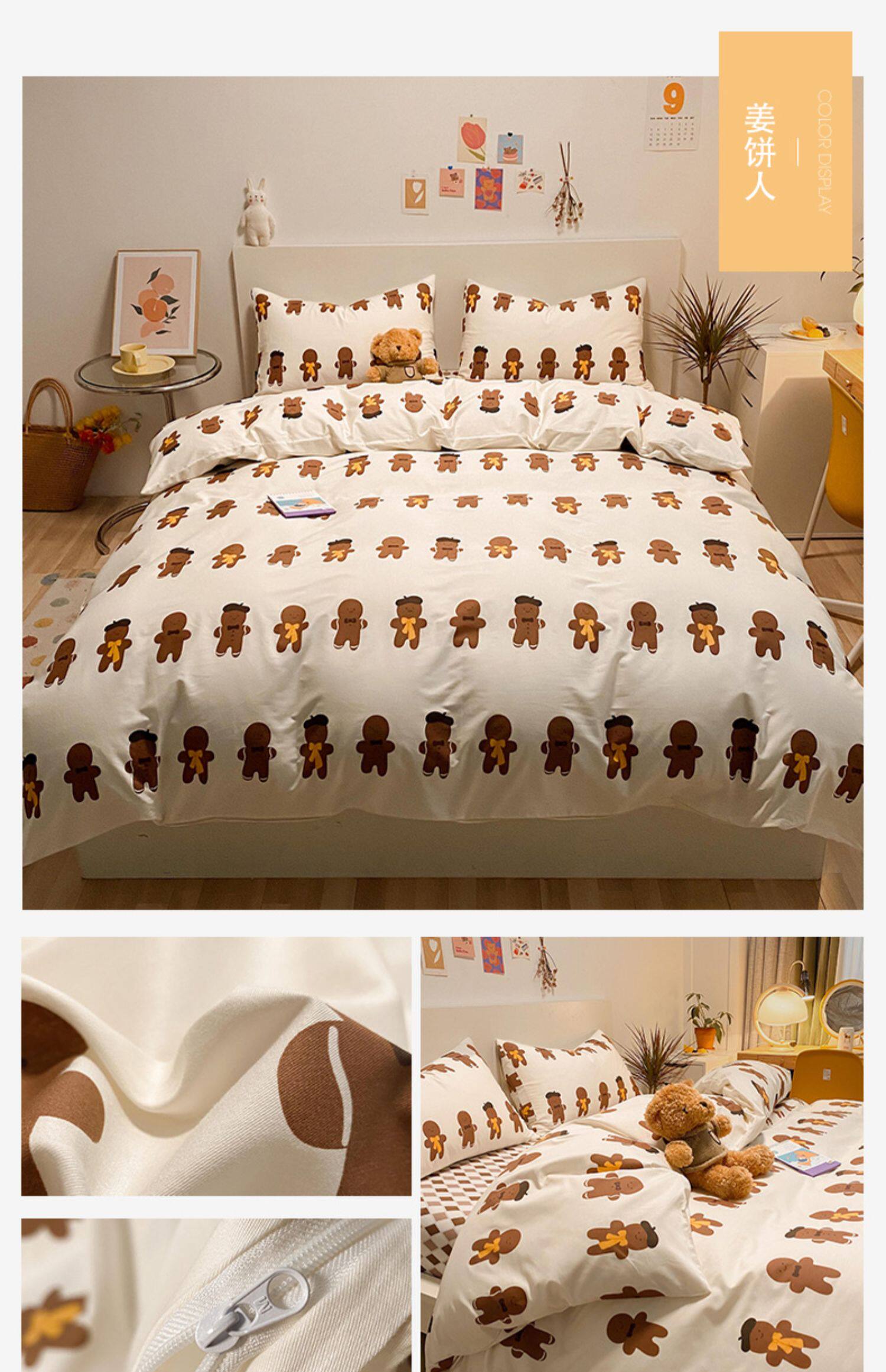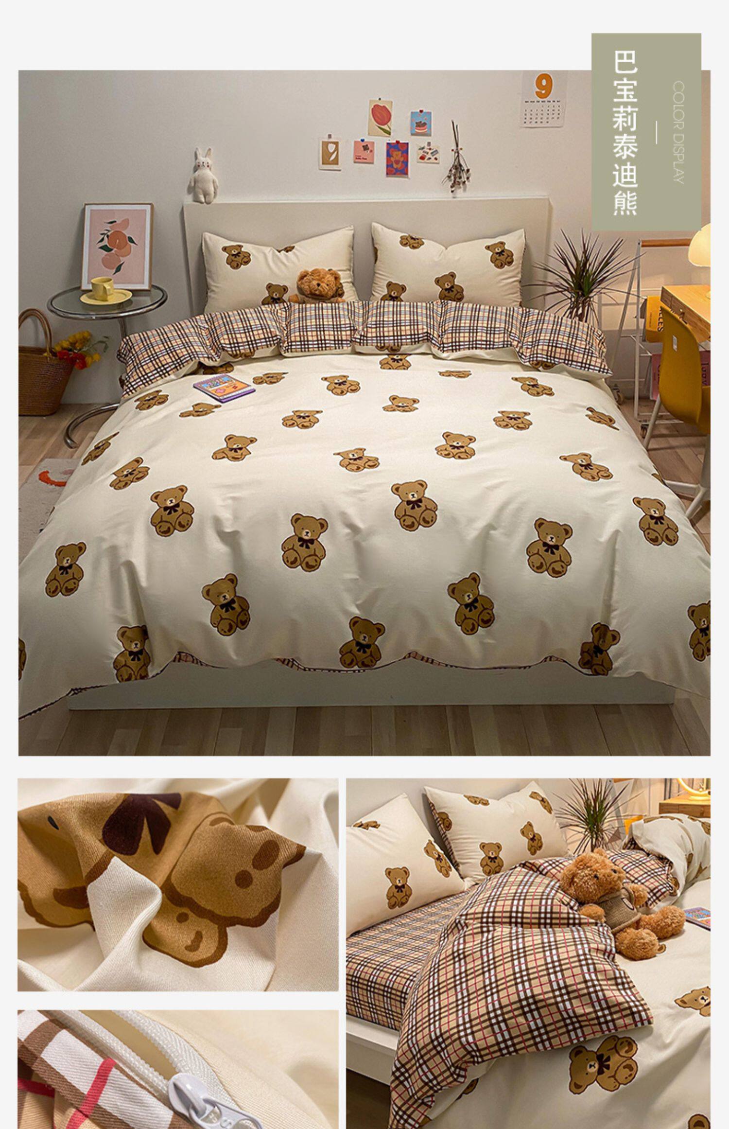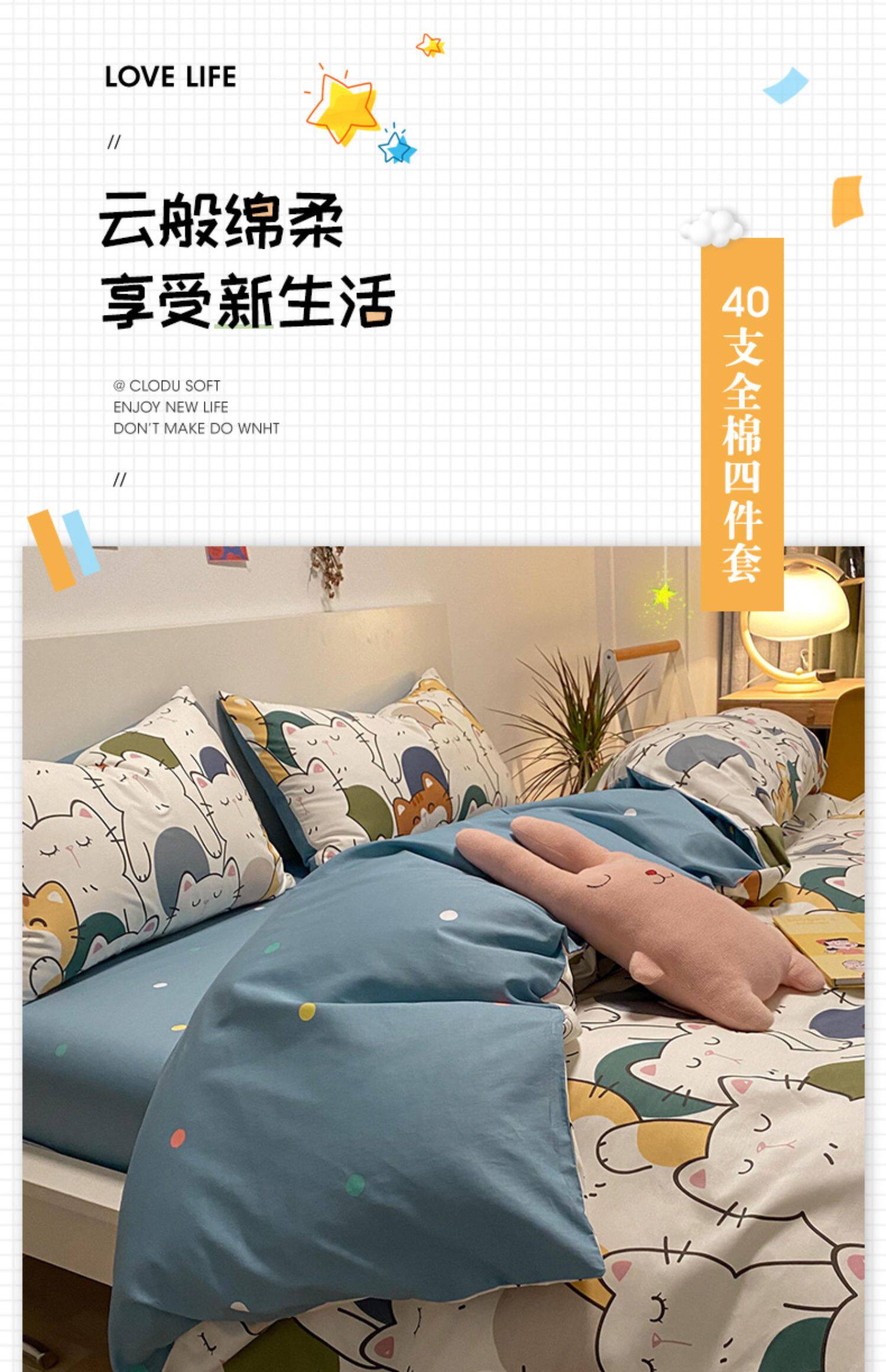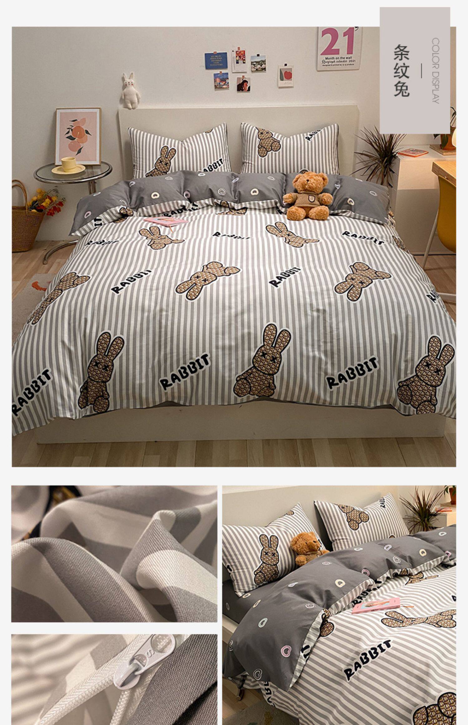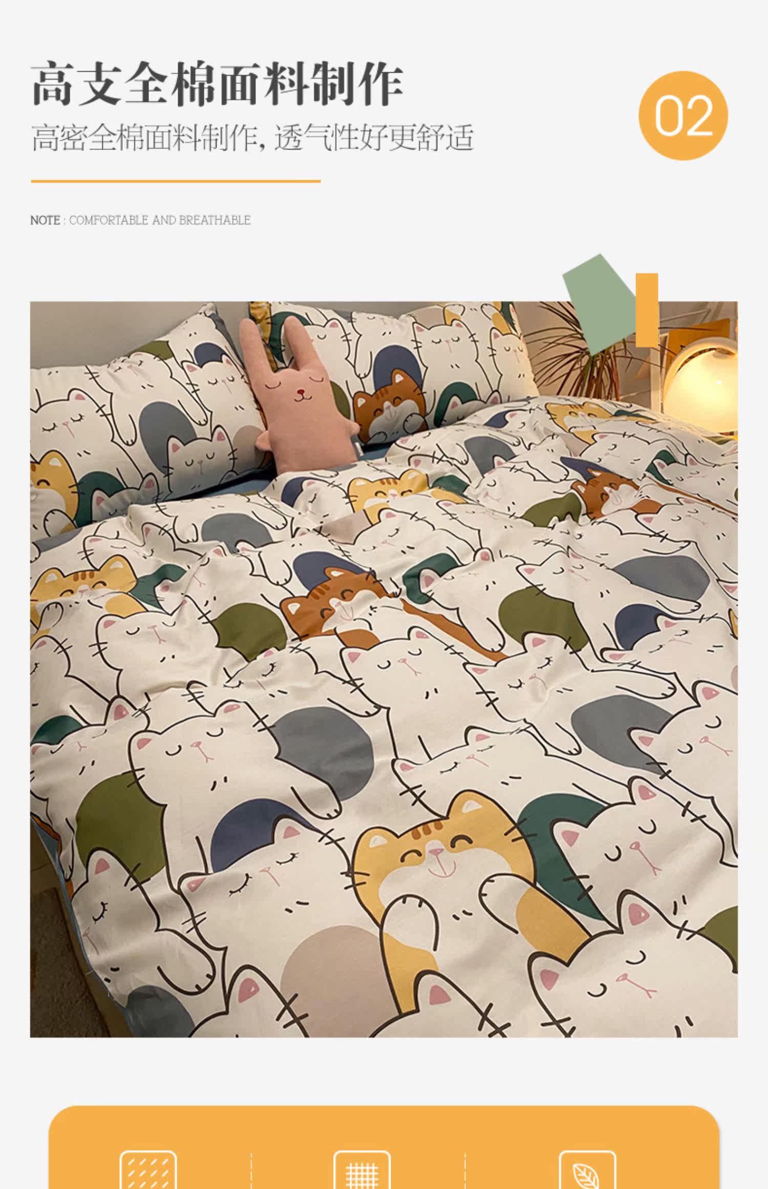 Брендовый хлопковый комплект, простыня, мультяшный пододеяльник, скандинавский стиль, 4 предмета, 3 предмета