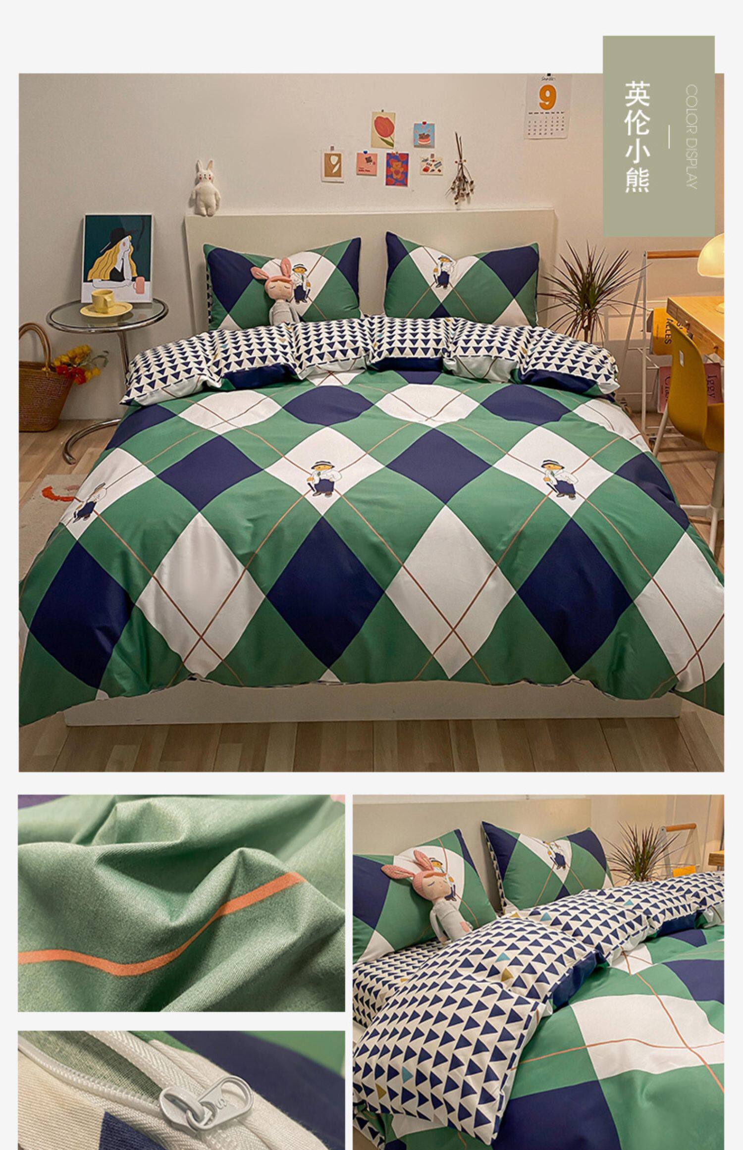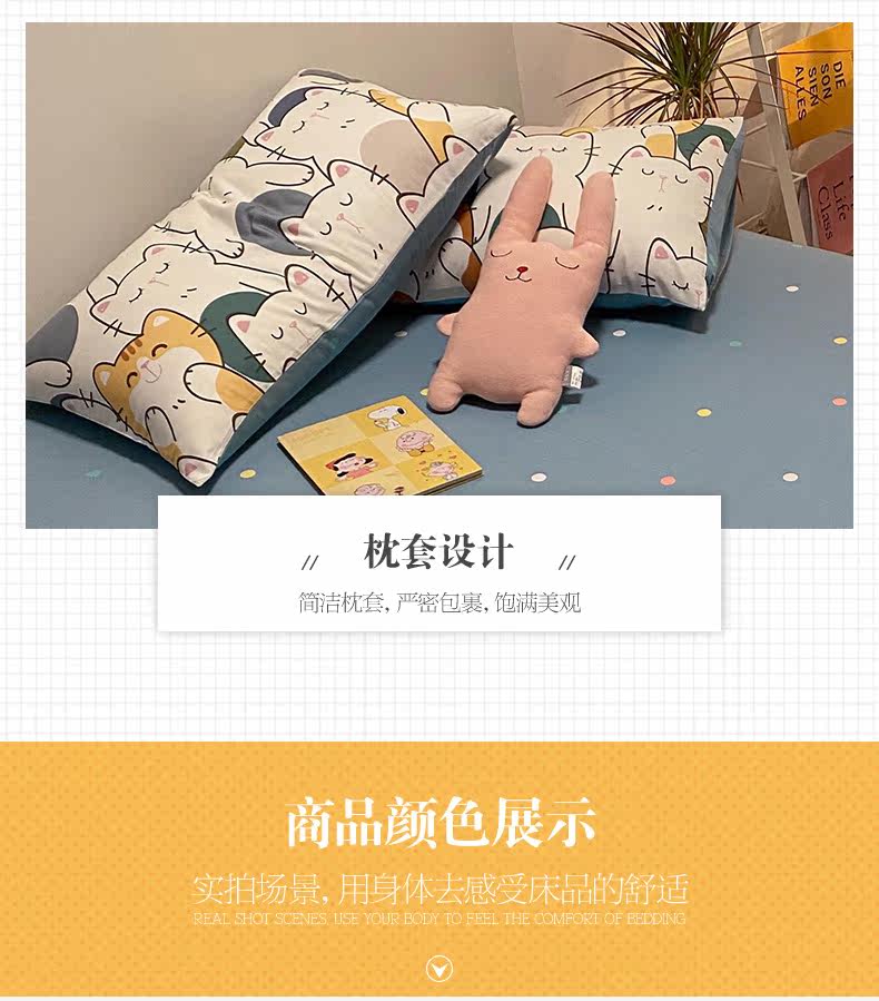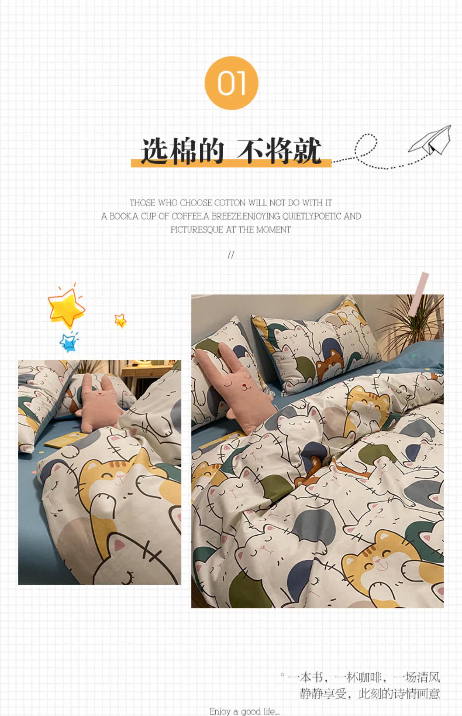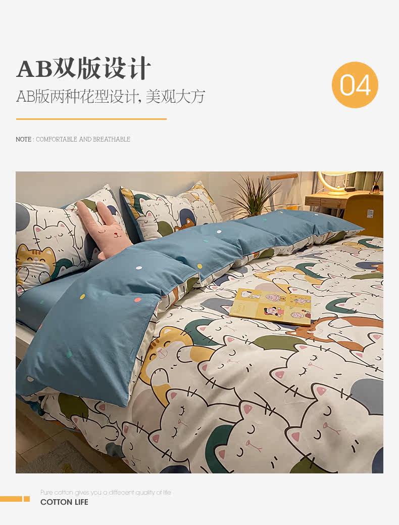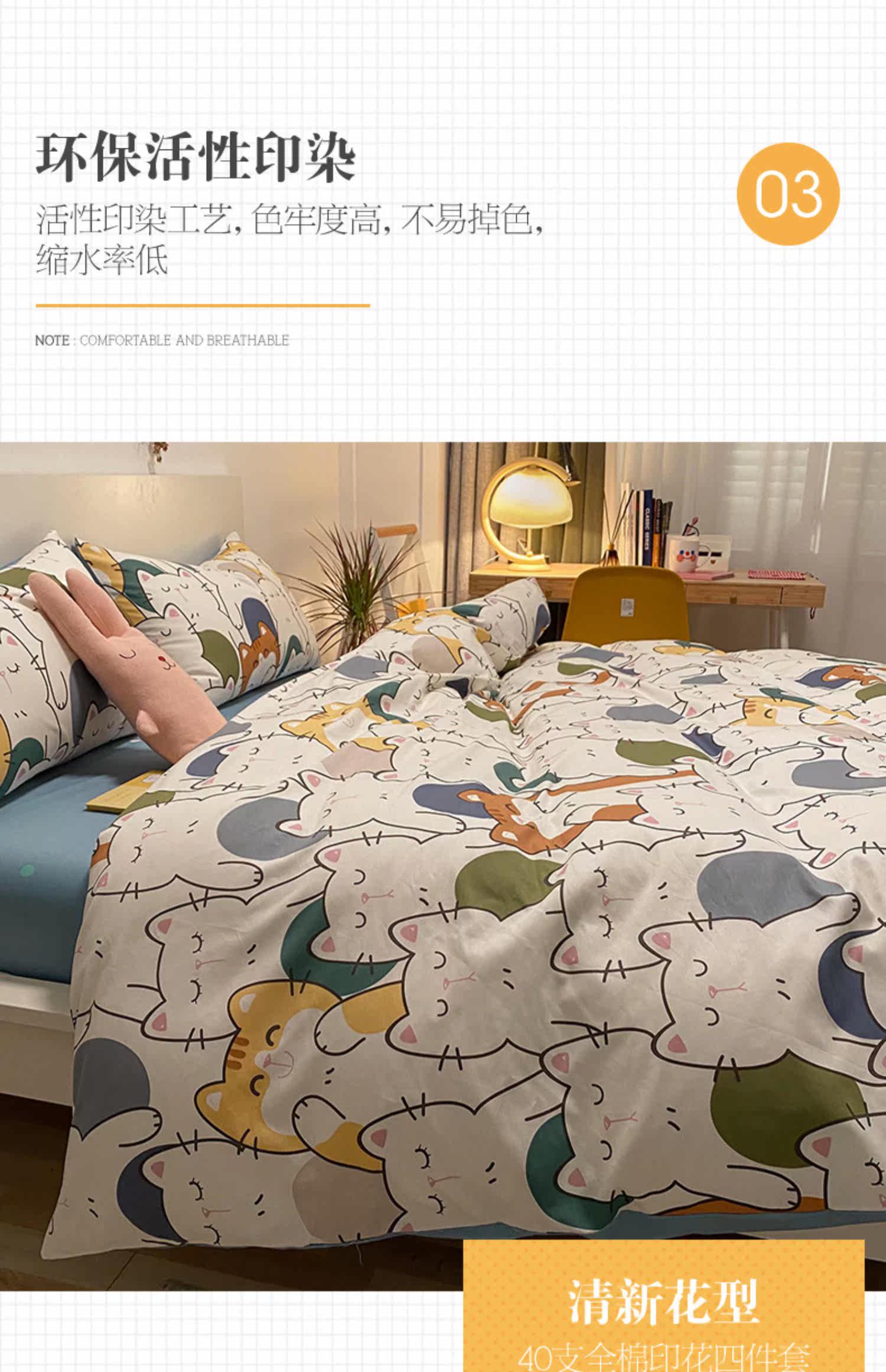 Брендовый хлопковый комплект, простыня, мультяшный пододеяльник, скандинавский стиль, 4 предмета, 3 предмета