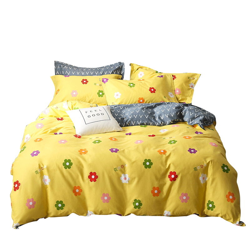 南极人 Брендовый желтый хлопковый пододеяльник в форме цветка, комплект, кровать, простыня, 4 предмета