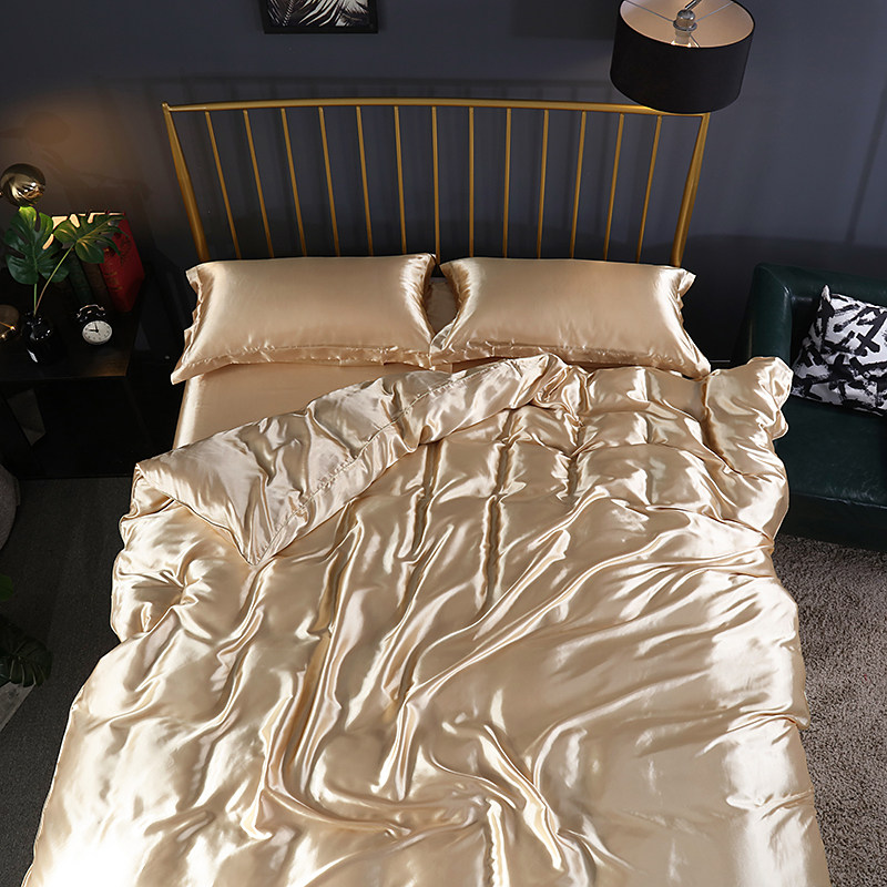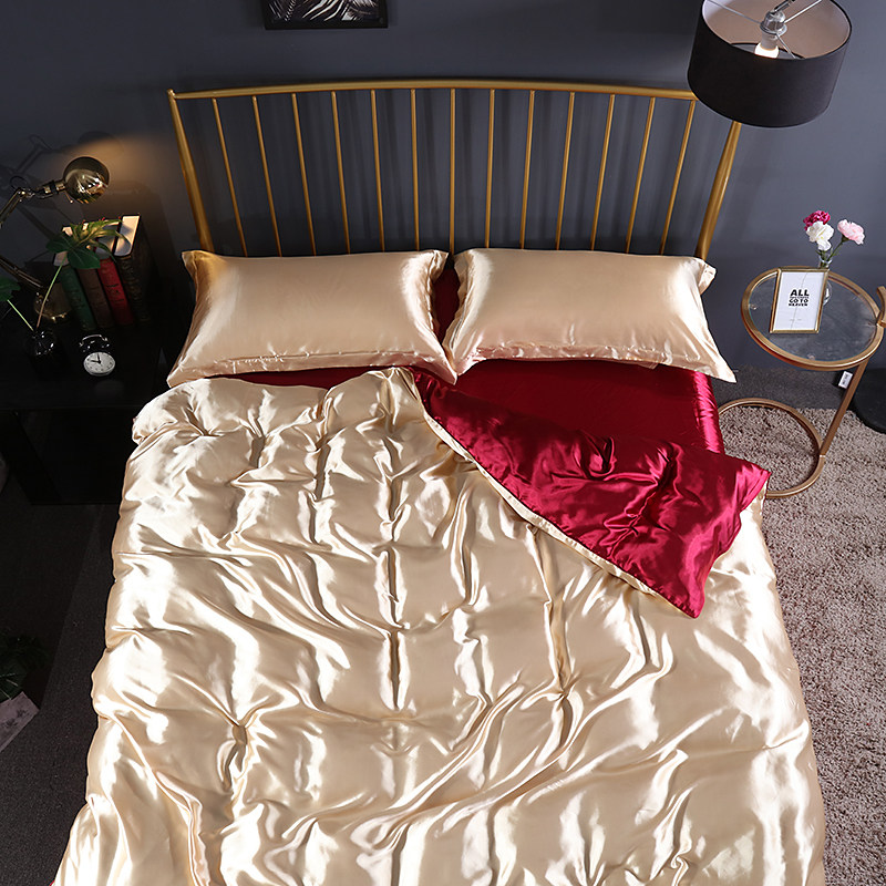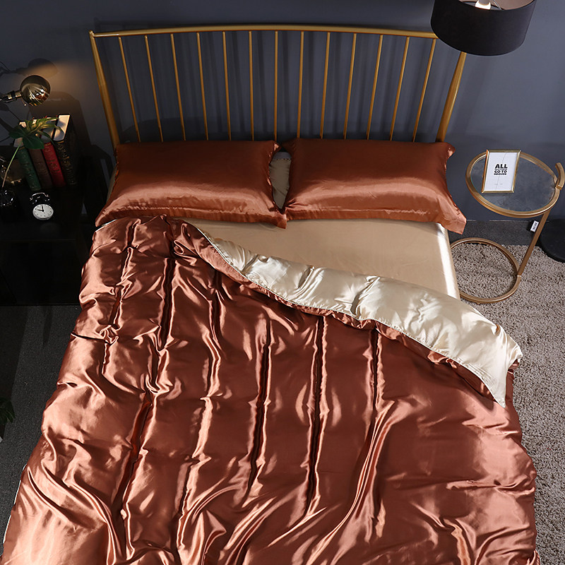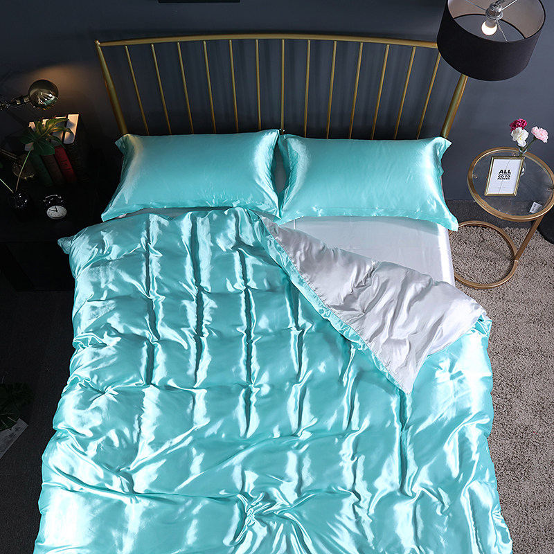 Летний шелковый комплект, прохладное одеяло, шелковистый пододеяльник, кровать, шелковая простыня, покрывало, 4 предмета
