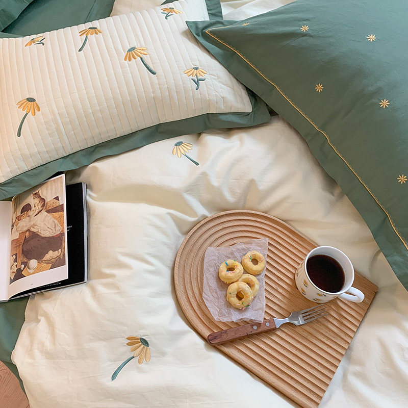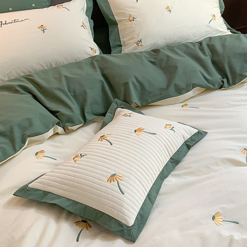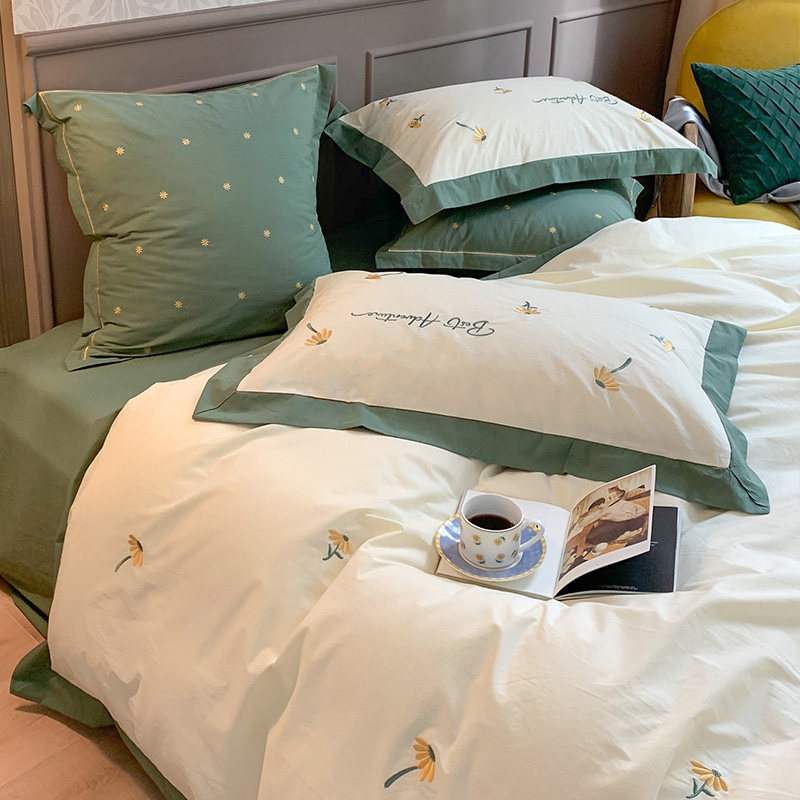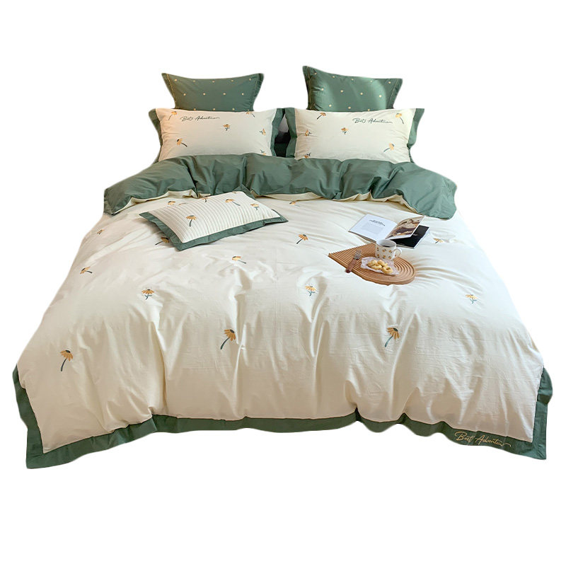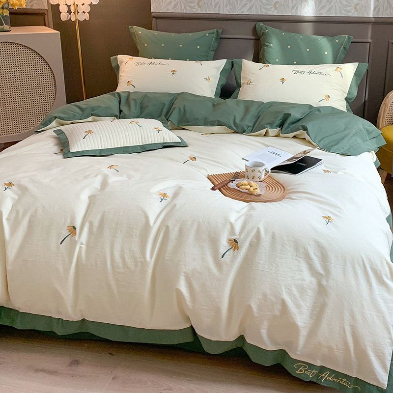 Хлопковый свежий комплект, хлопковое покрывало, 4 предмета, простой и элегантный дизайн, с вышивкой