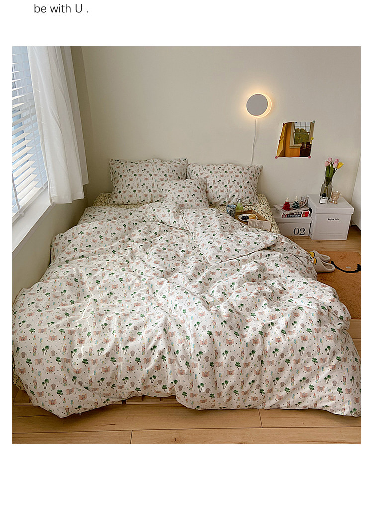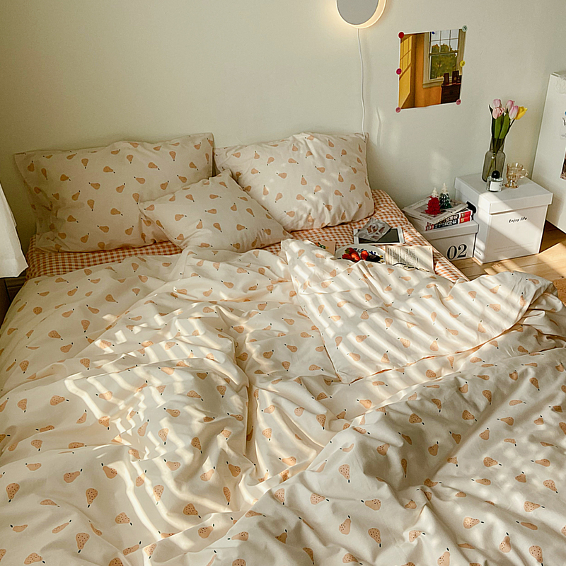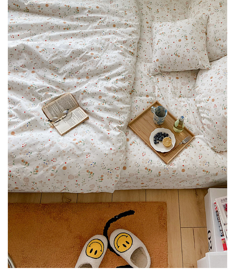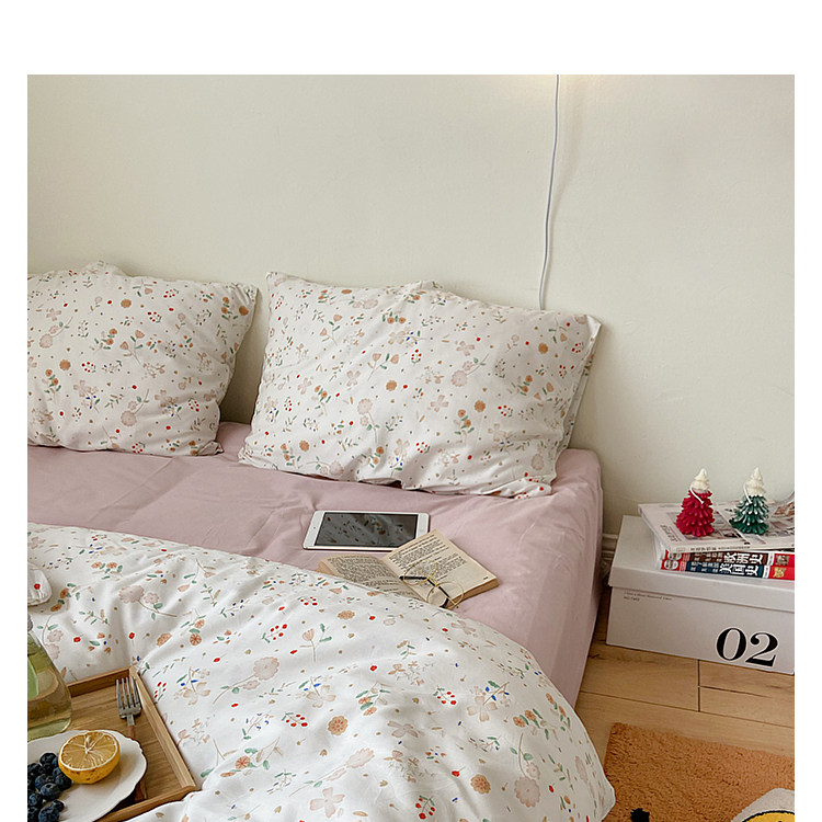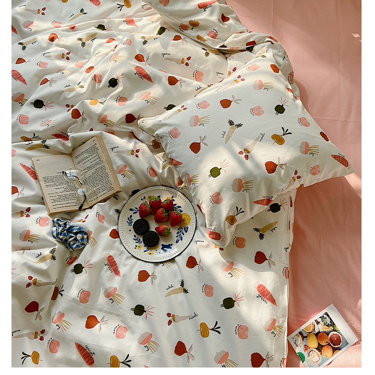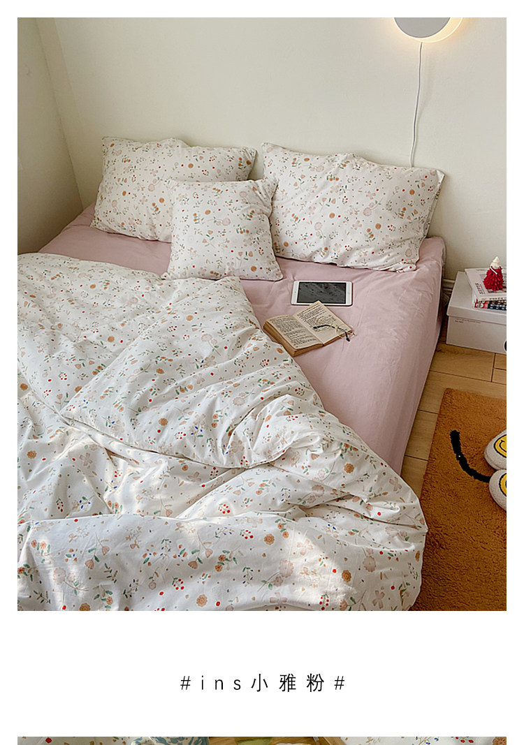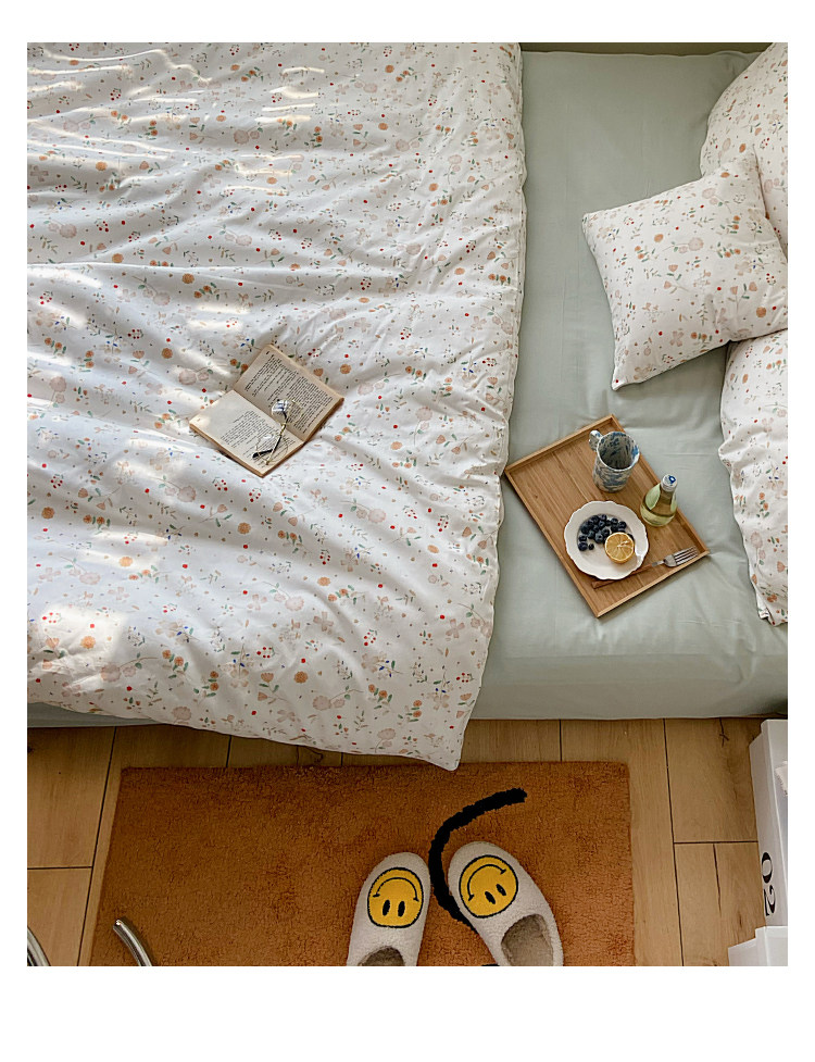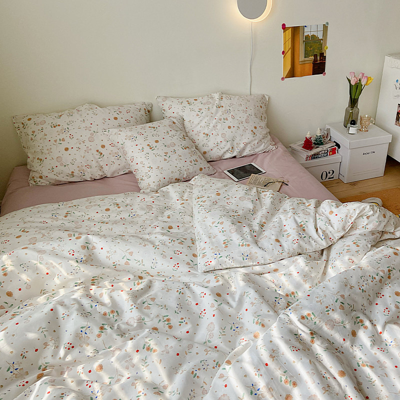 Брендовый японский хлопковый свежий комплект, пододеяльник, простыня, цветочный принт, 4 предмета