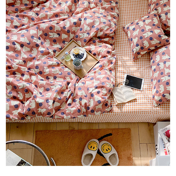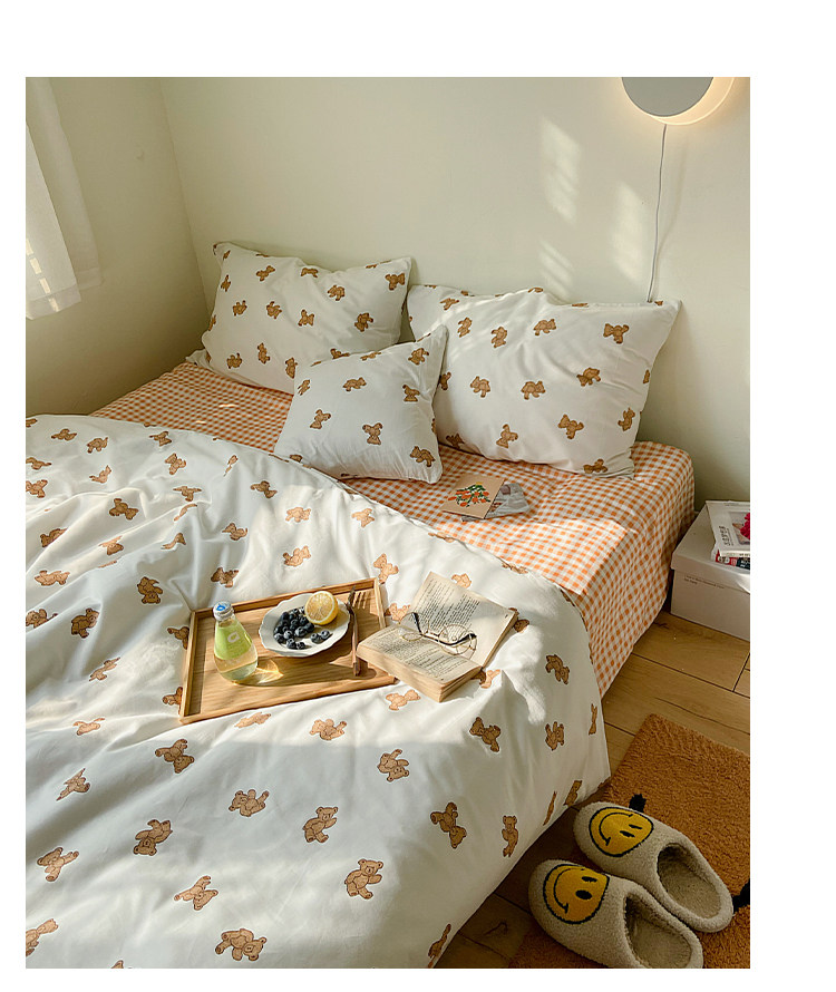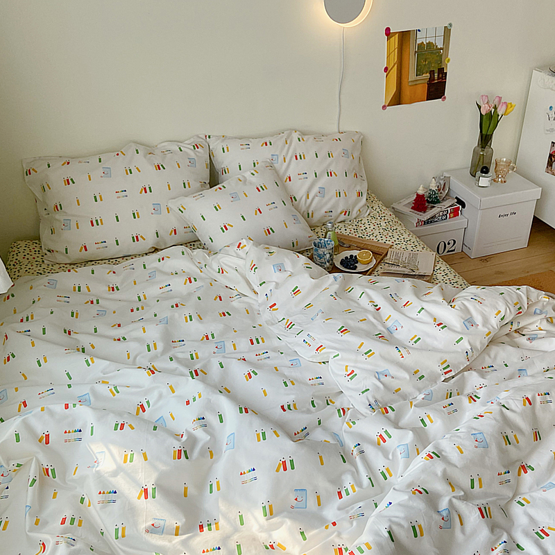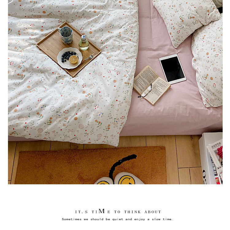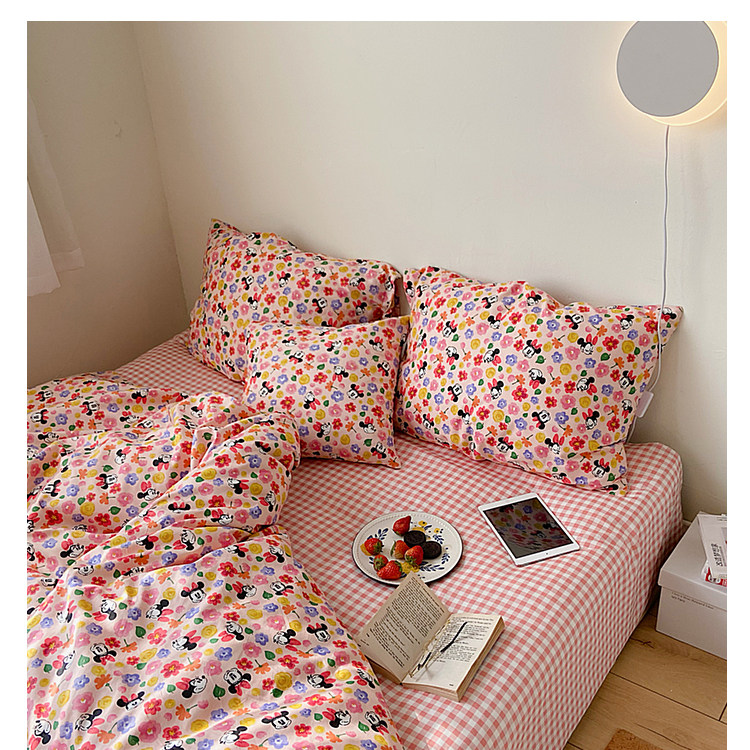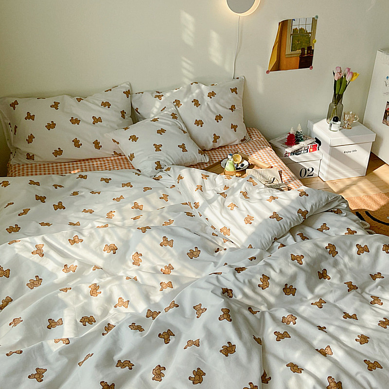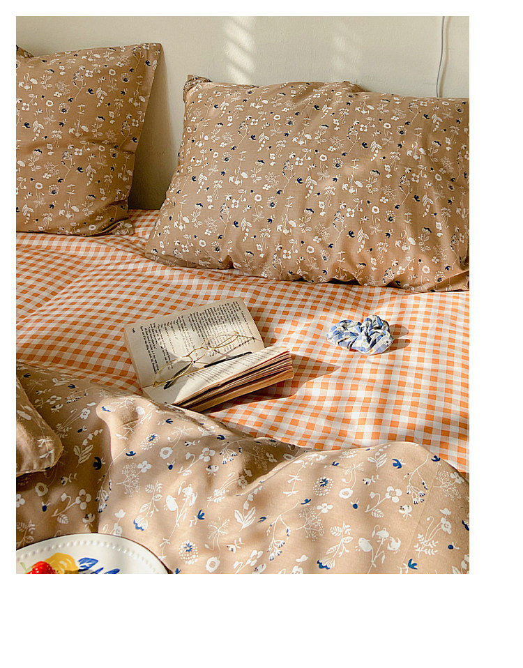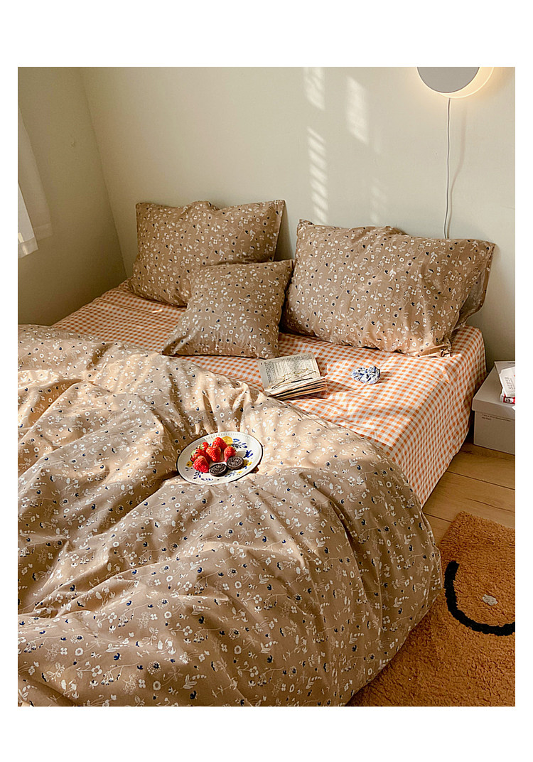 Брендовый японский хлопковый свежий комплект, пододеяльник, простыня, цветочный принт, 4 предмета