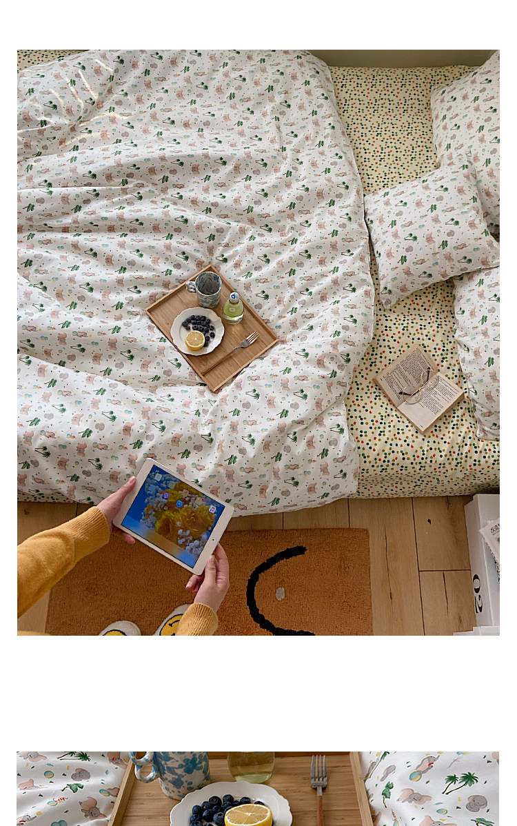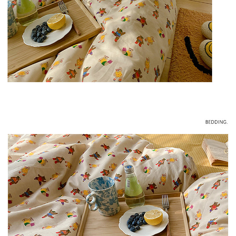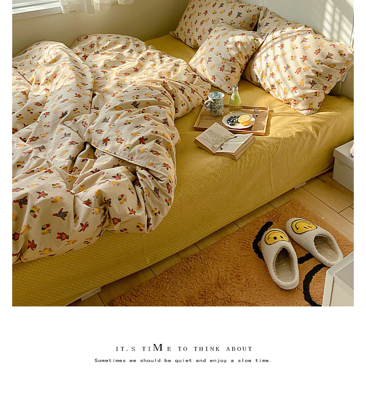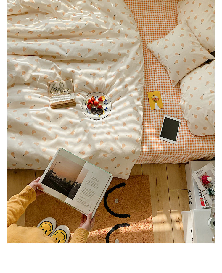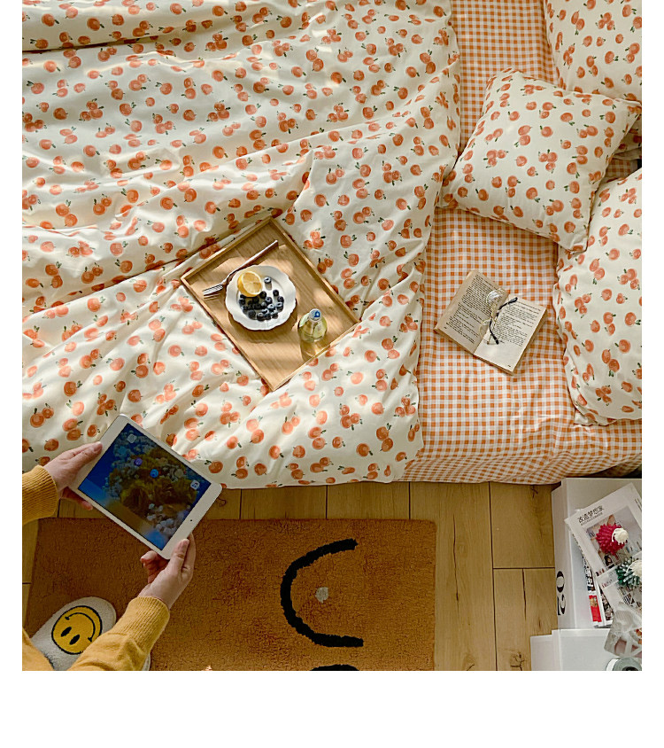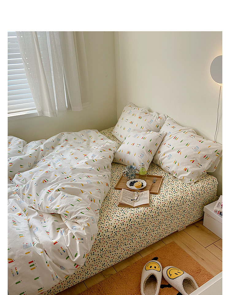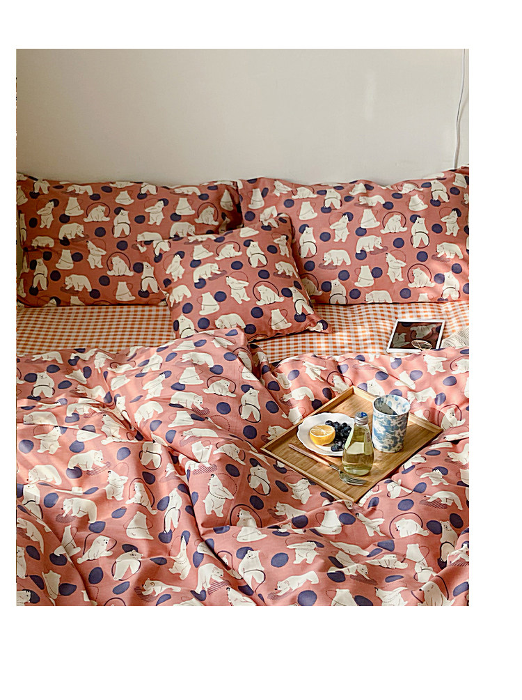 Брендовый японский хлопковый свежий комплект, пододеяльник, простыня, цветочный принт, 4 предмета