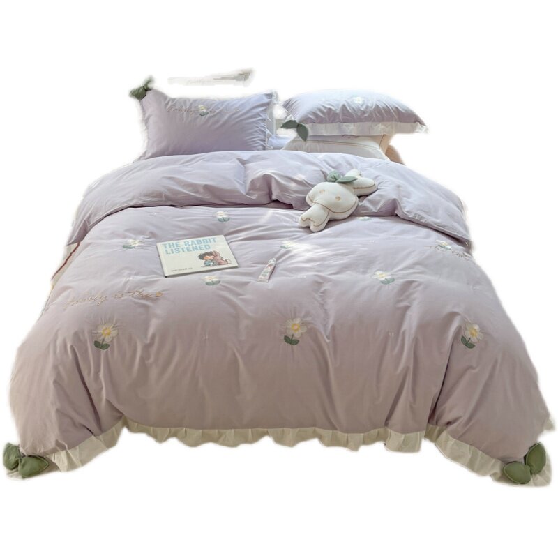 Хлопковый комплект, простыня, летний пододеяльник, популярно в интернете, 4 предмета, с вышивкой