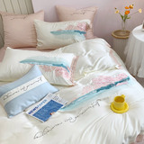 Свежий комплект, пододеяльник, кровать, покрывало, 80 шт, 4 предмета, с вышивкой