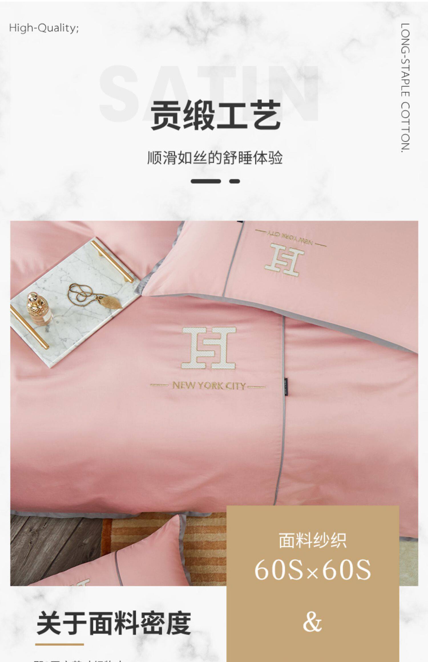 Хлопковый комплект, простыня, пододеяльник, покрывало, легкий роскошный стиль, 60 шт, с вышивкой, 4 предмета, простой и элегантный дизайн, скандинавский стиль