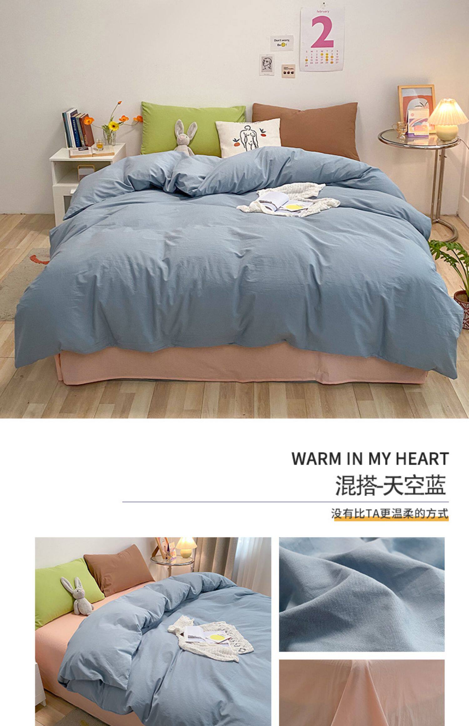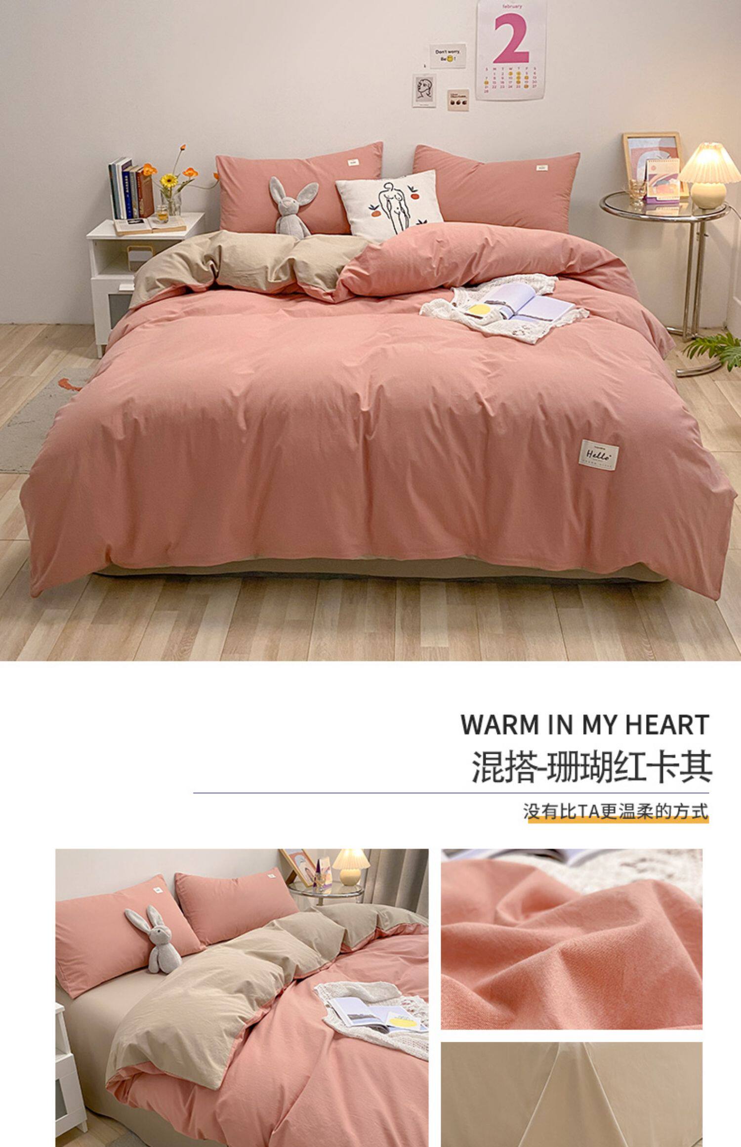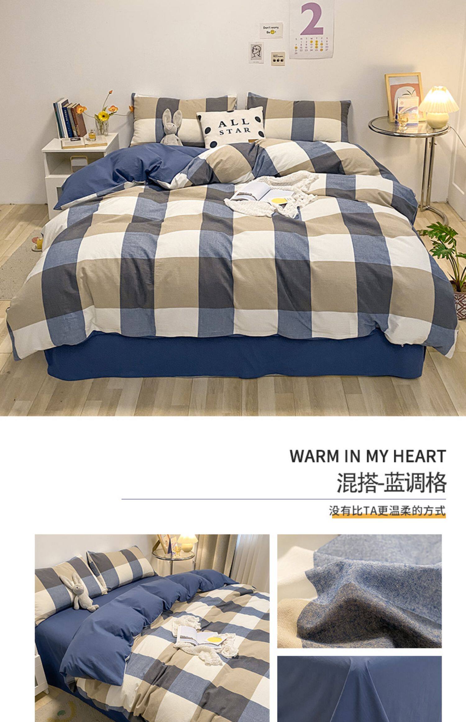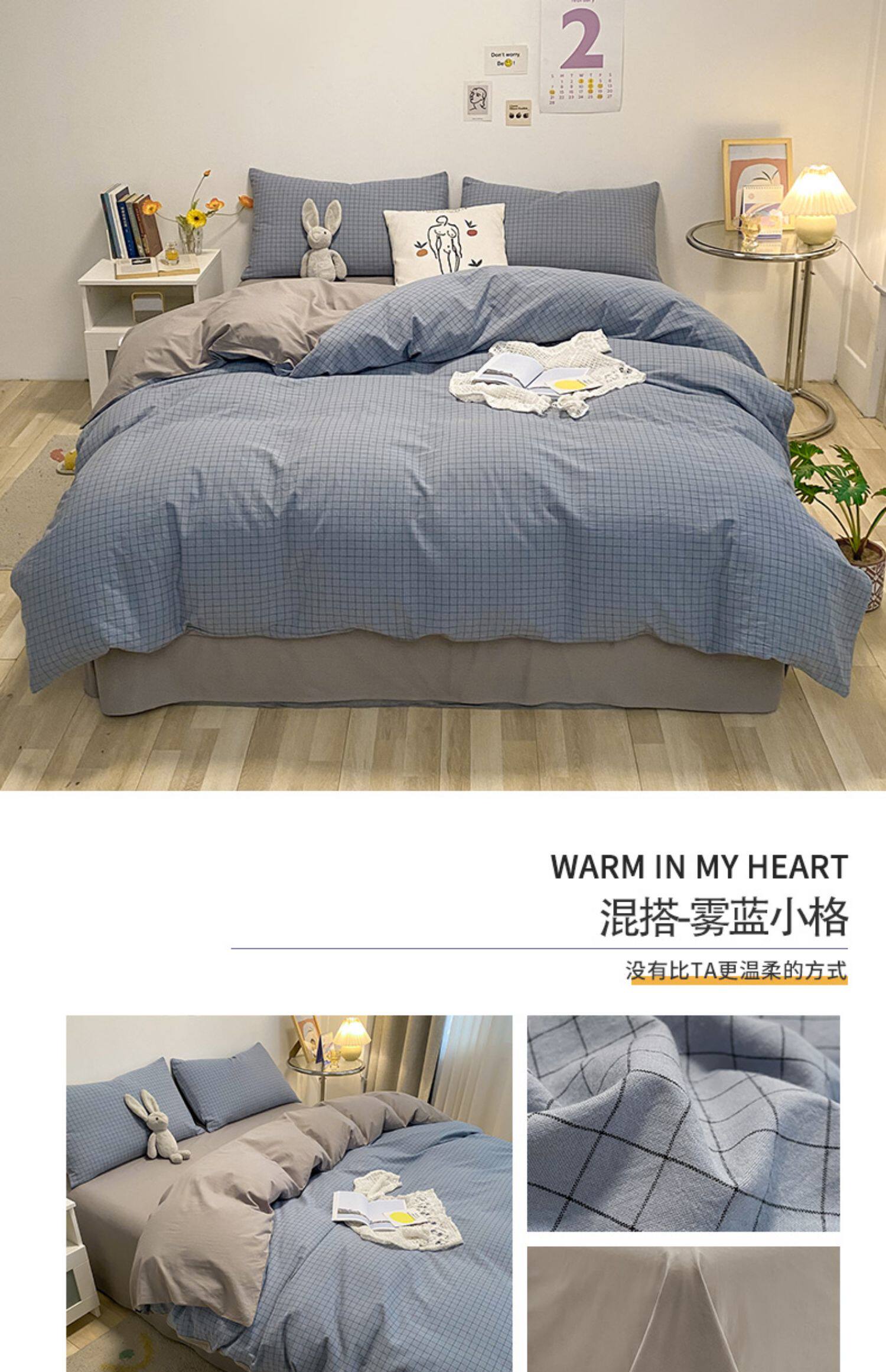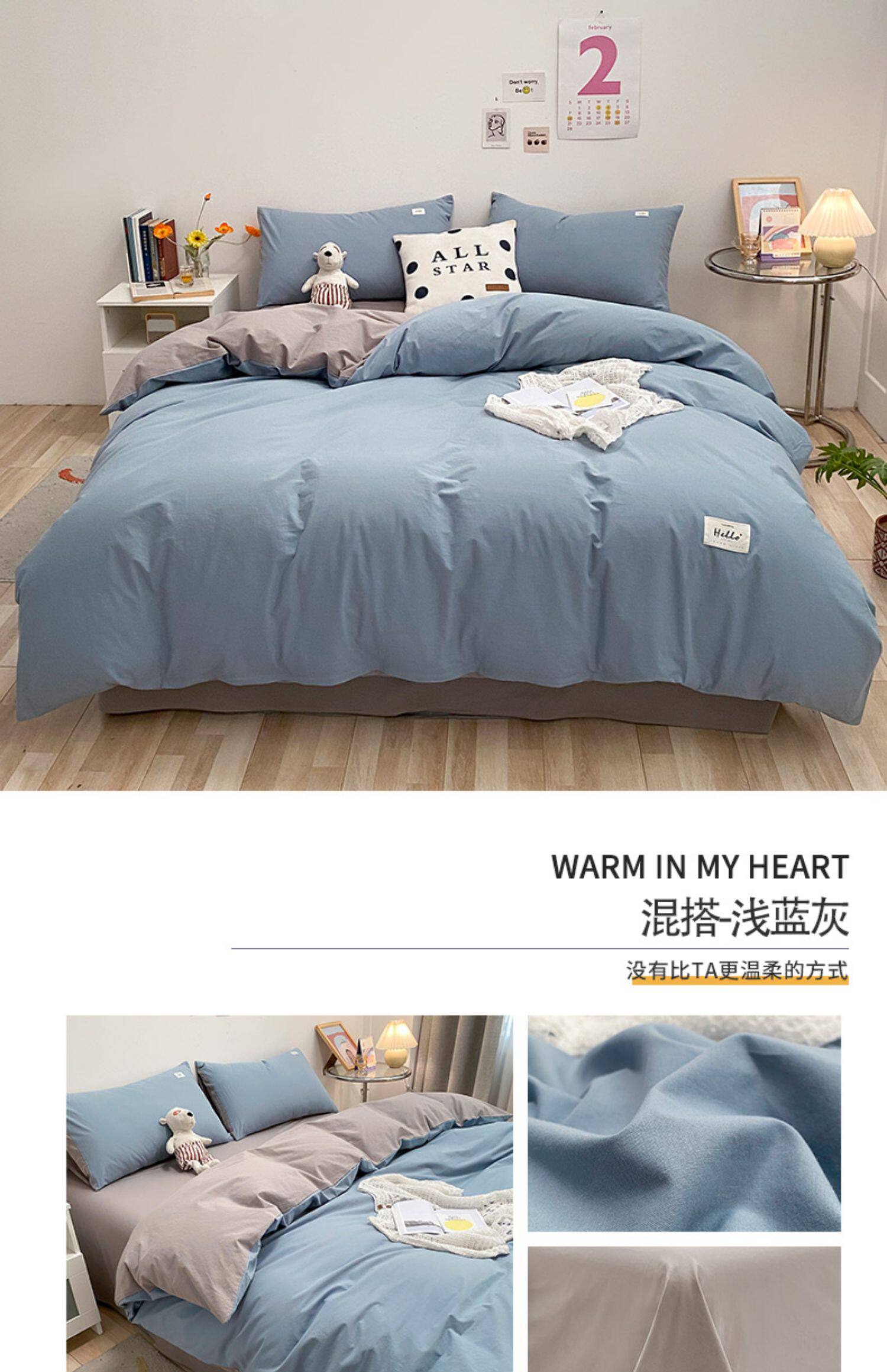 Хлопковый комплект, простыня, летний свежий пододеяльник, покрывало, 4 предмета, простой и элегантный дизайн, 3 предмета