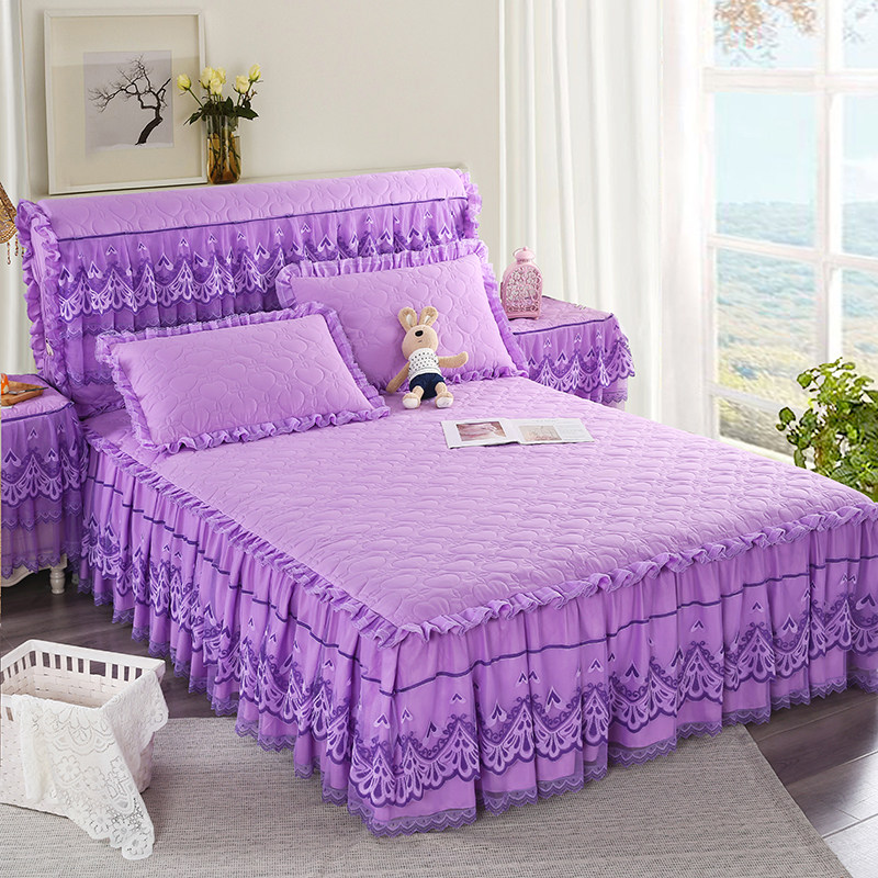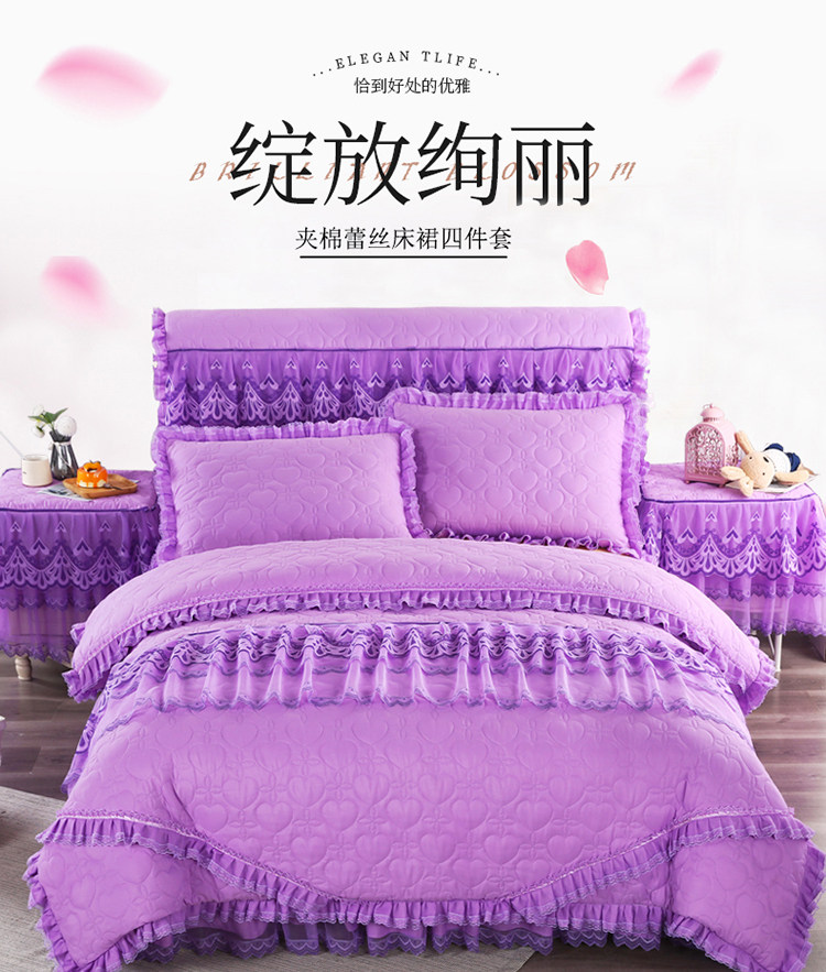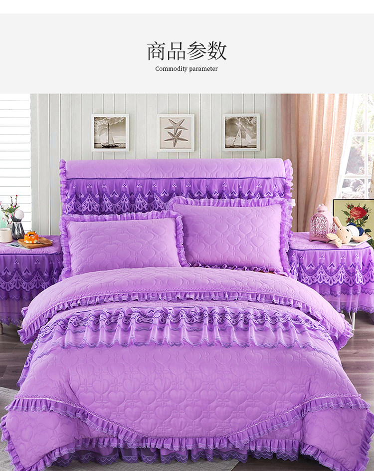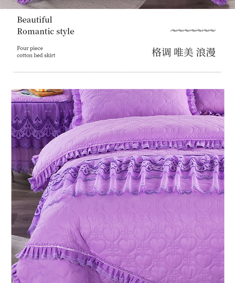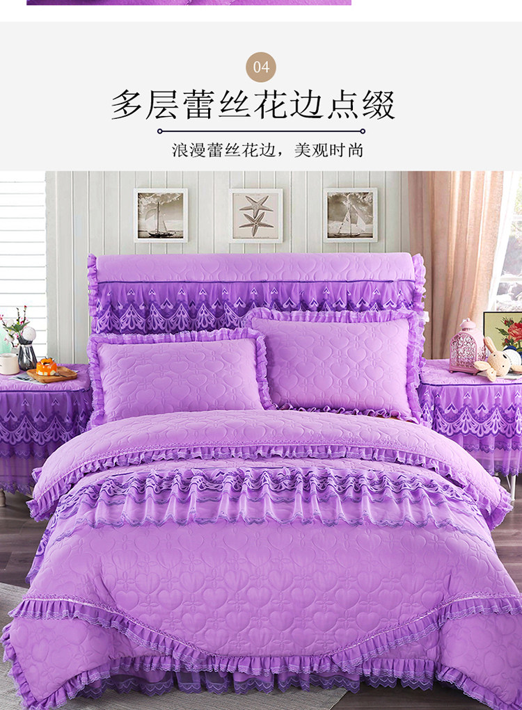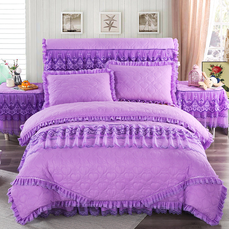 Стеганый комплект для принцессы, сиреневое покрывало, пододеяльник, 4 предмета, в корейском стиле, увеличенная толщина, с вышивкой, 4 шт