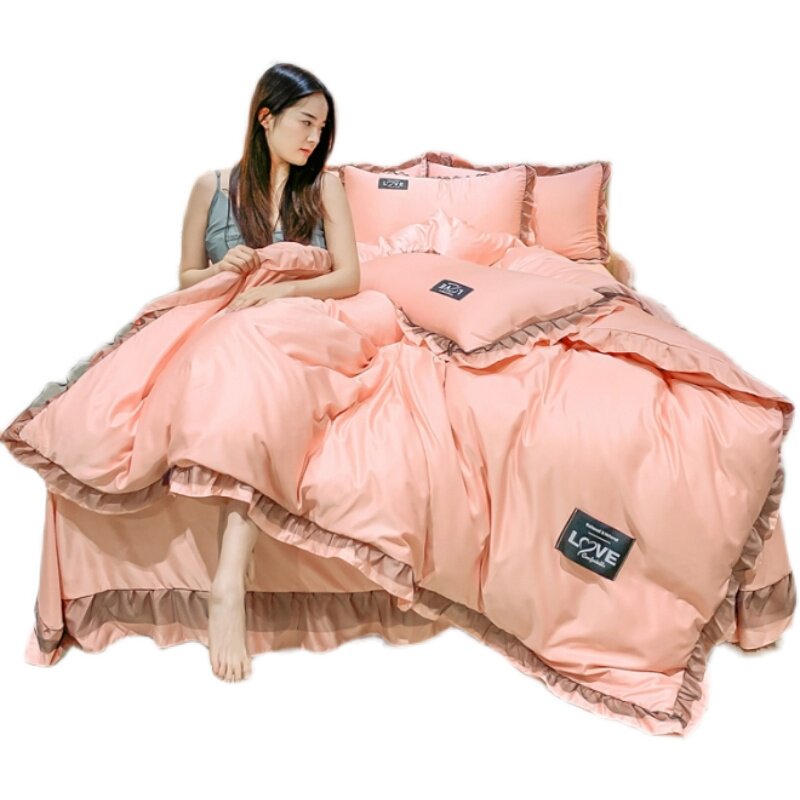 Двусторонний шелковый шелковистый комплект, летний пододеяльник, простыня, шелковое покрывало, популярно в интернете, 4 предмета