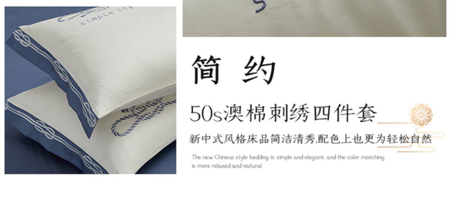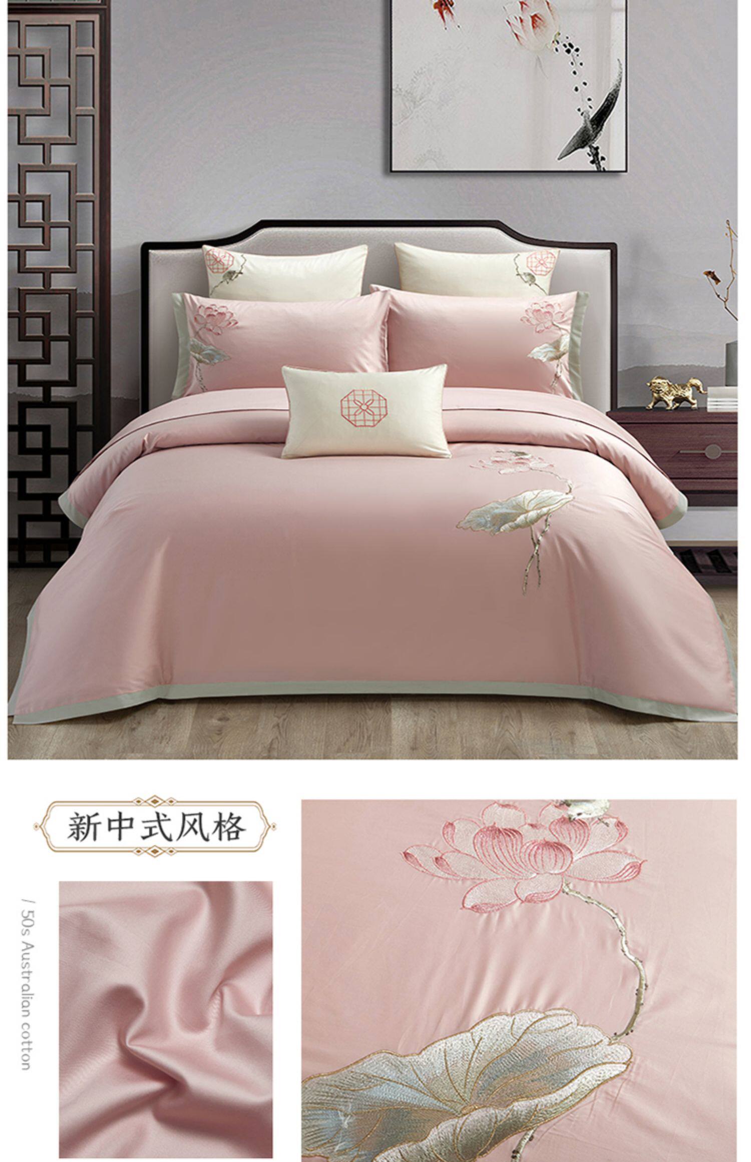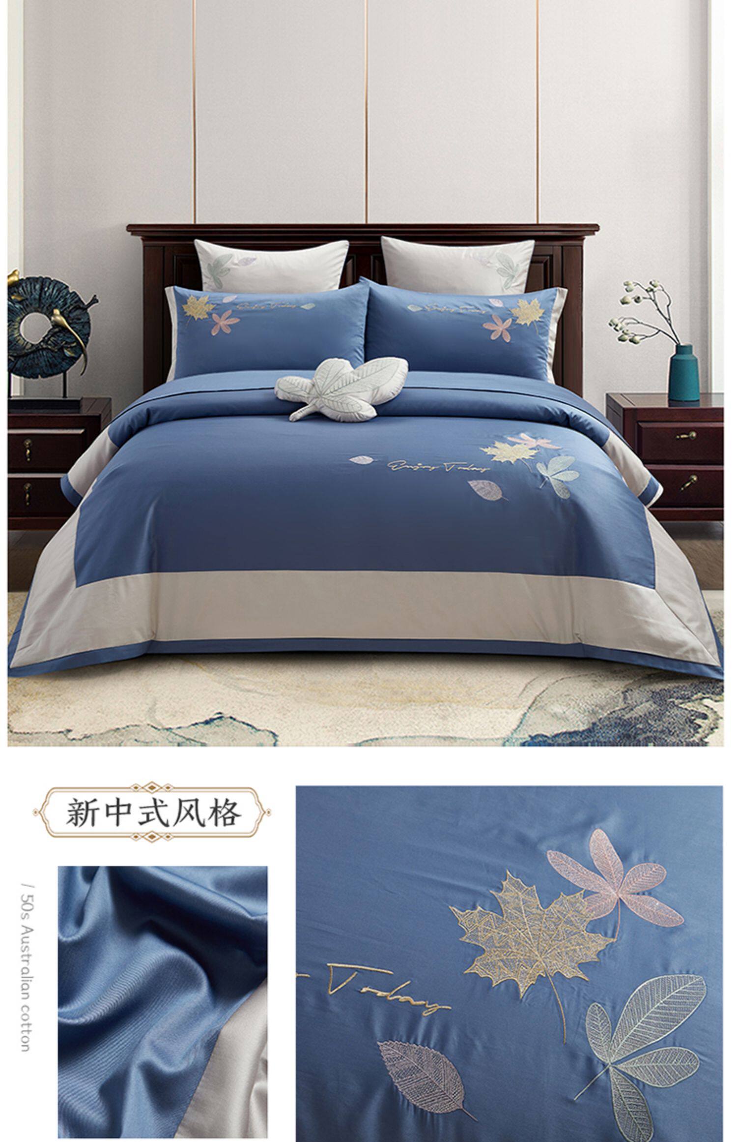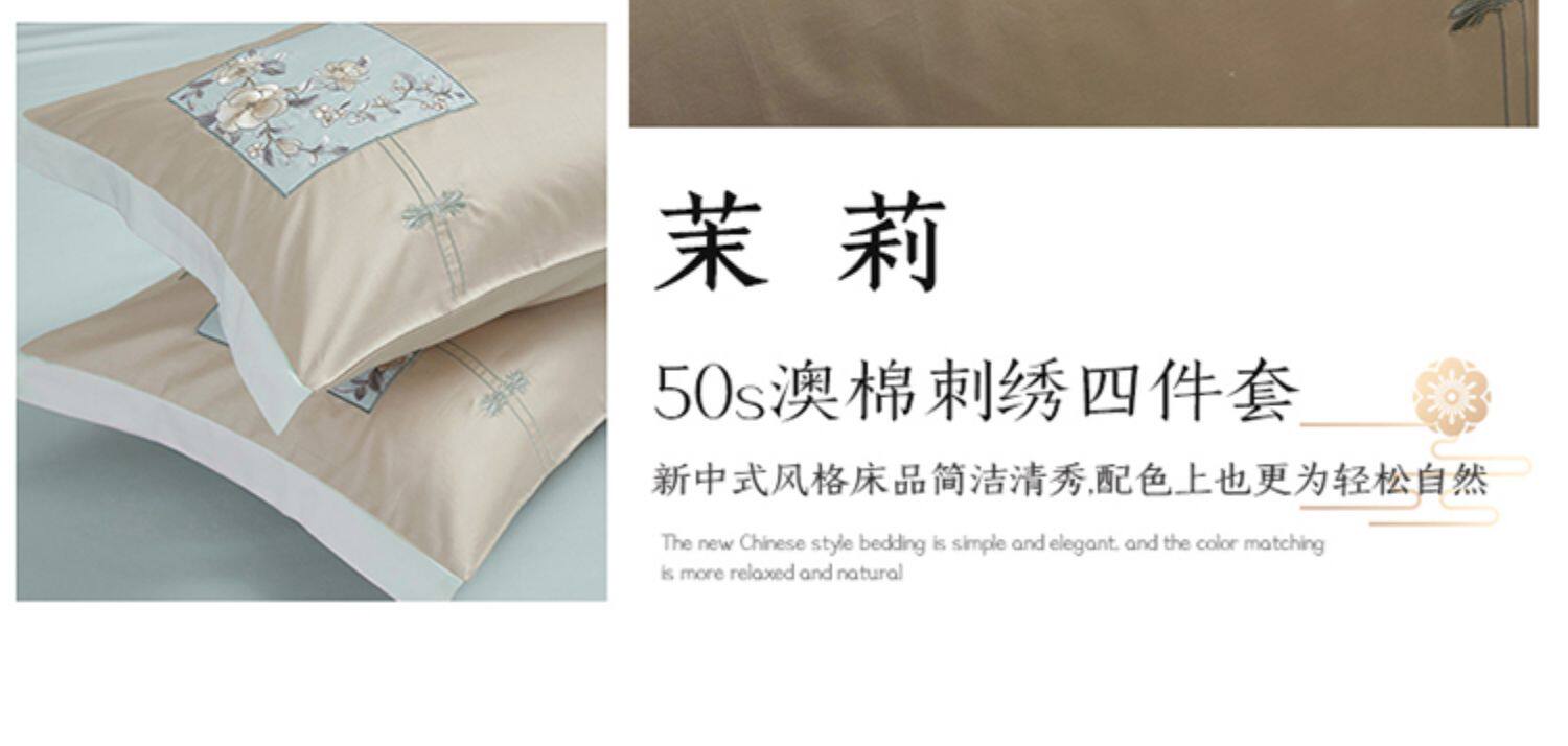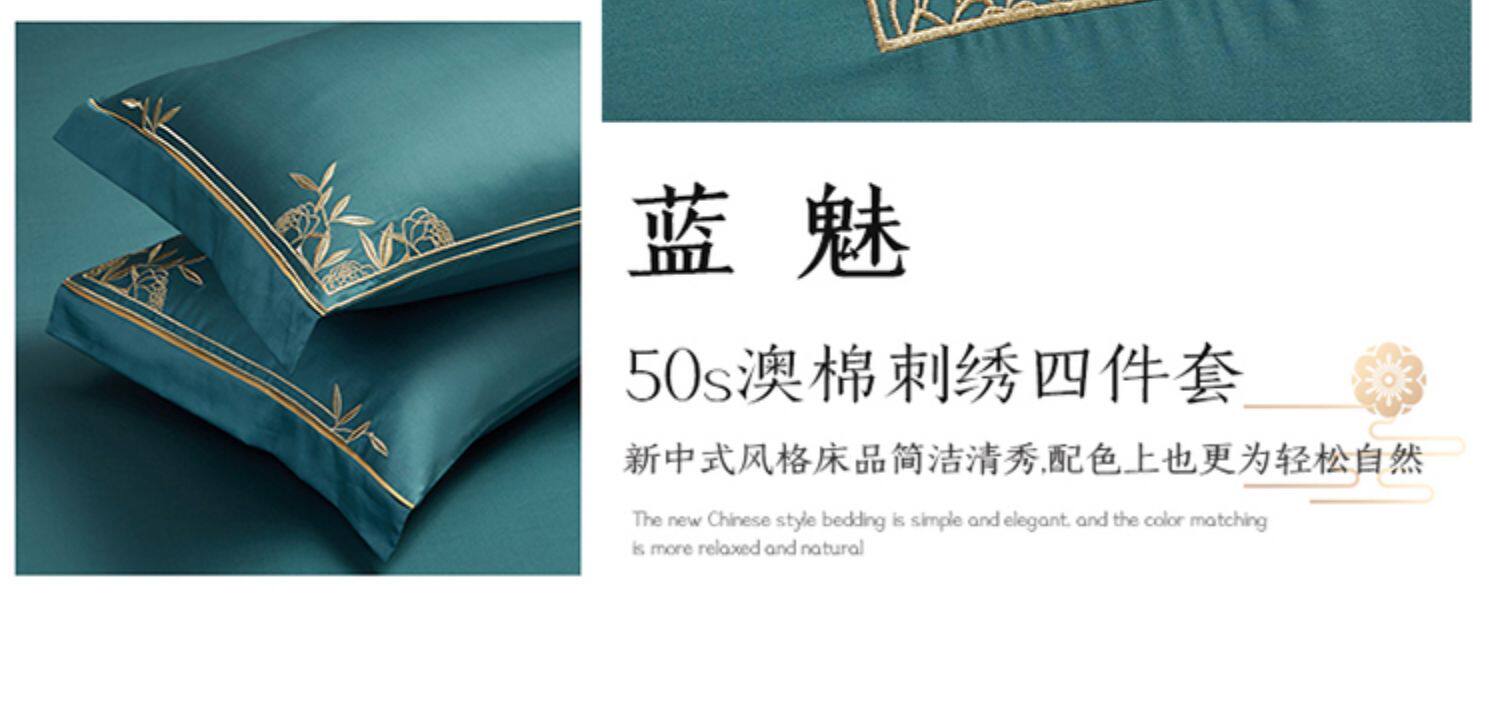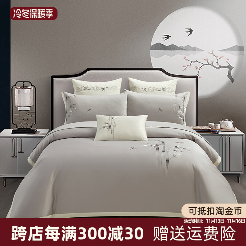Хлопковый этнический комплект, пододеяльник, хлопковая простыня, покрывало, китайский стиль, 4 предмета, этнический стиль, 50 шт, с вышивкой