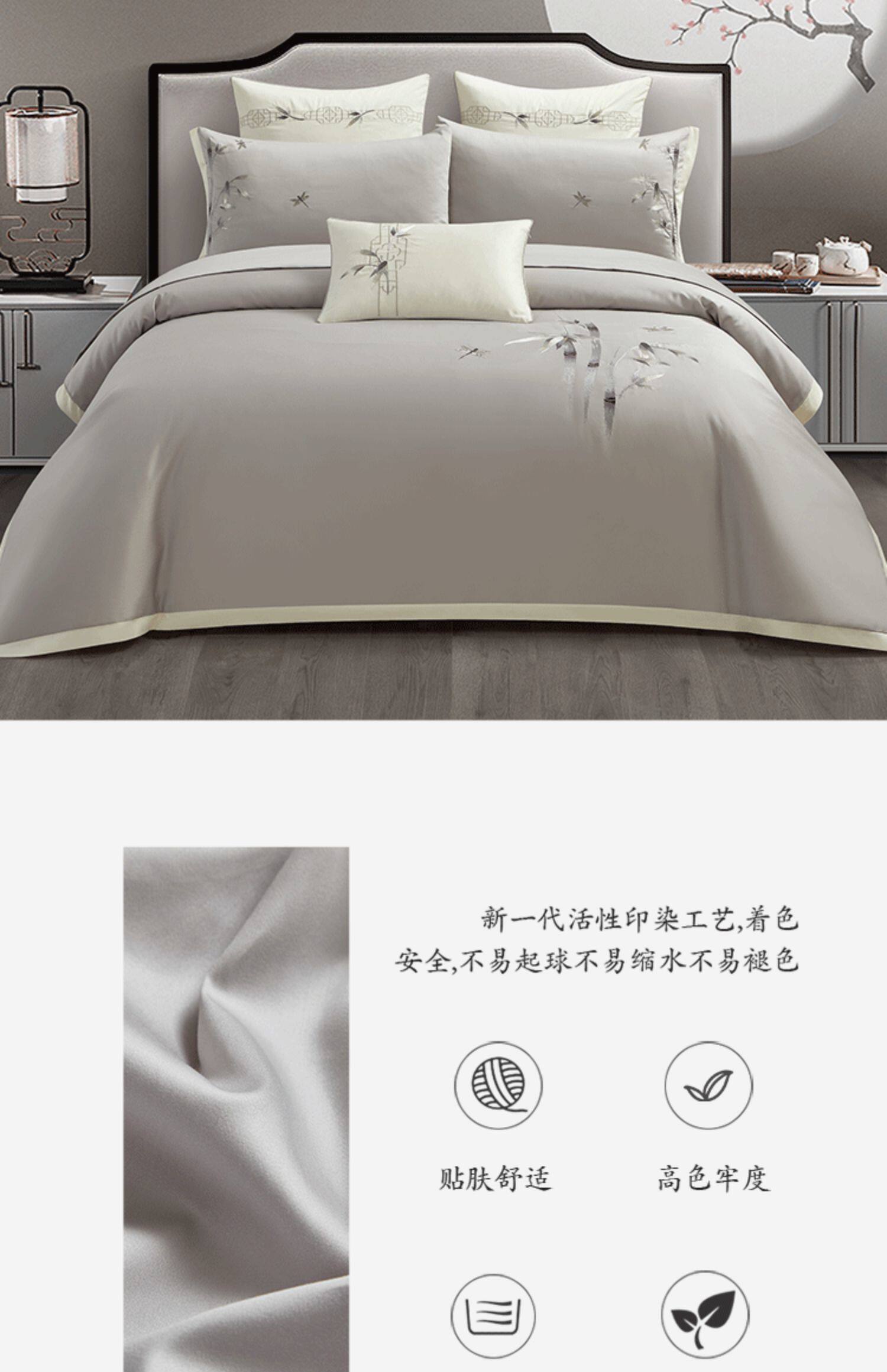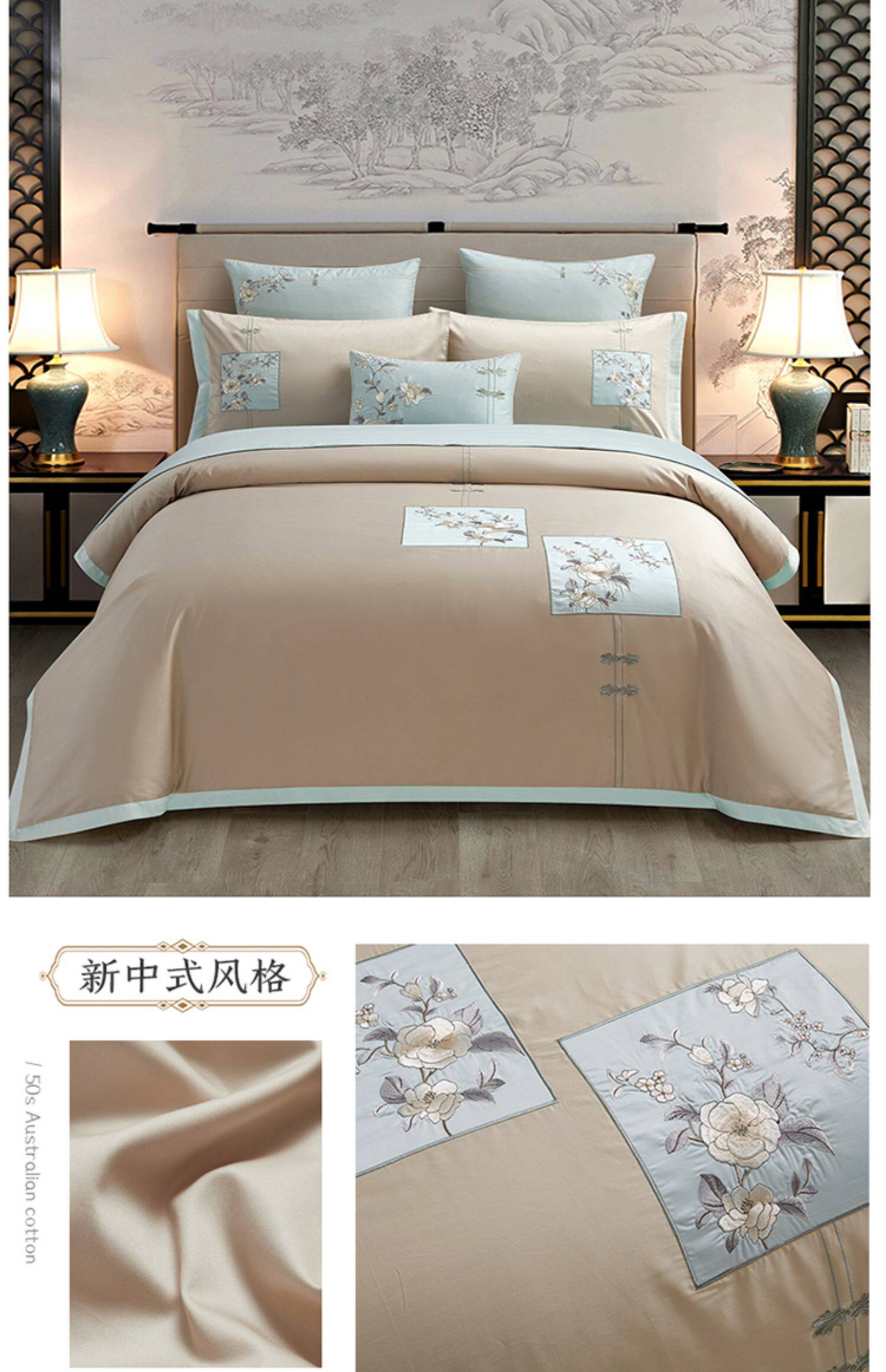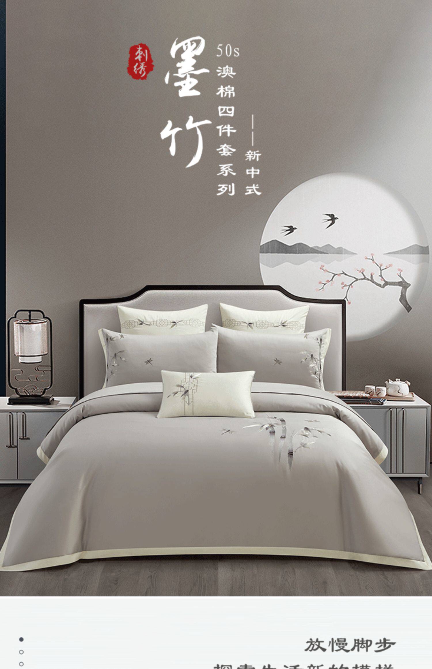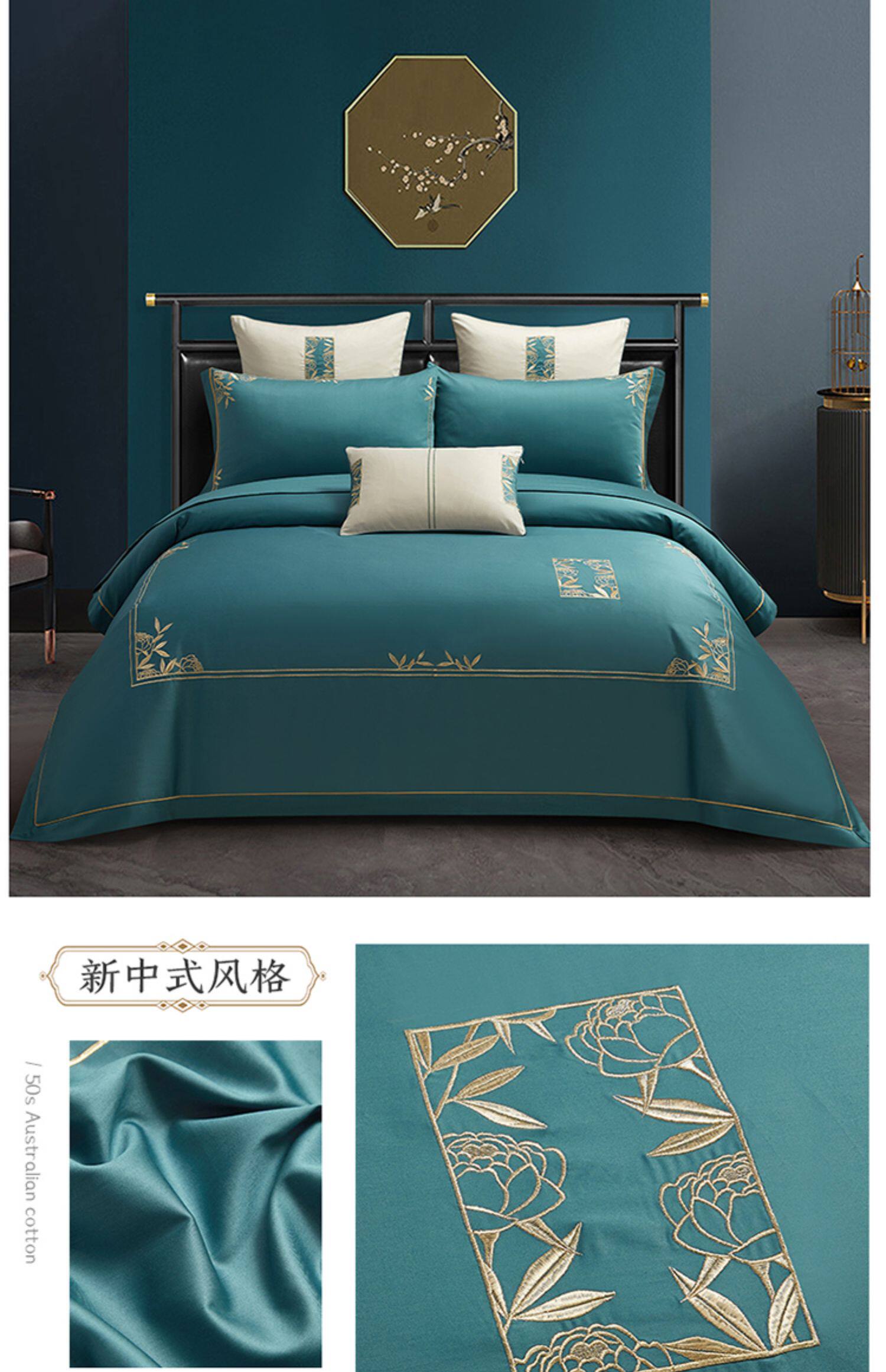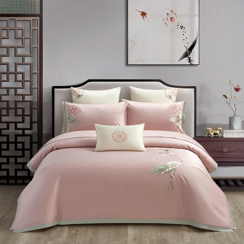 Хлопковый этнический комплект, пододеяльник, хлопковая простыня, покрывало, китайский стиль, 4 предмета, этнический стиль, 50 шт, с вышивкой