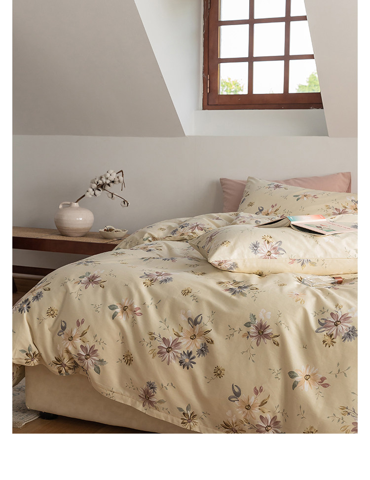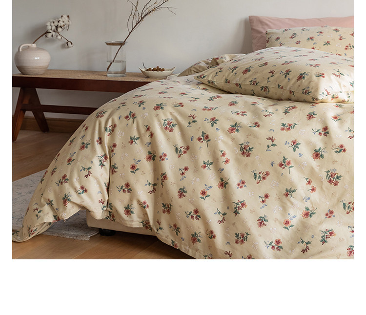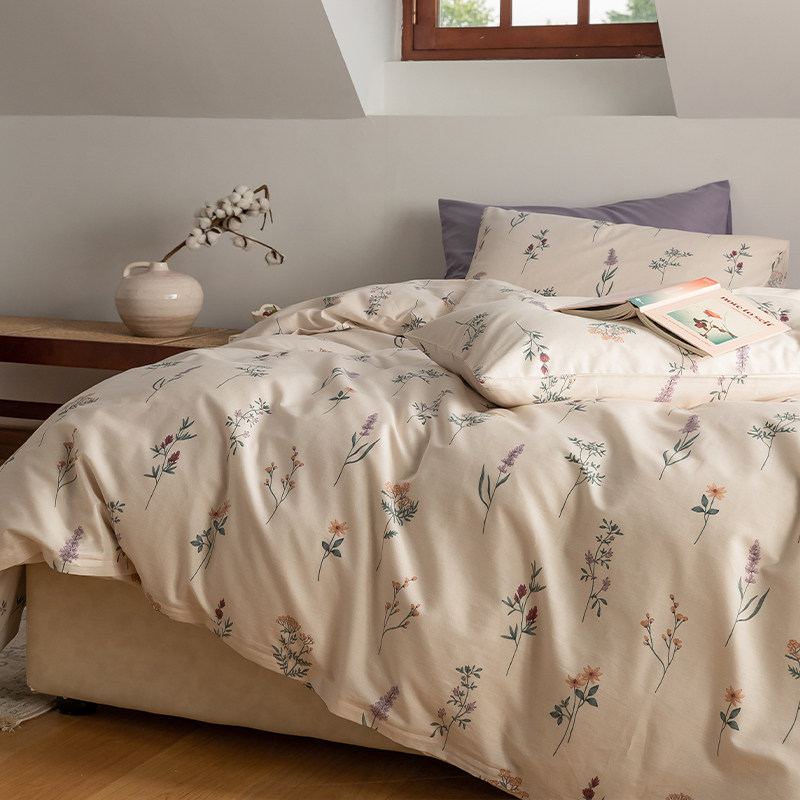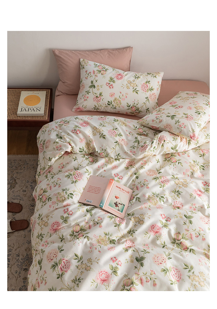 Хлопковый ретро брендовый свежий комплект, цветочный принт, 4 предмета, постельные принадлежности