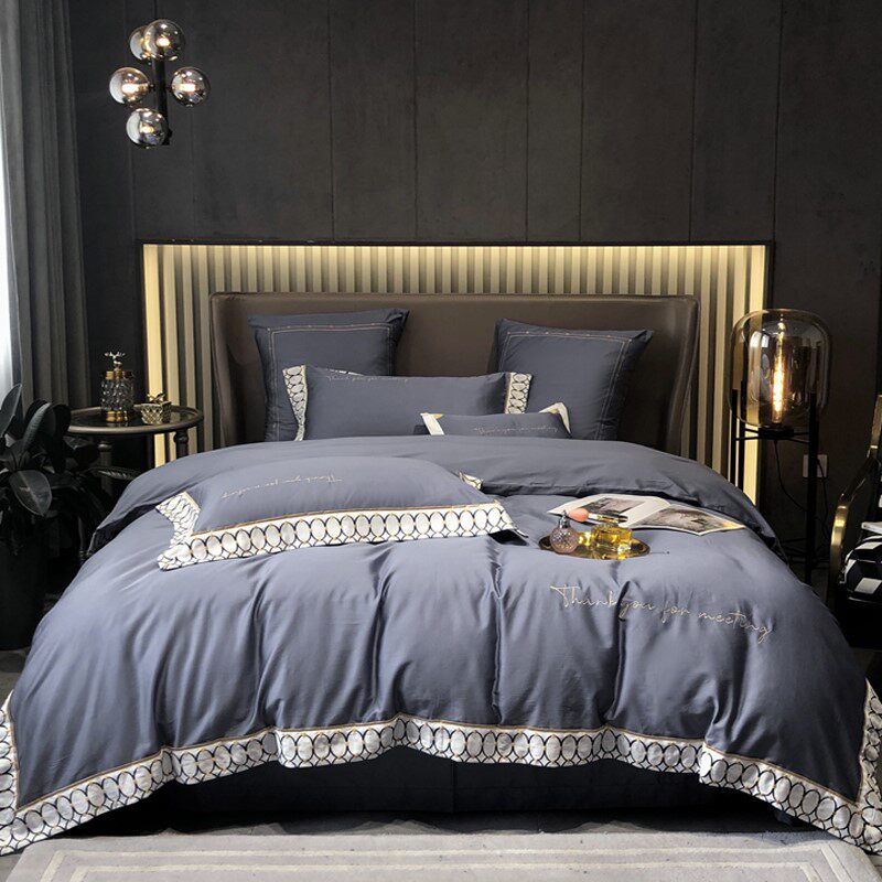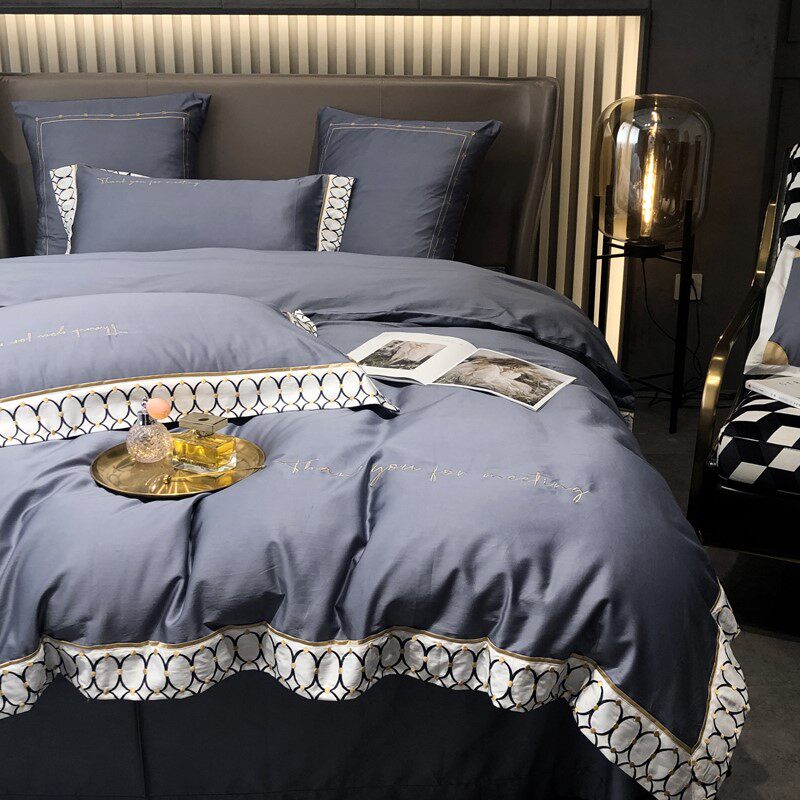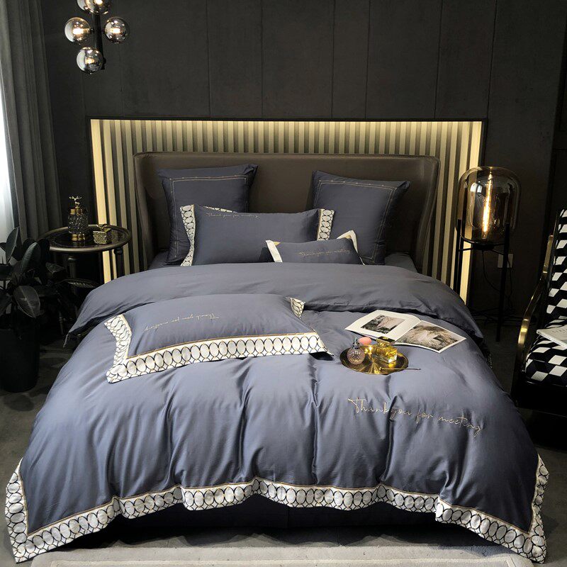 Современный комплект, хлопковый пододеяльник, покрывало, легкий роскошный стиль, с вышивкой, 60 шт, 4 предмета, простой и элегантный дизайн