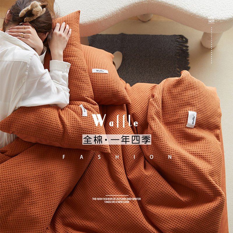 Хлопковый комплект, хлопковое одеяло, пододеяльник, простыня, покрывало, легкий роскошный стиль, простой и элегантный дизайн, 4 предмета