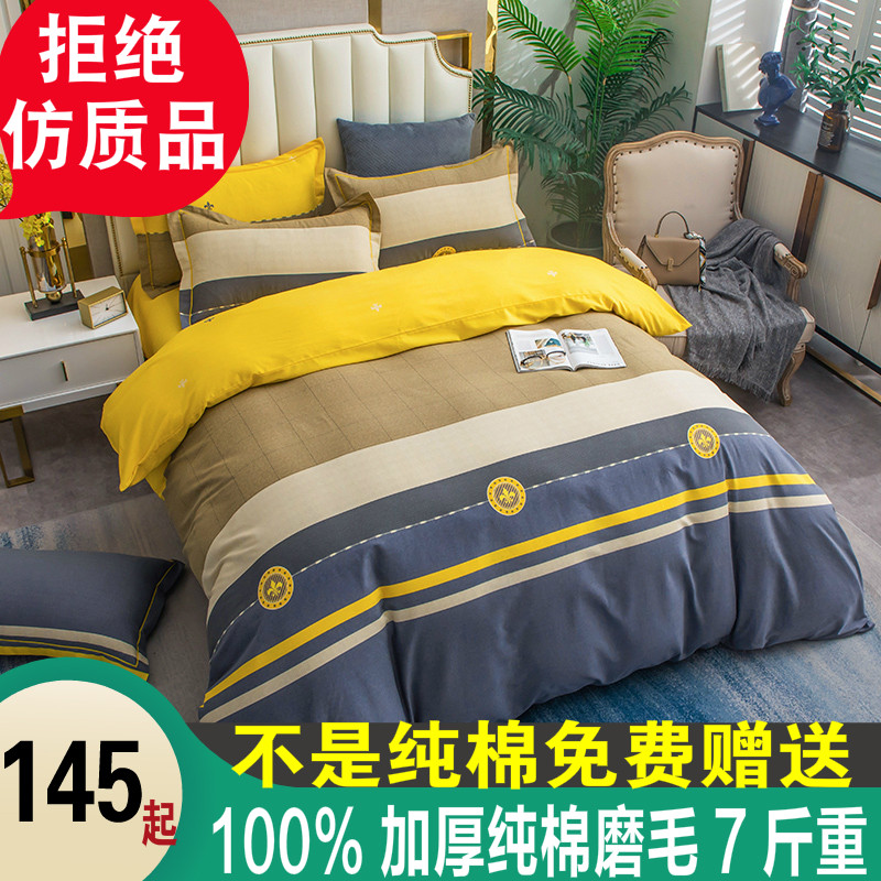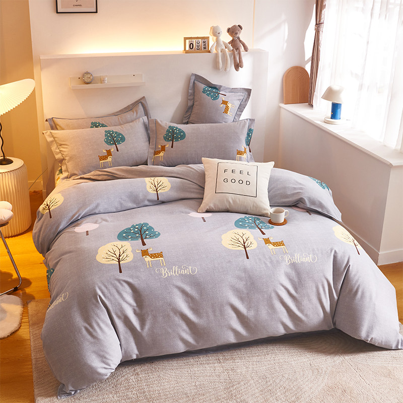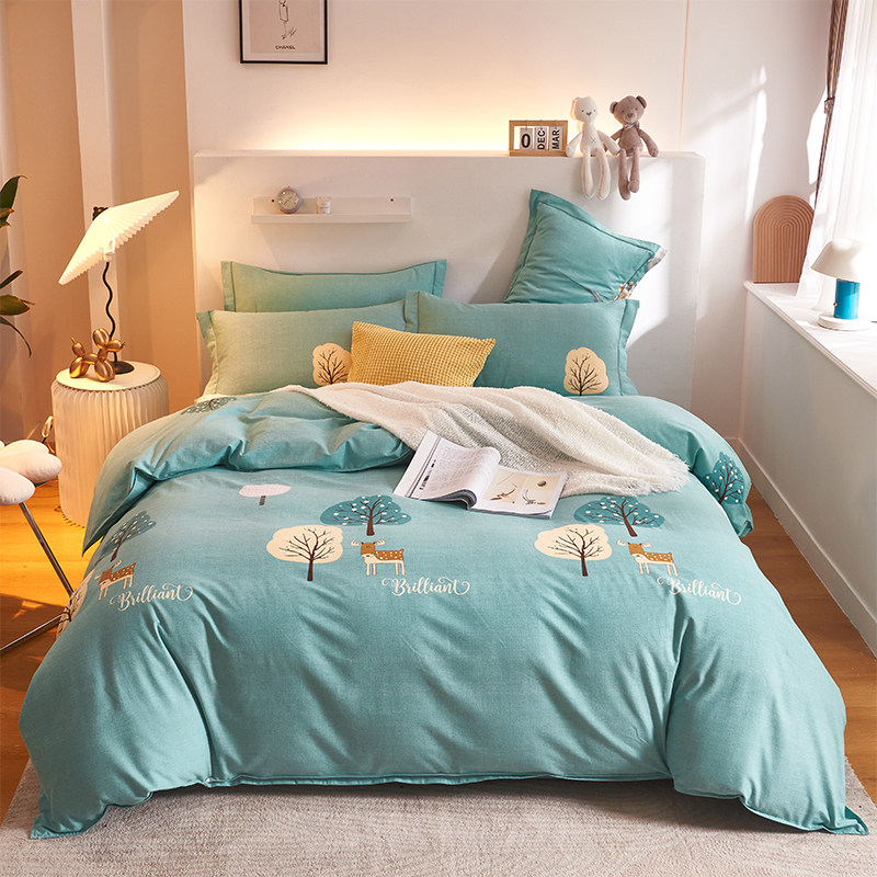 Демисезонный хлопковый комплект, хлопковая простыня, пододеяльник для школьников и студентов, покрывало, 4 предмета, увеличенная толщина, 3 предмета