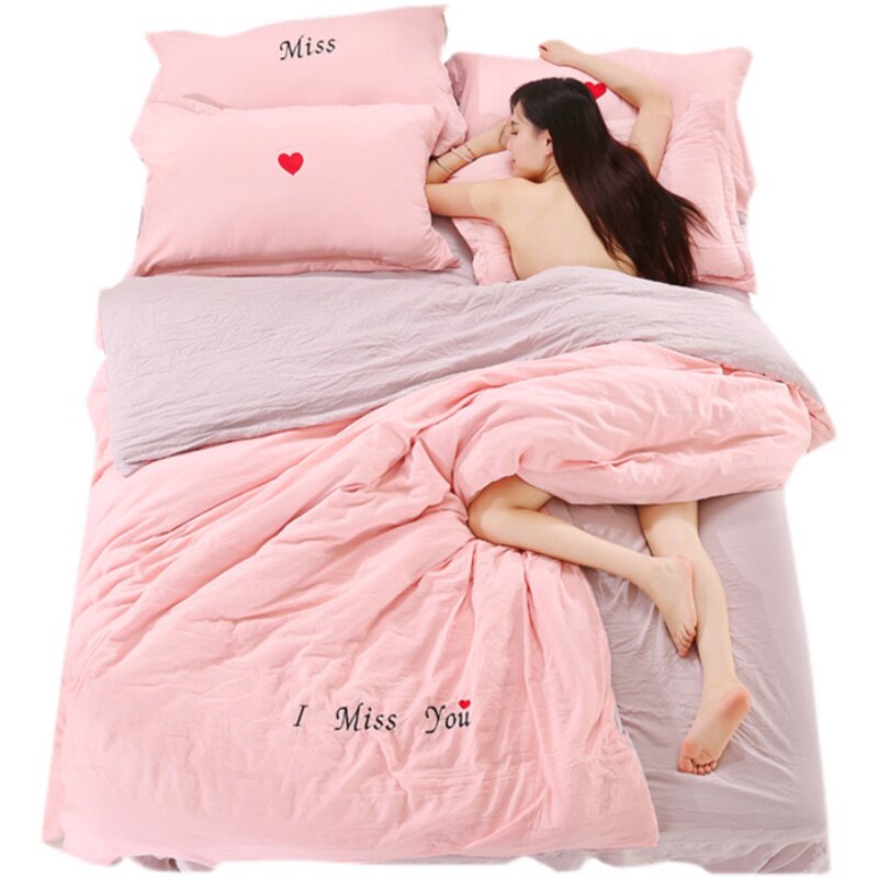 Брендовый хлопковый комплект, покрывало, розовый пододеяльник, простыня, 4 предмета, 3 предмета