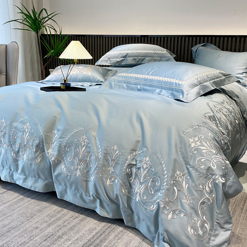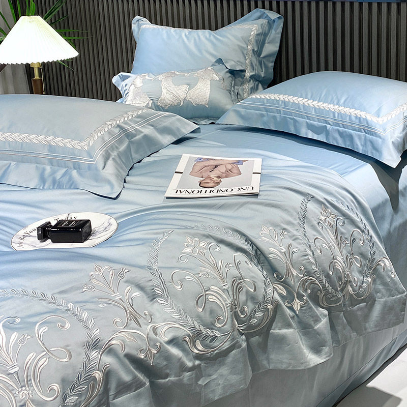 Элитная хлопковая простыня, комплект, хлопковое одеяло, мягкий пододеяльник, покрывало, европейский стиль, 100 шт, 4 предмета, легкий роскошный стиль, с вышивкой