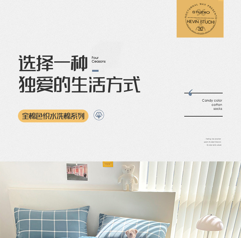 Брендовый хлопковый комплект, простыня, пододеяльник, скандинавский стиль, 4 предмета, простой и элегантный дизайн, 3 предмета
