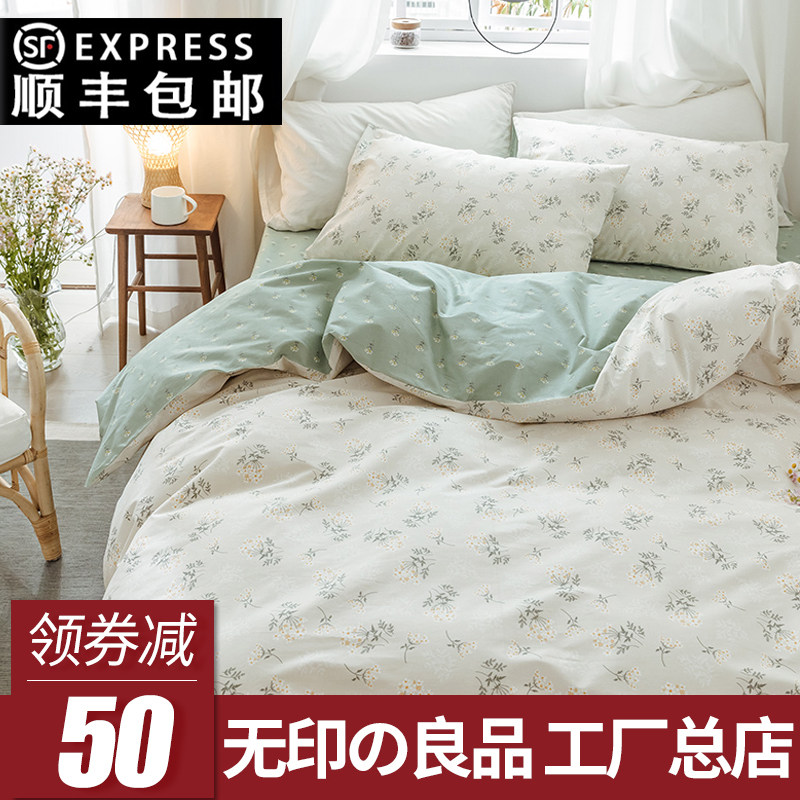 无印良品 Брендовый хлопковый комплект, хлопковая простыня, свежий пододеяльник, летнее покрывало, цветочный принт, 4 предмета, постельные принадлежности
