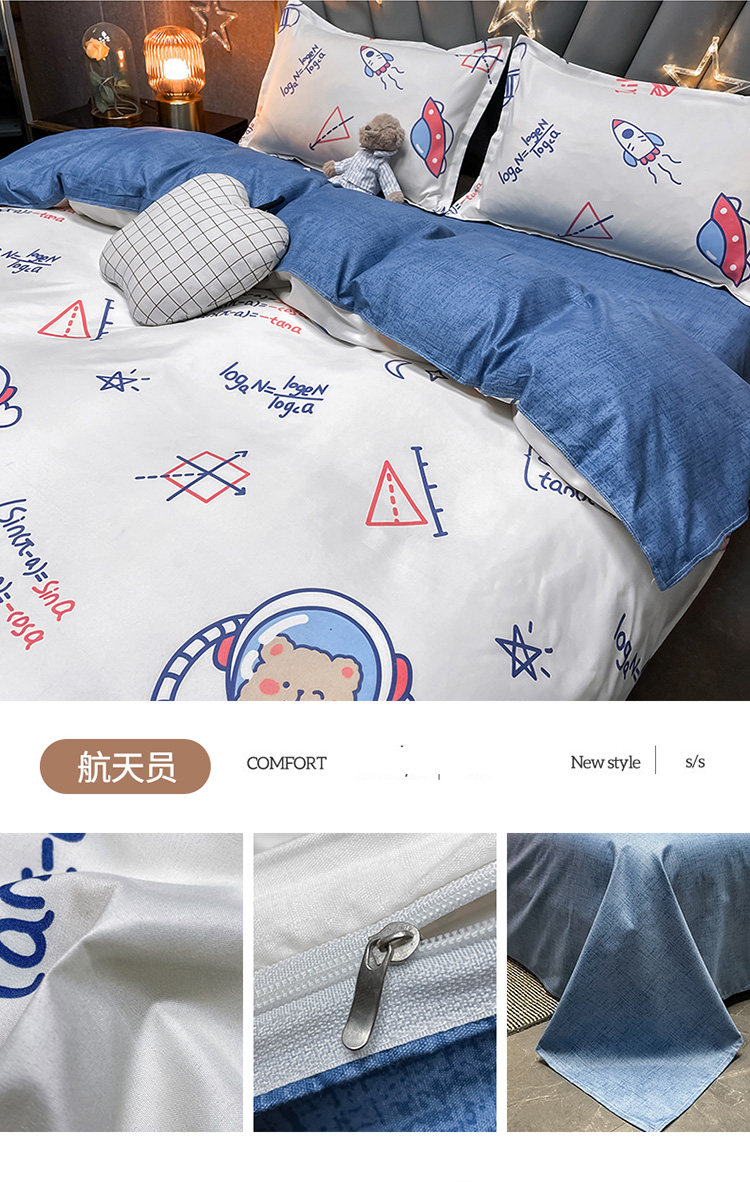 Мультяшный сиреневый комплект, летнее покрывало для школьников и студентов, пододеяльник, простыня, велосипед тандем, 4 предмета
