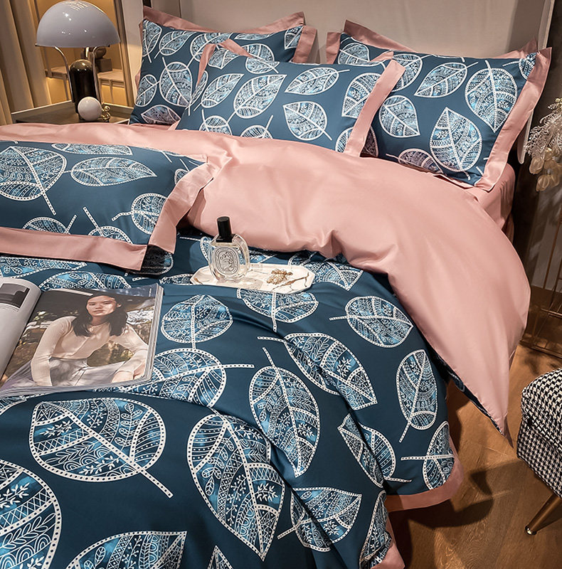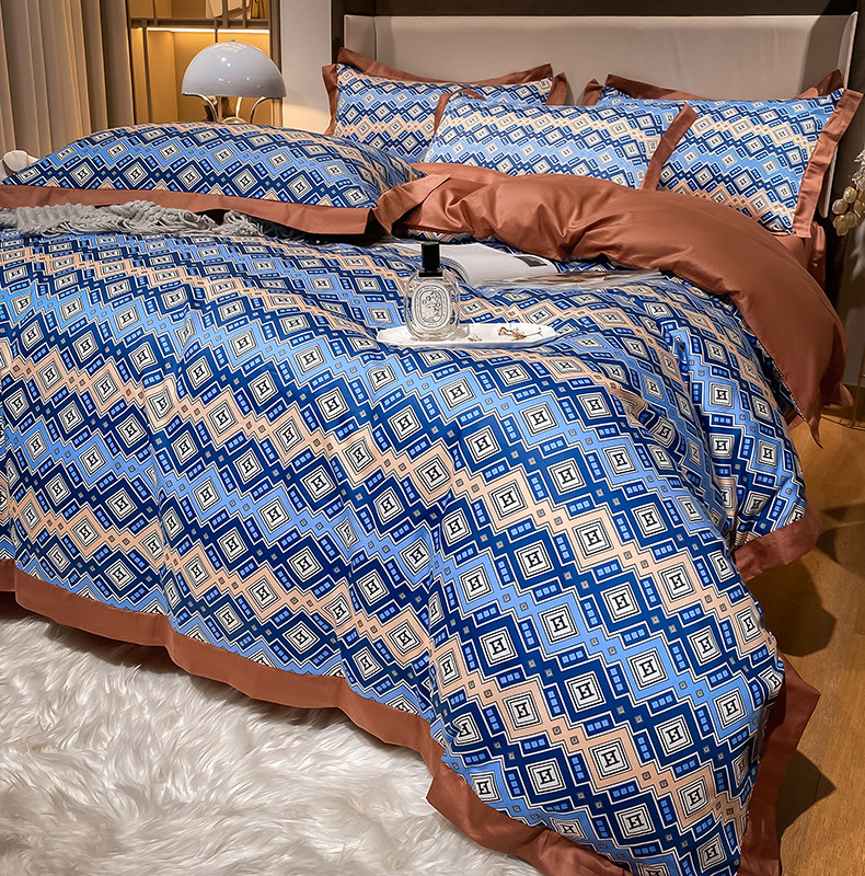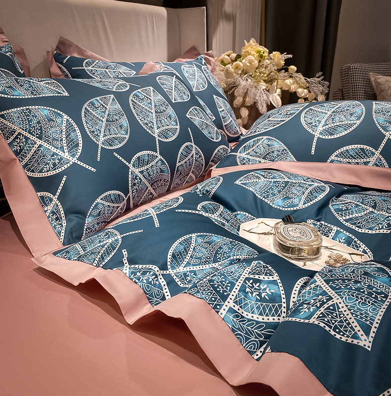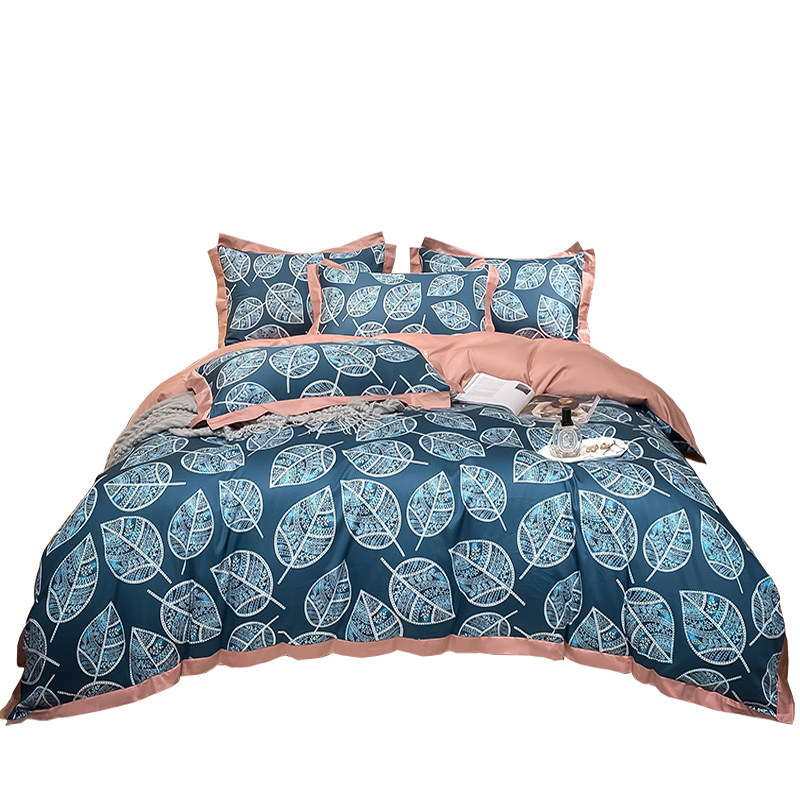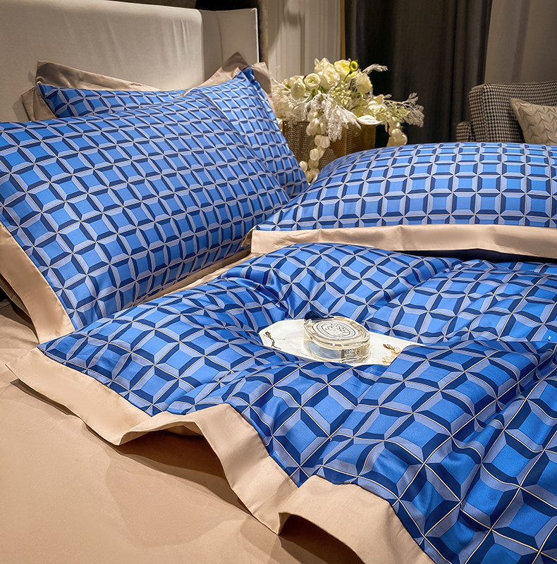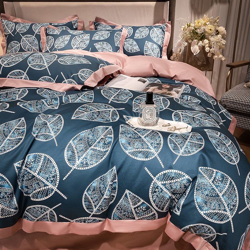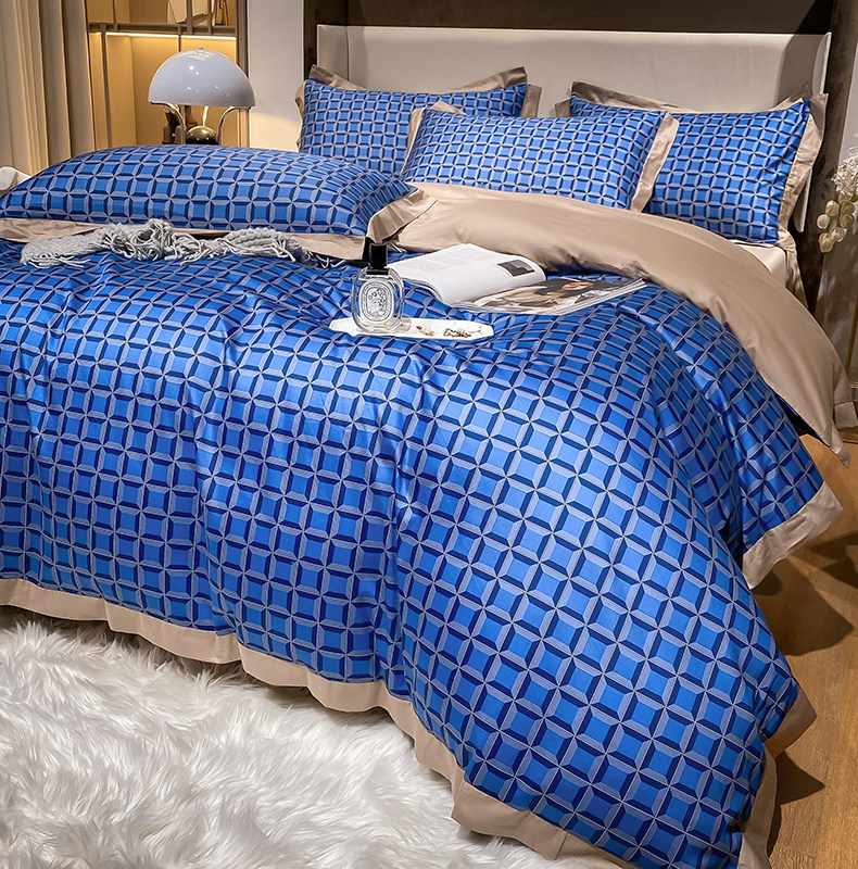Синий хлопковый комплект, простыня, пододеяльник, покрывало, 4 предмета