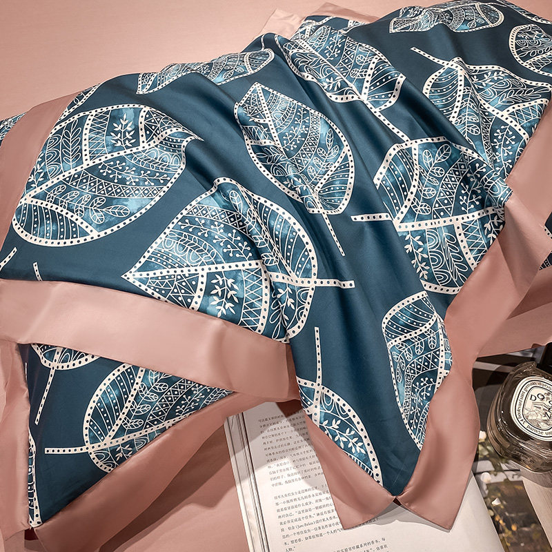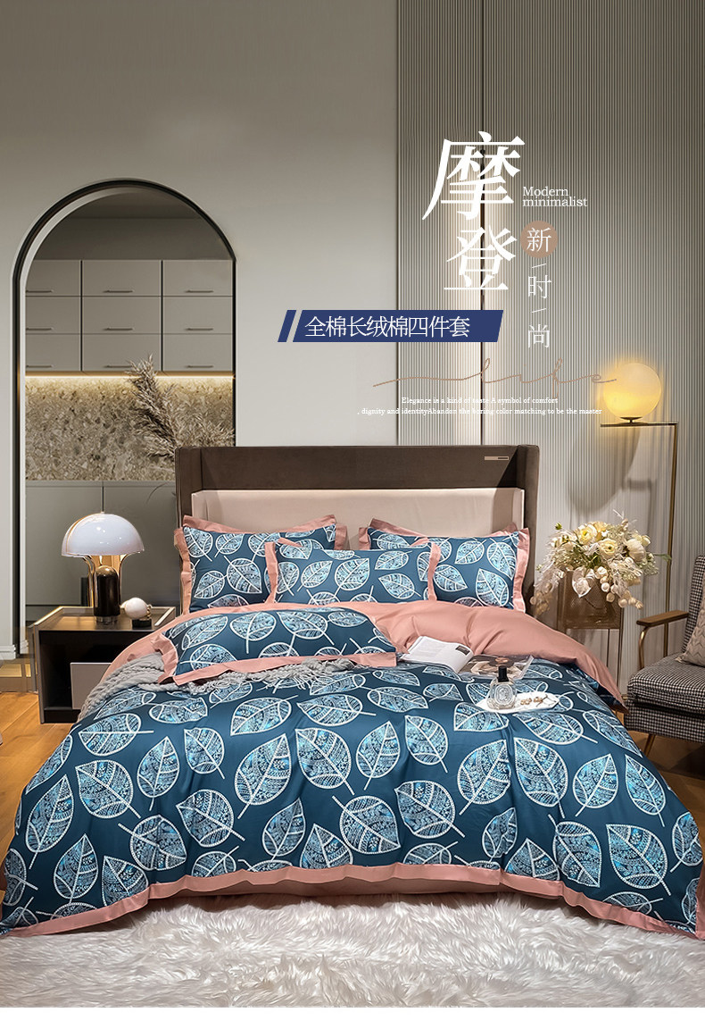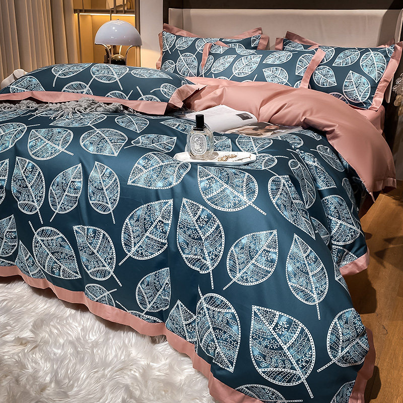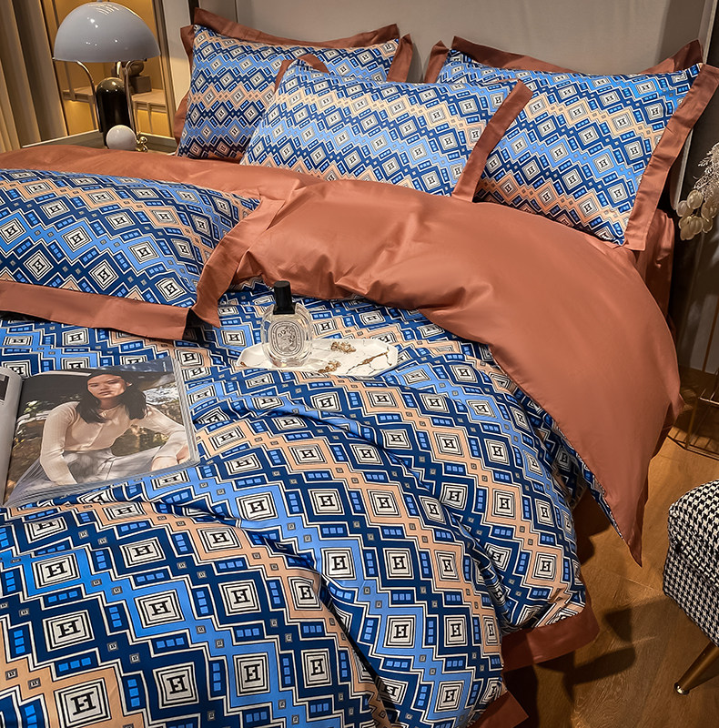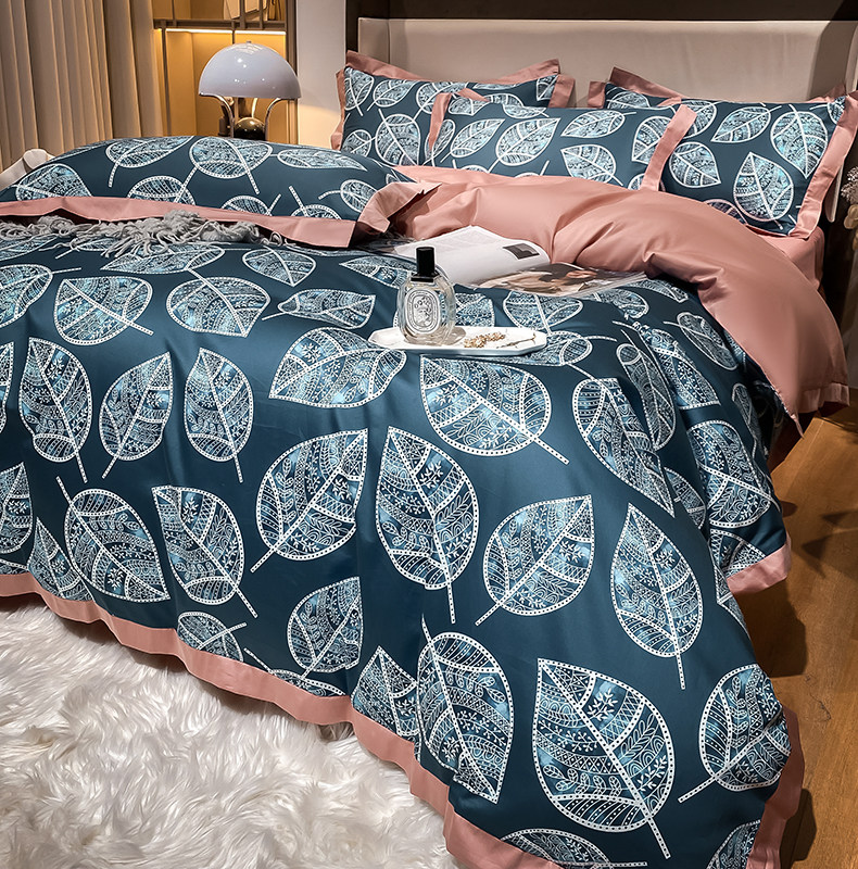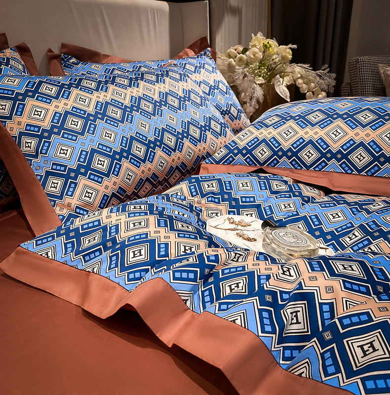 Синий хлопковый комплект, простыня, пододеяльник, покрывало, 4 предмета