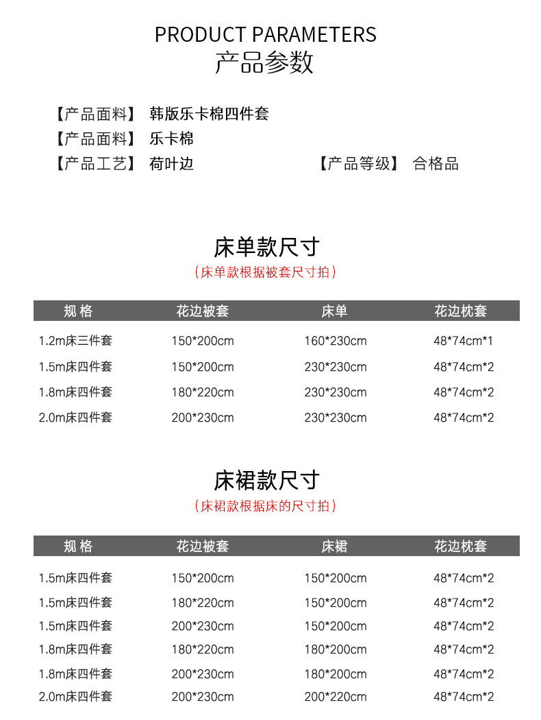 | Ширина кровати: | Простыня, комплект, пододеяльник, 3 предмета, 150×200см, Простыня, комплект, пододеяльник, 4 предмета, 150×200см, Простыня, комплект, пододеяльник, 4 предмета, 180×220см, Простыня, комплект, пододеяльник, 4 предмета, 200×230см, Юбка на 1,5 кровати, четырехсекционный пододеяльник 150*200см, Юбка на 1,5 кровати, четырехсекционный пододеяльник 180*220см, Юбка на 1,5 кровати, четырехсекционный пододеяльник 200*230см, 1,8 юбка-кровать, четырехсекционный пододеяльник 180*220см, 1,8 юбка-кровать, четырехсекционный пододеяльник 200*230см, 2.0 юбка-кровать, четырехсекционный пододеяльник 200*230см |