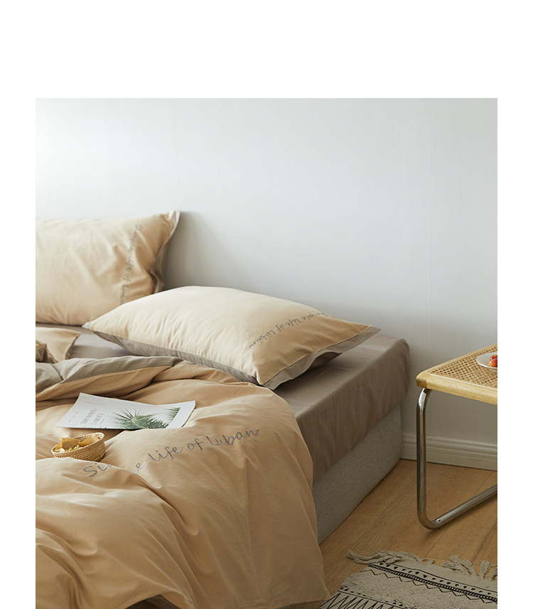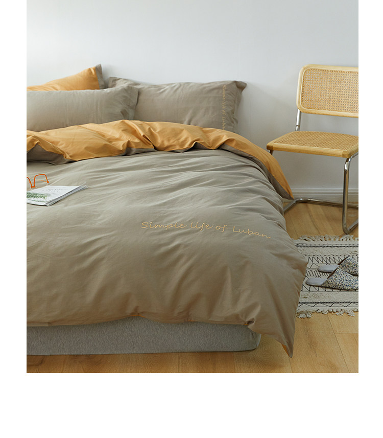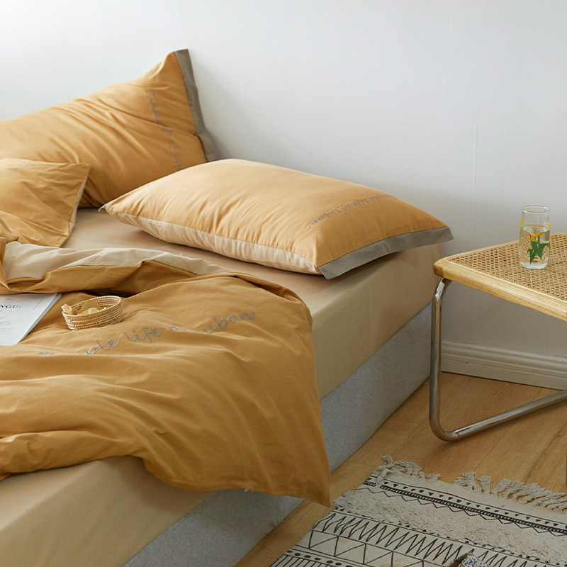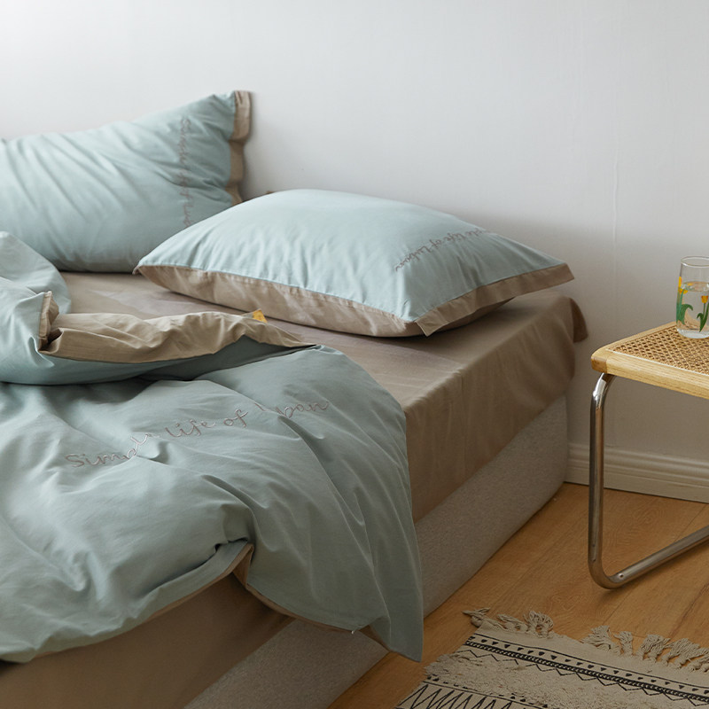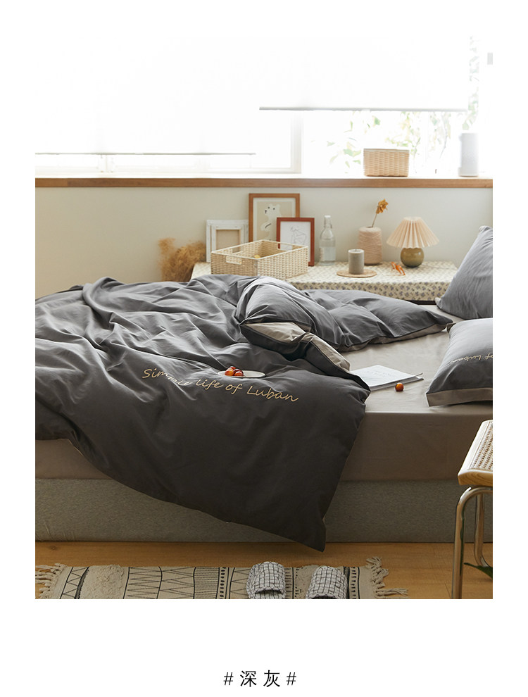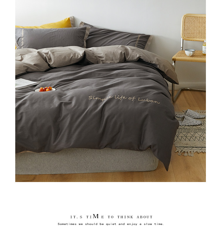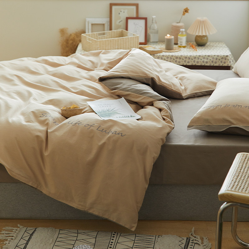 Хлопковый комплект, комфортное хлопковое одеяло, пододеяльник, простыня, покрывало, с вышивкой, 4 предмета, простой и элегантный дизайн