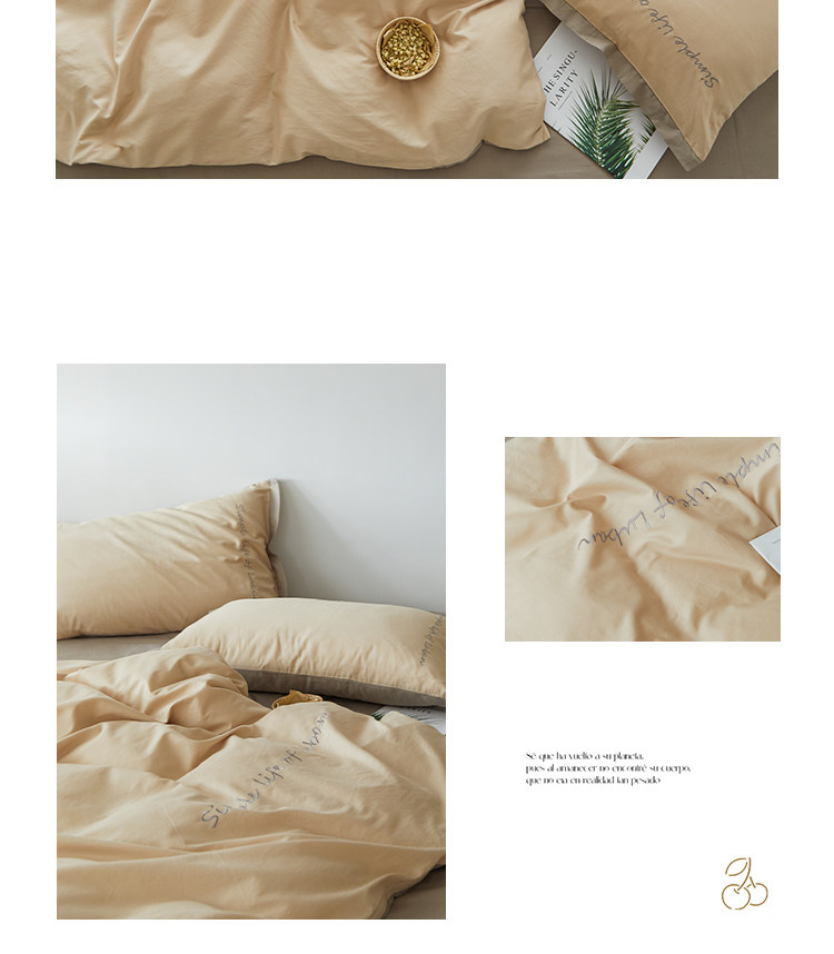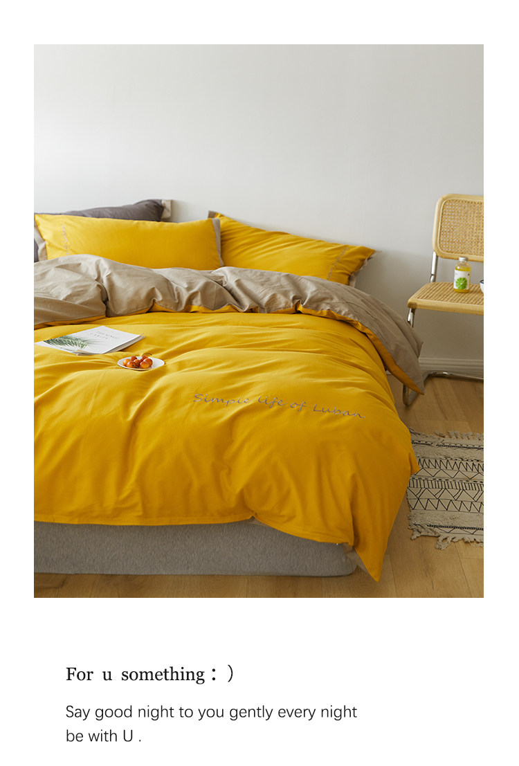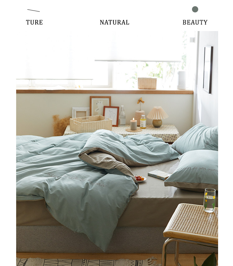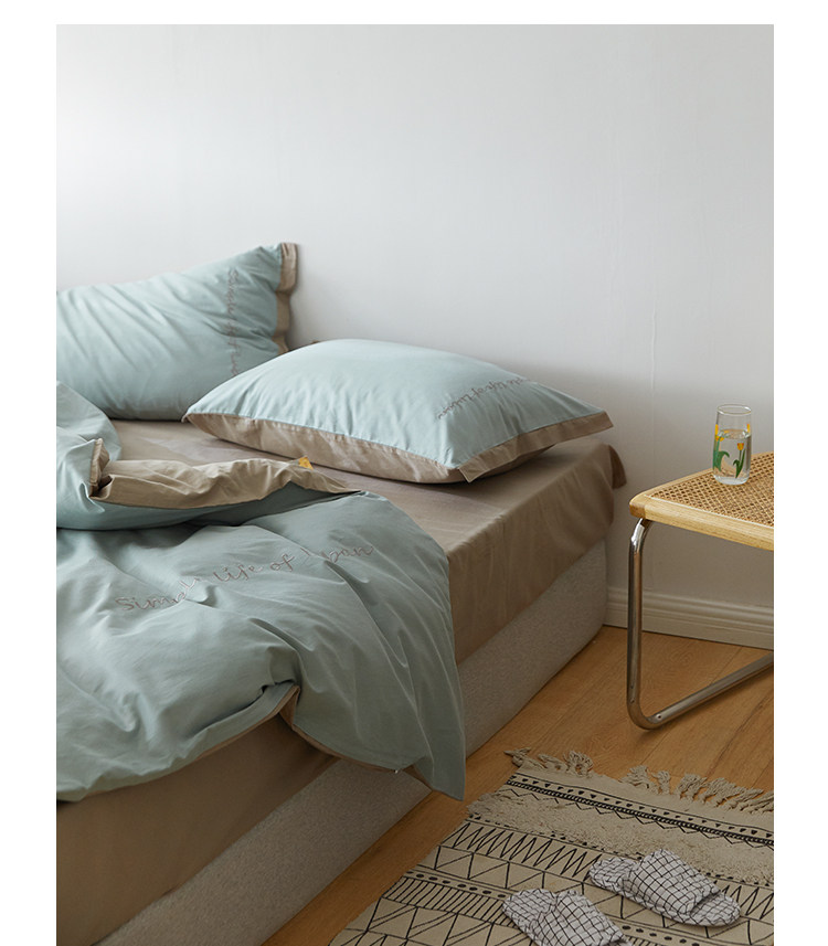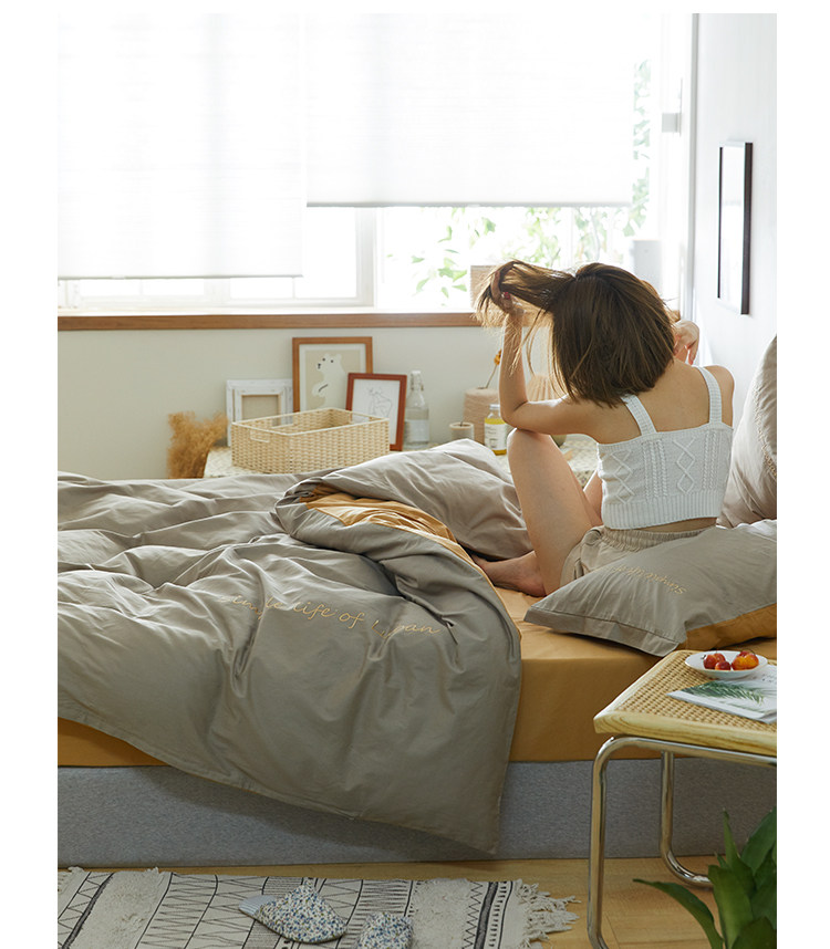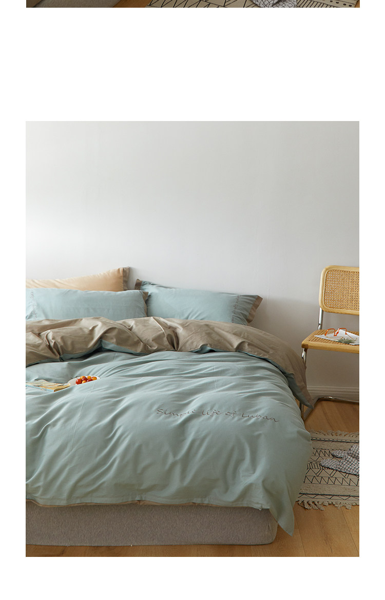 Хлопковый комплект, комфортное хлопковое одеяло, пододеяльник, простыня, покрывало, с вышивкой, 4 предмета, простой и элегантный дизайн