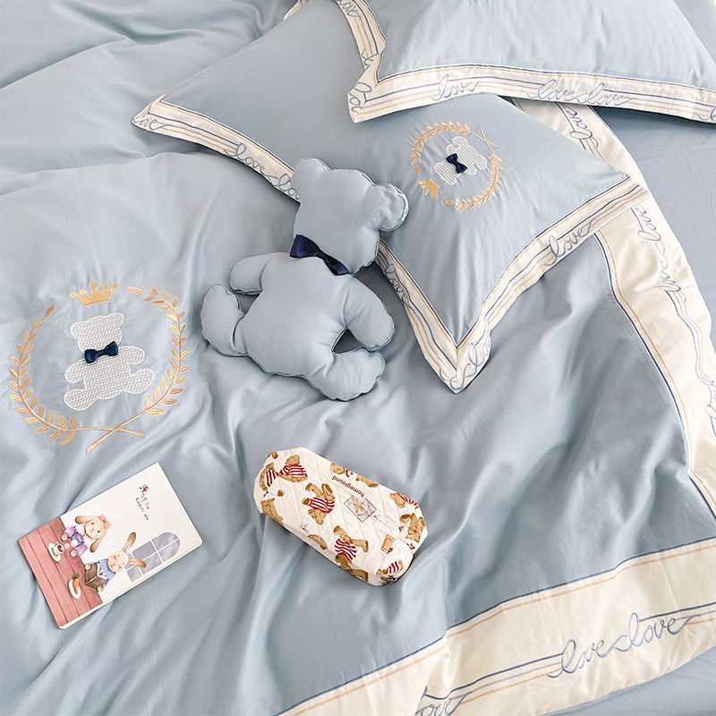 Свежий хлопковый милый комплект, демисезонный пододеяльник, простыня, 100 шт, 4 предмета, с медвежатами, с вышивкой, постельные принадлежности
